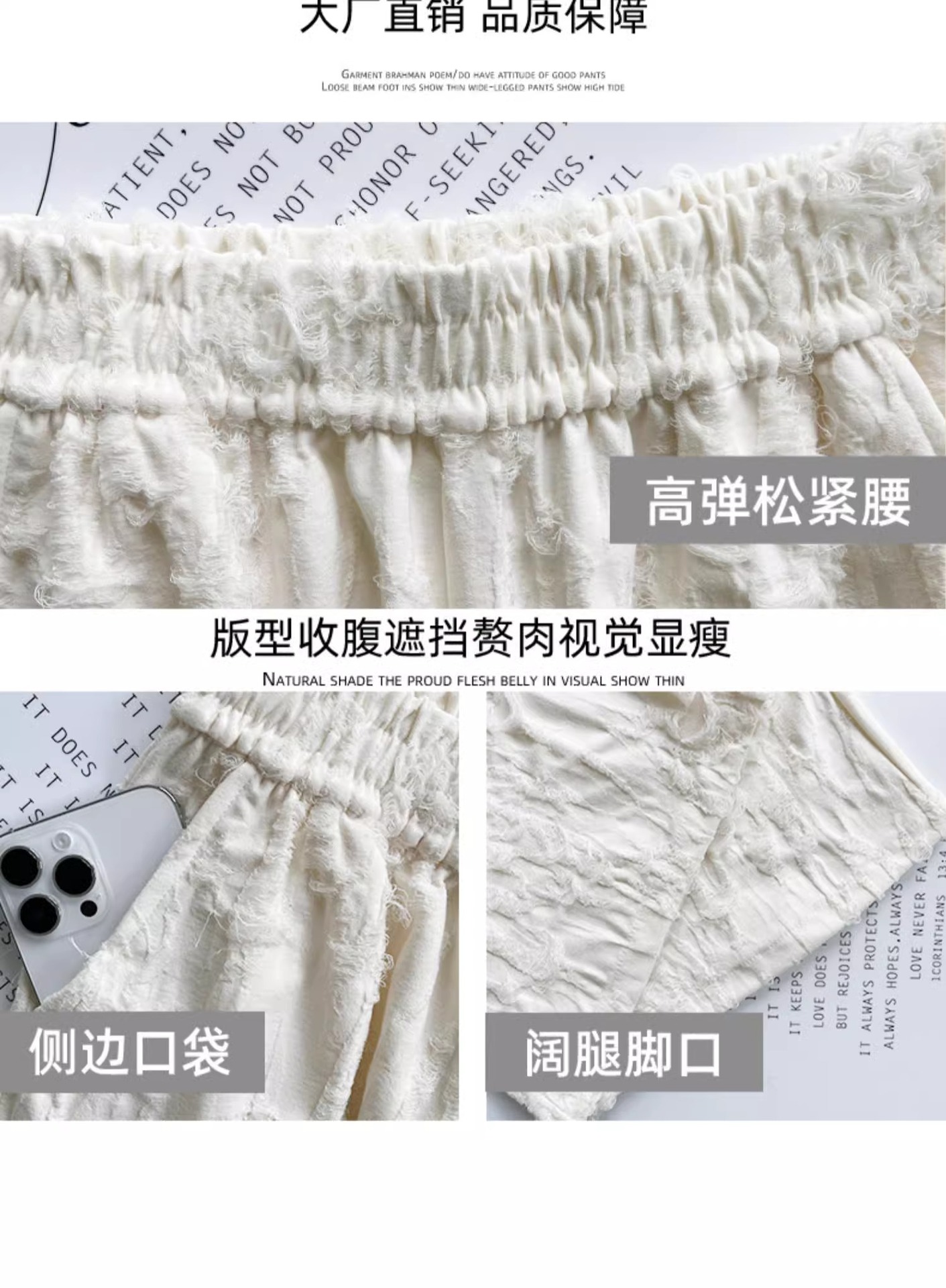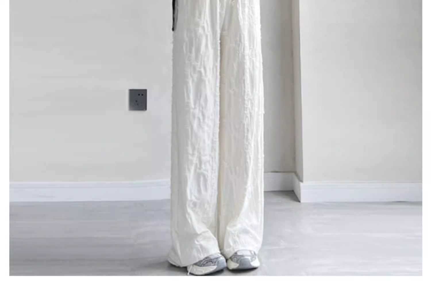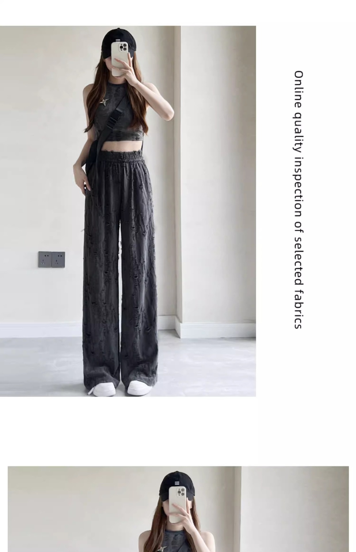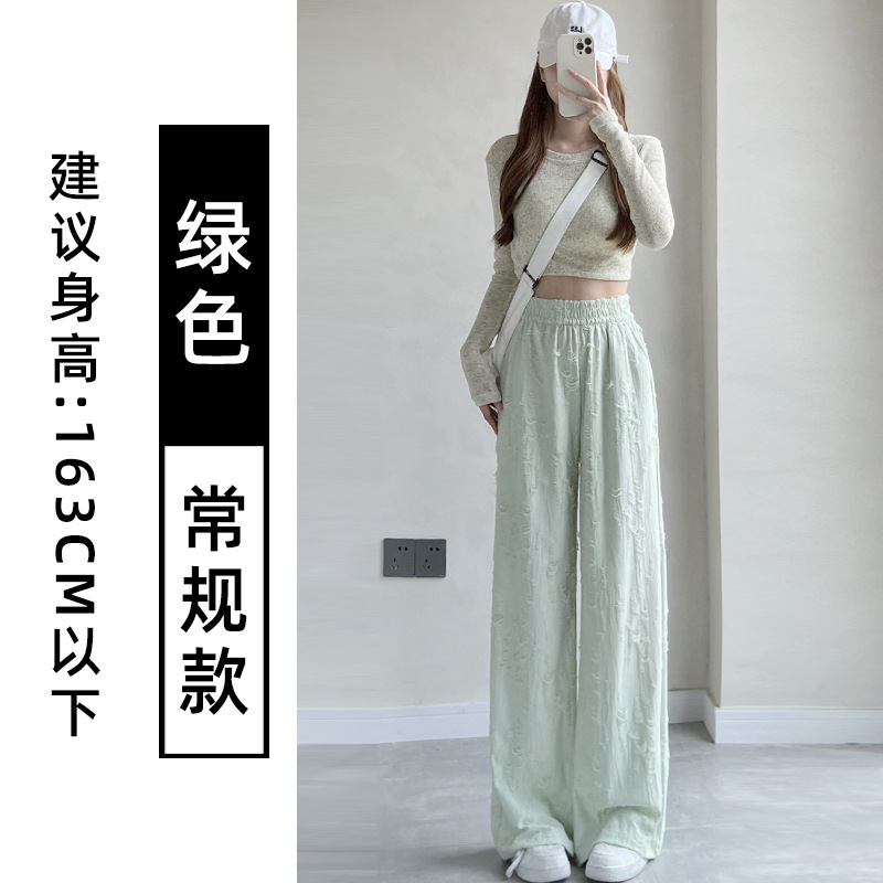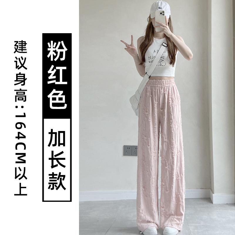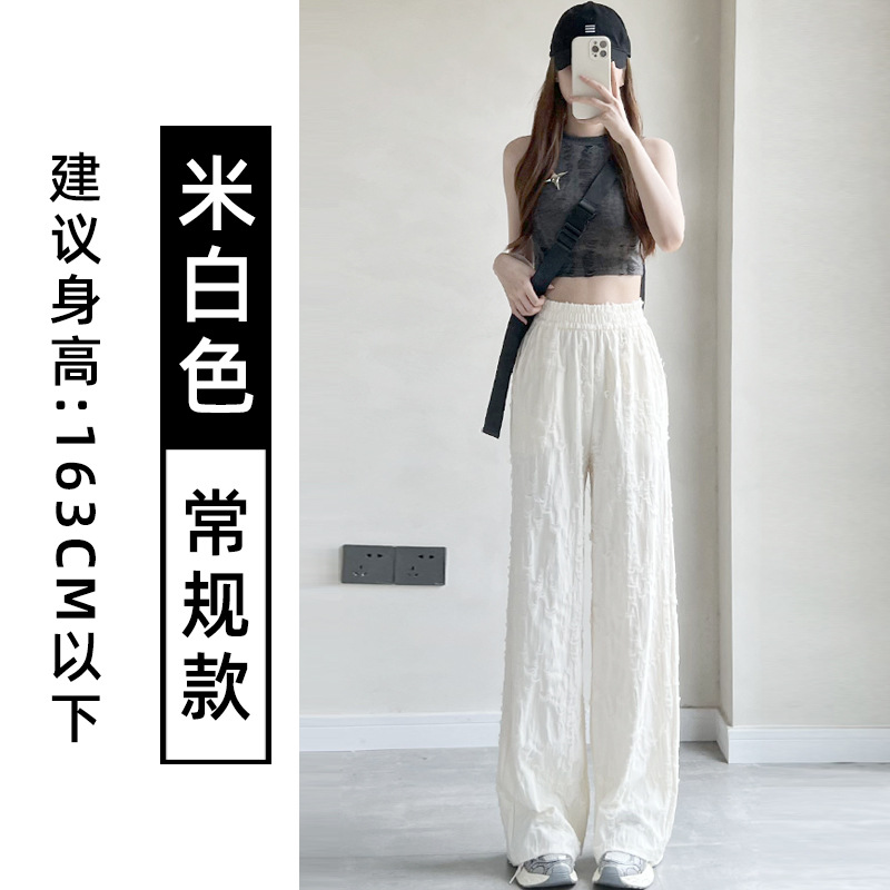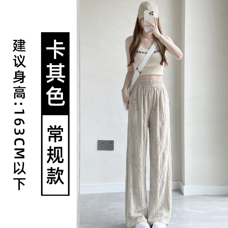 회색 다진 바지 여성 여름 얇은 높은 허리 Daggy 틈새 디자인 스트레이트 튜브 넓은 다리 바지 작은 사람스토어 가기