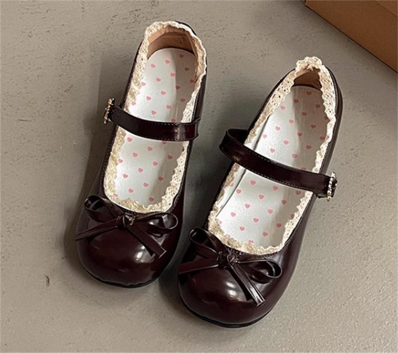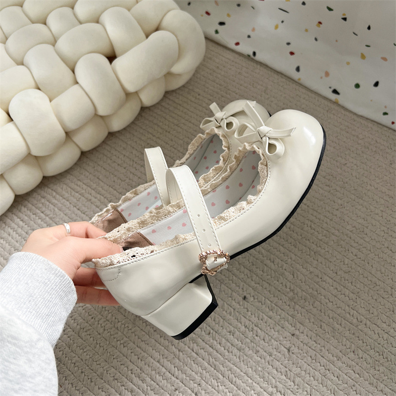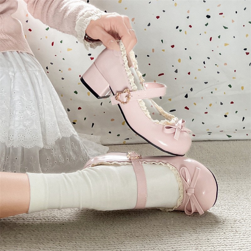 여성을위한 달콤한 나비 매듭 메리 제인 신발 봄과 여름 새로운 두꺼운 굽 일본 jk 스커트 작은 가죽 신발