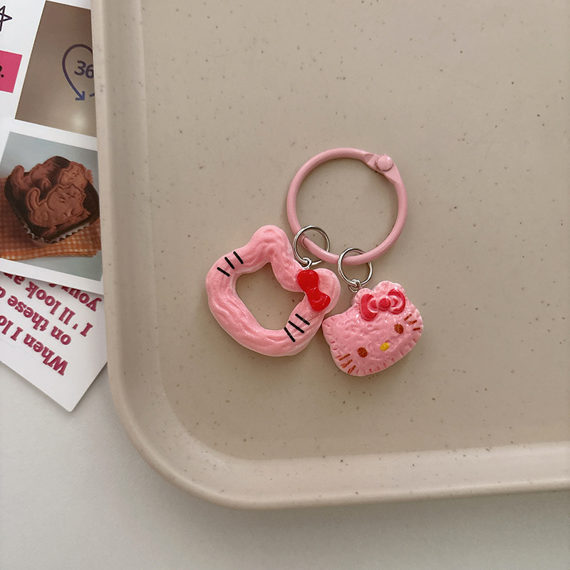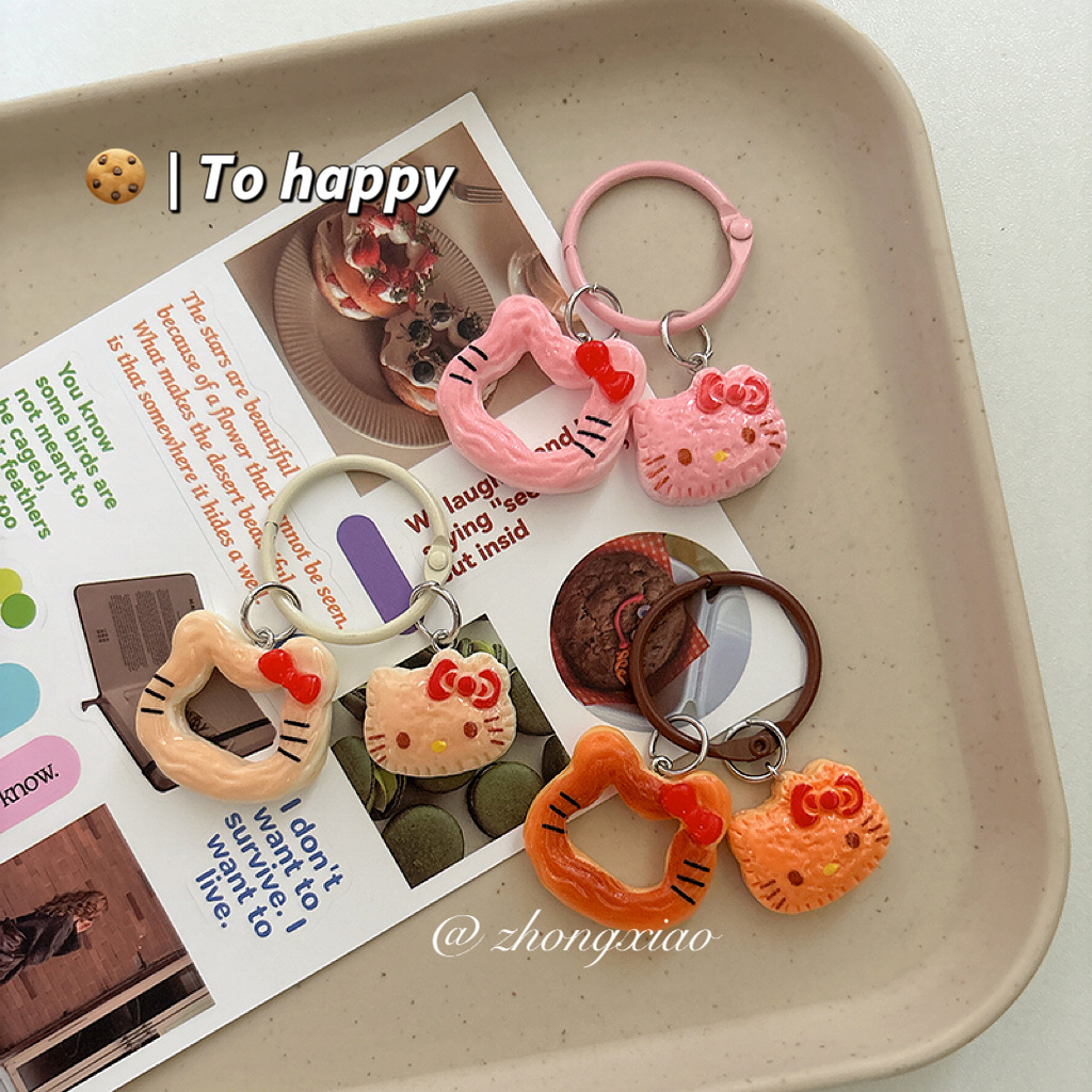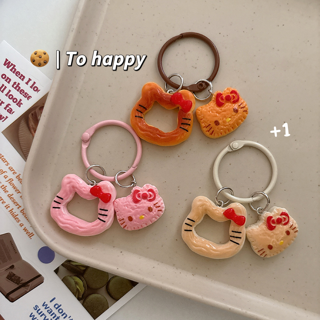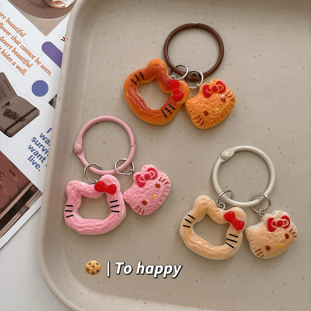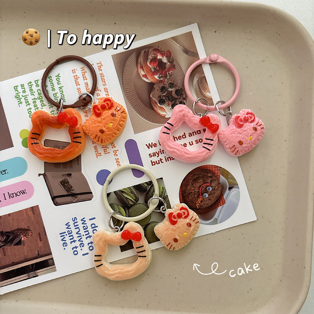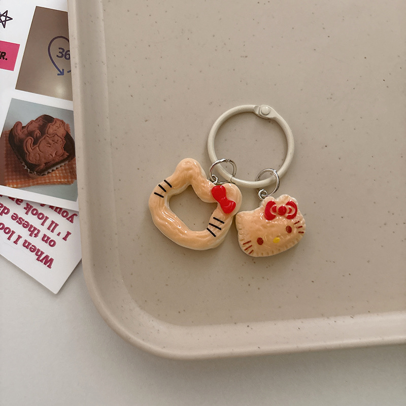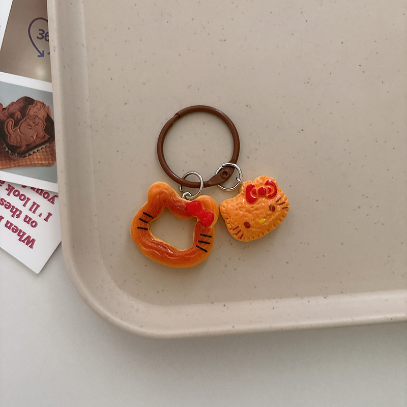 창조적 인 음식 놀이 쿠키 고양이 키 체인 만화 펜던트 소녀 가방 귀여운 교수형 액세서리 여자 친구 선물