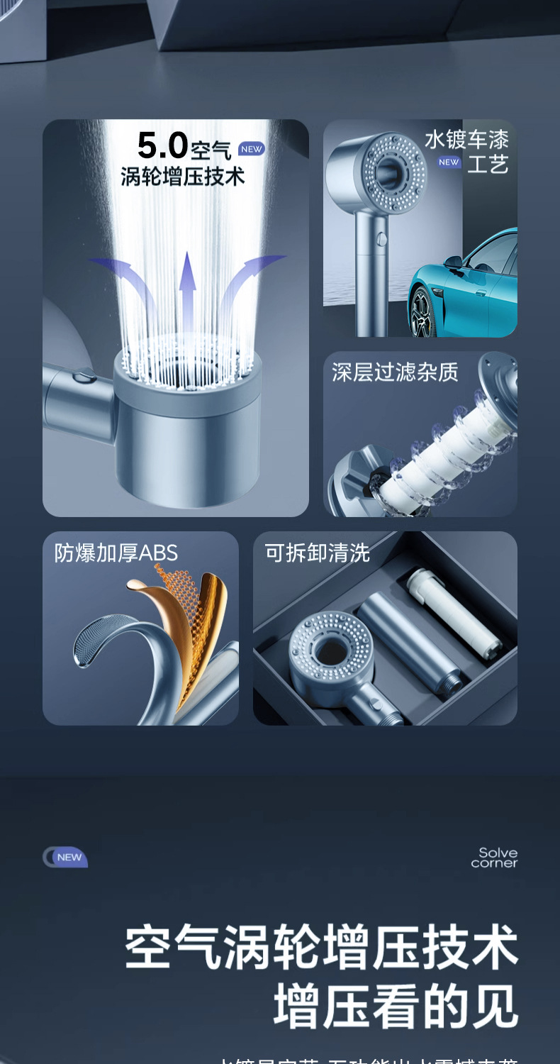 독일 터보차저 꽃 와인 스프링클러 슈퍼 강력한 물 배출구 가정용 가압 샤워 헤드 레인 샤워 헤드
