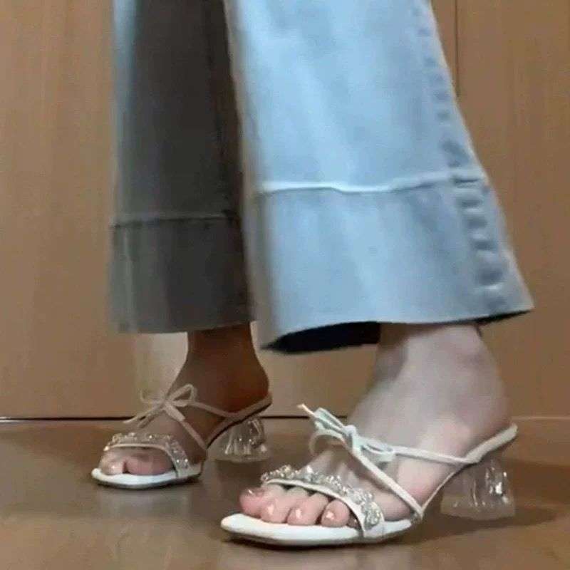 여성을위한 라인 석 샌들 2025 새로운 여름 하이힐 아름다운 요정 스타일 프랑스 스타일 스커트와 두꺼운 굽 샌들스토어 가기