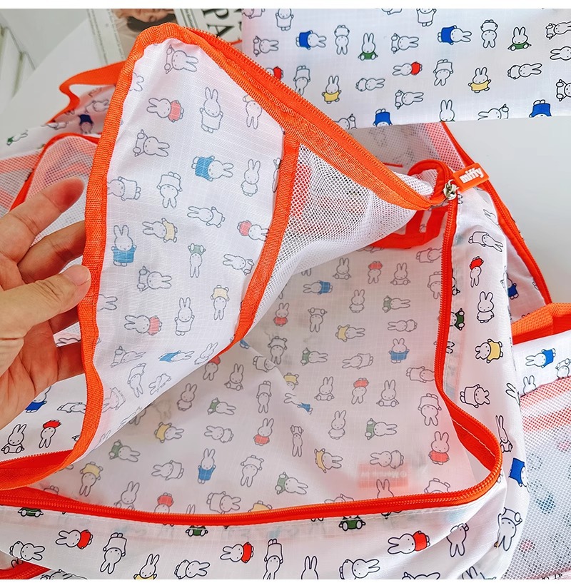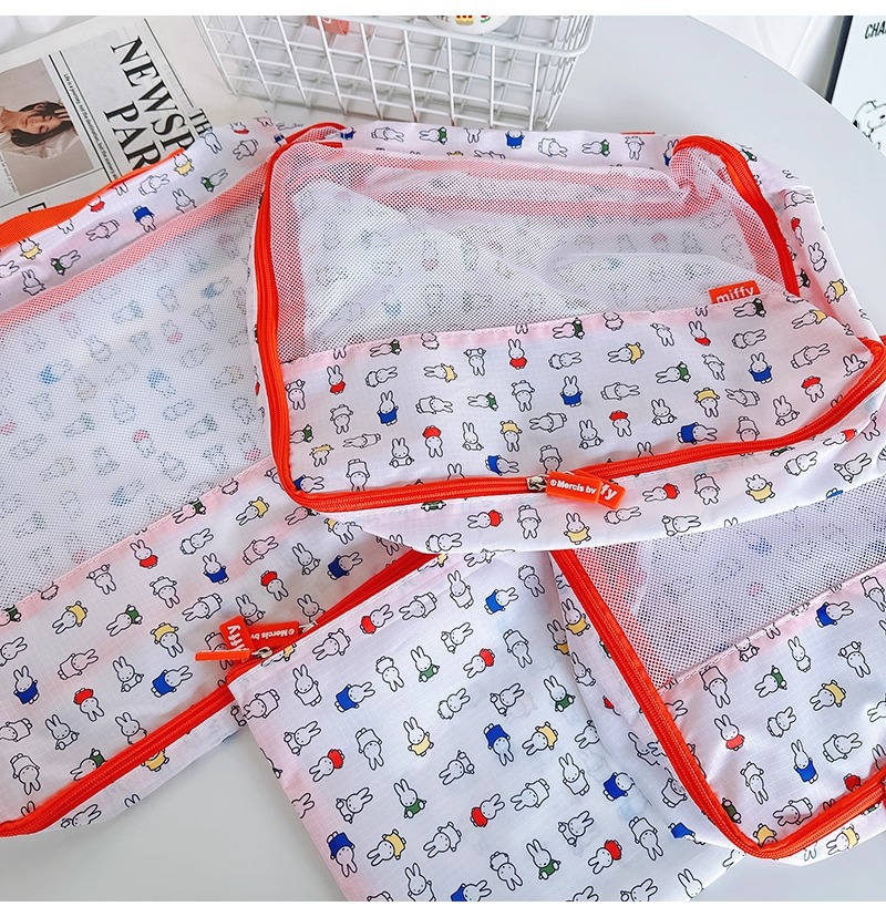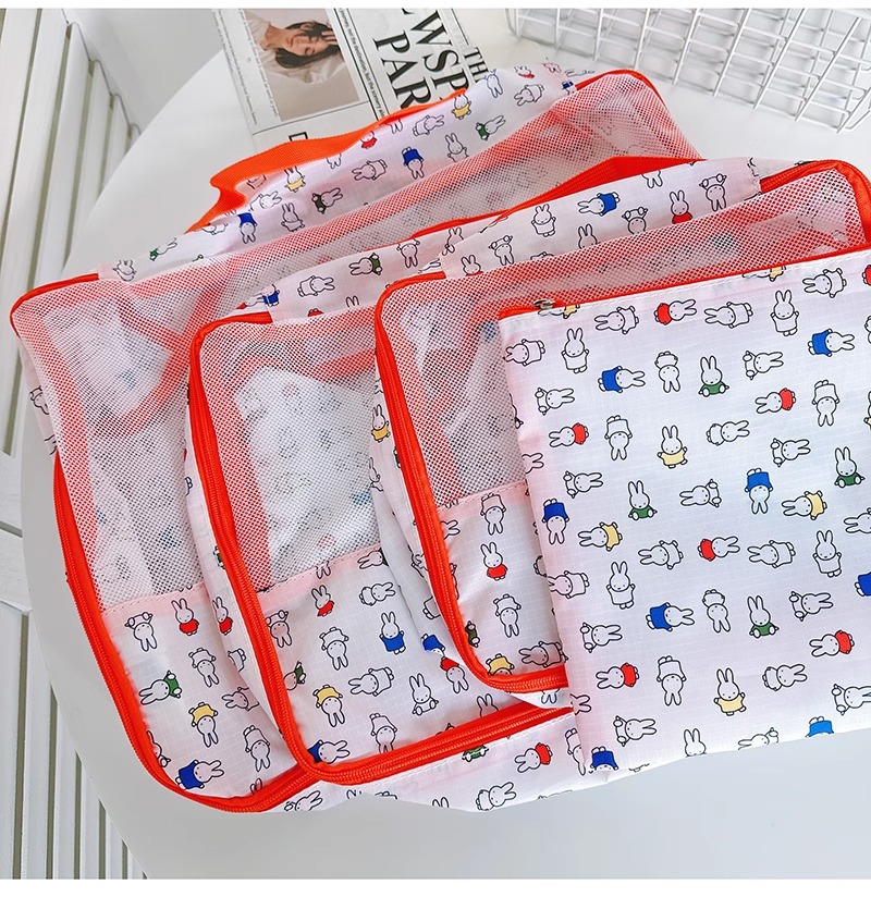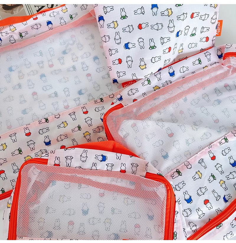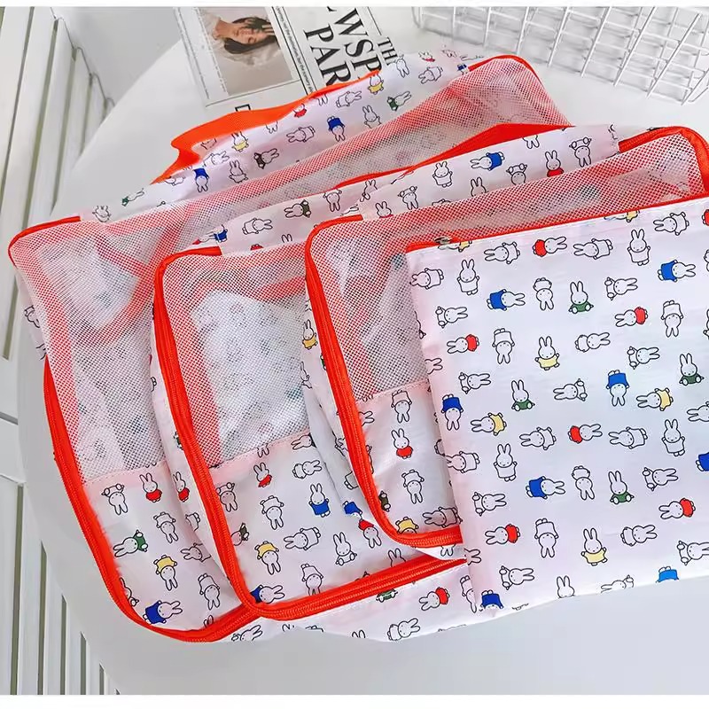 일본풍 만화 토끼 의류 가방 수납 4종 세트, 반투명 여행용 짐 분류망