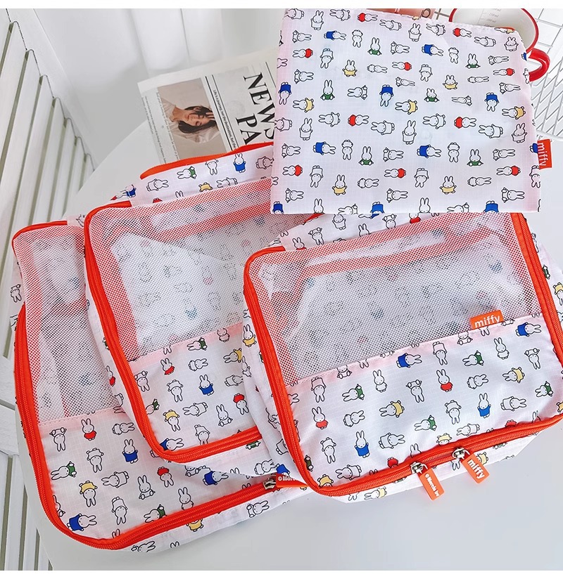 일본풍 만화 토끼 의류 가방 수납 4종 세트, 반투명 여행용 짐 분류망스토어 가기