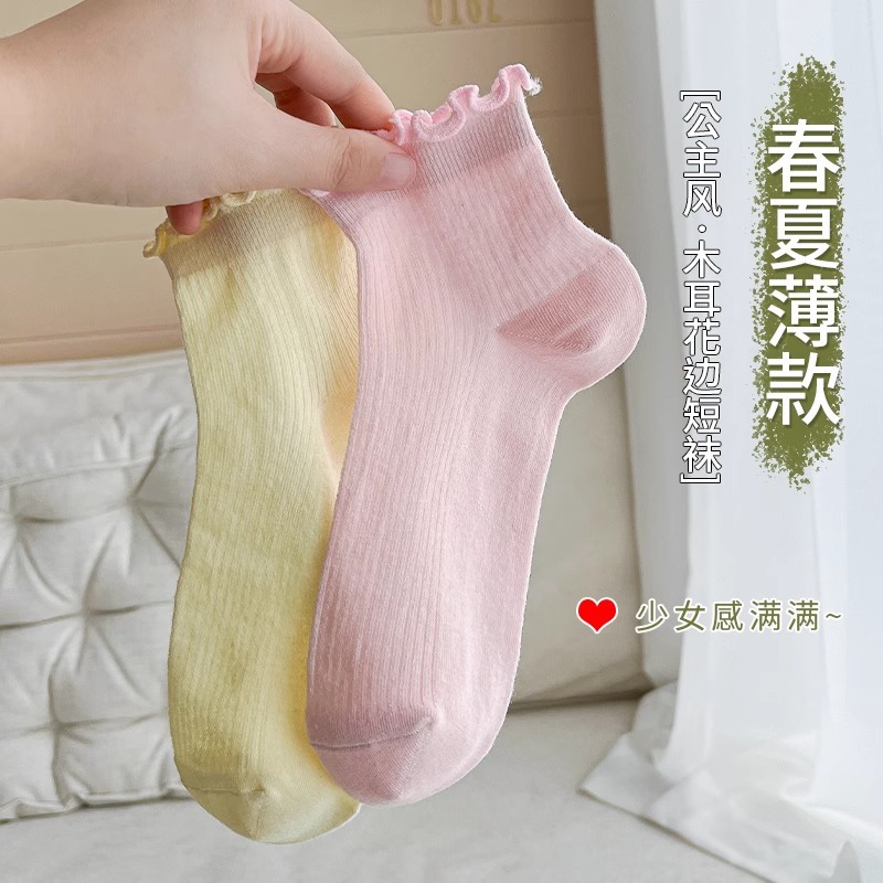 뼈없는 보풀 방지 양말 여름 얇은 단색 레이스 산후 양말 여름 땀 흡수 클래식 사계절 단색면 양말