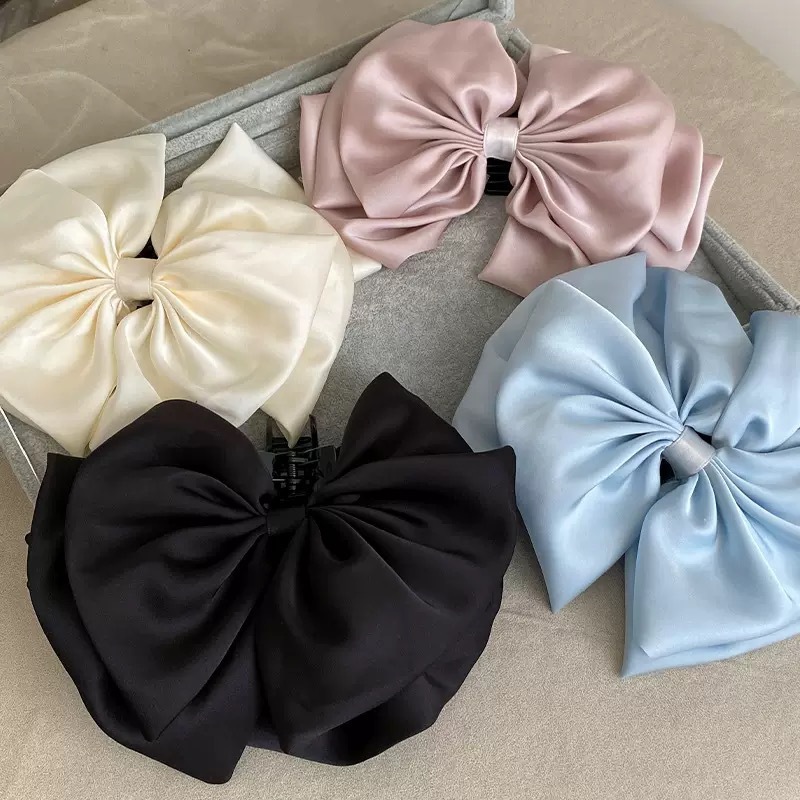 复古缎面蝴蝶结抓夹女高级感气质优雅低马尾夹后脑勺夹子头饰发夹