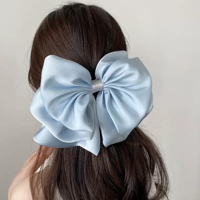 프랑스 활 버드 잡아 새틴 멀티 레이어 폰테일 클립 우아한 올 매치 하프 타이 헤어핀 헤드웨어