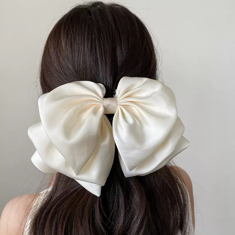 프랑스 활 버드 잡아 새틴 멀티 레이어 폰테일 클립 우아한 올 매치 하프 타이 헤어핀 헤드웨어스토어 가기