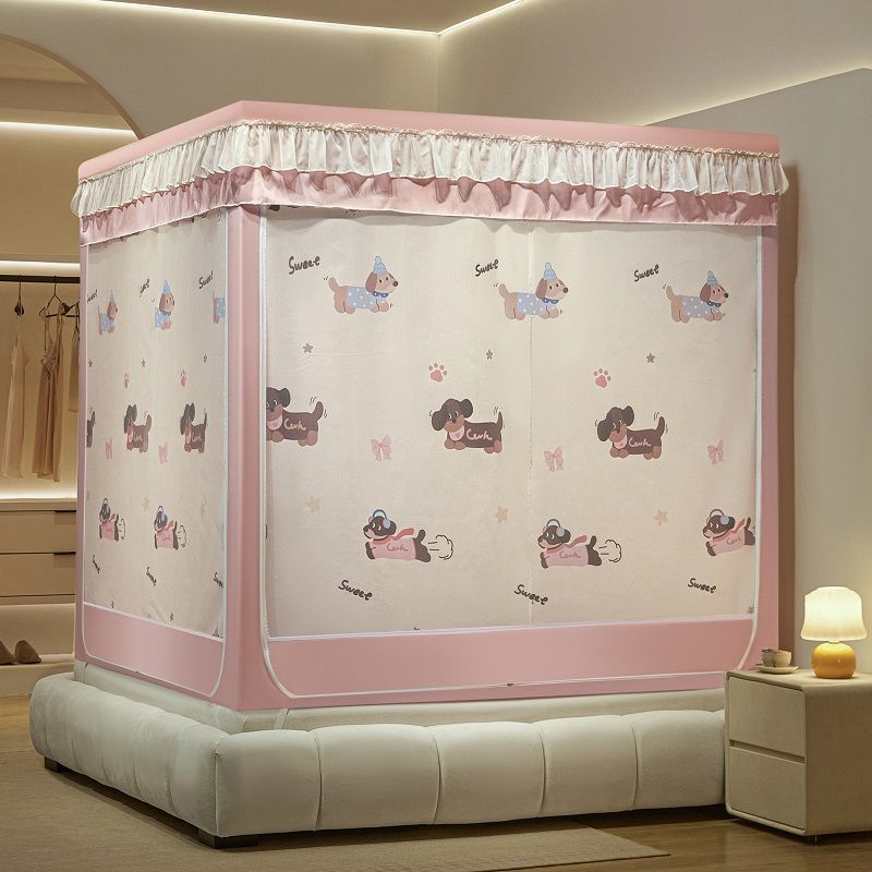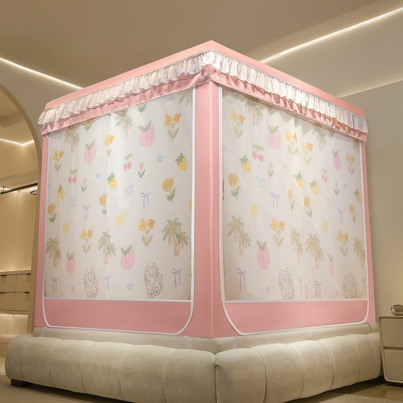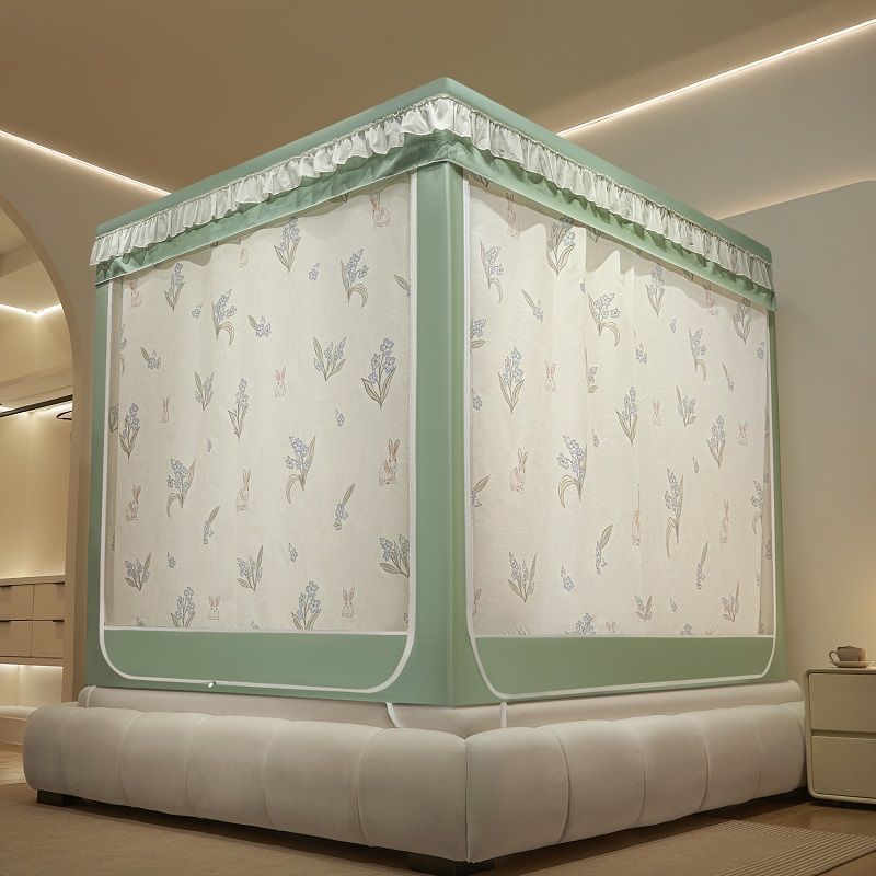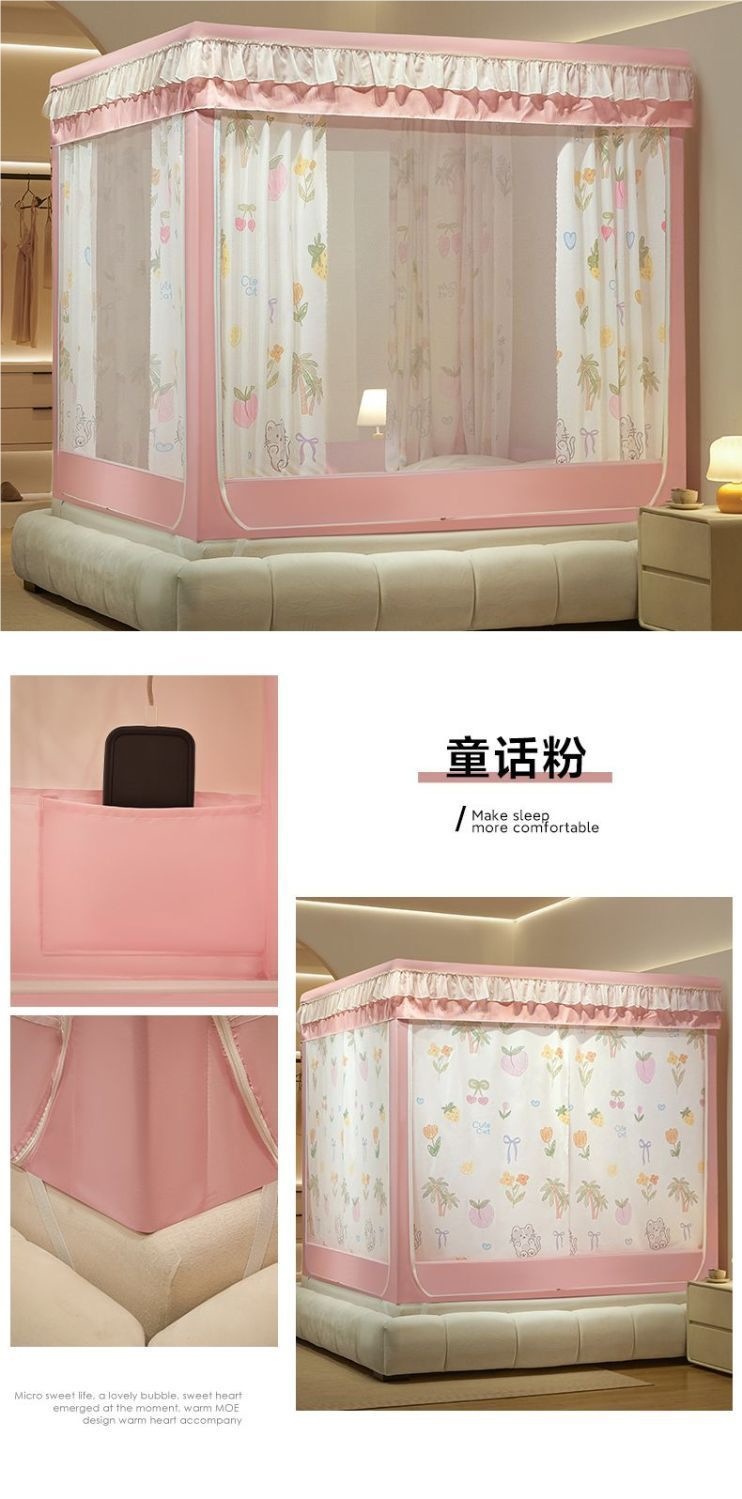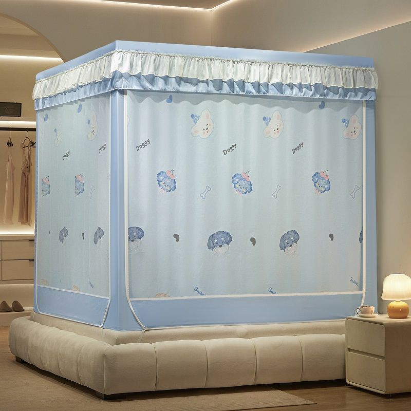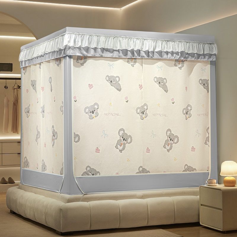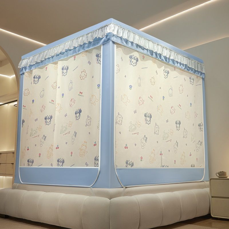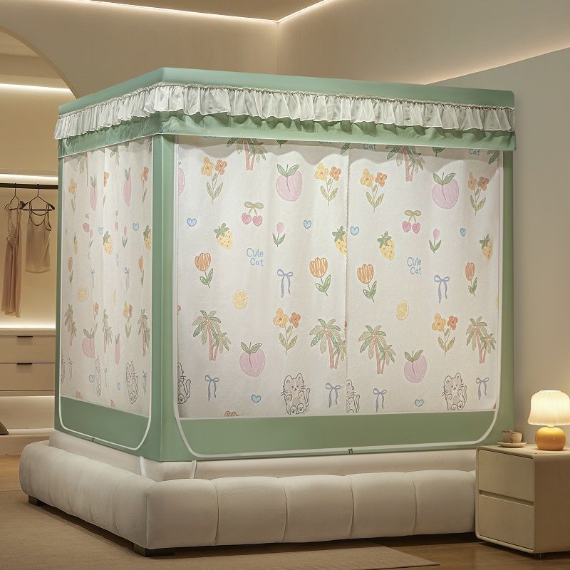 침대커튼, 차광, 방진, 모기장, 일체형 가정용 낙하방지 침대커튼, 하단, 침대, 3도어 지퍼 접이식 모기장