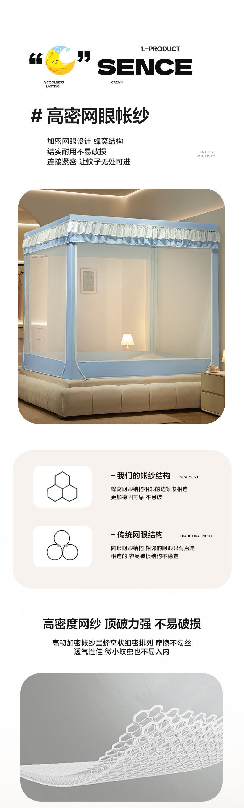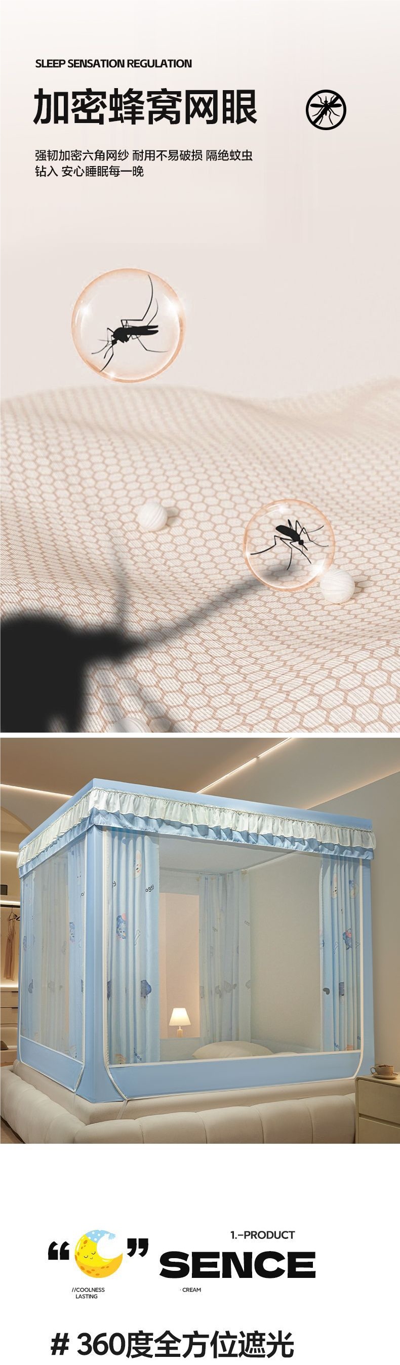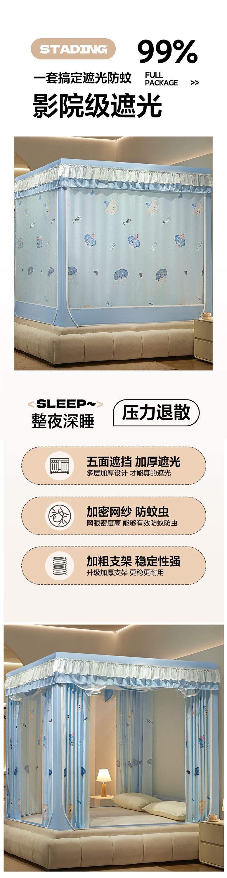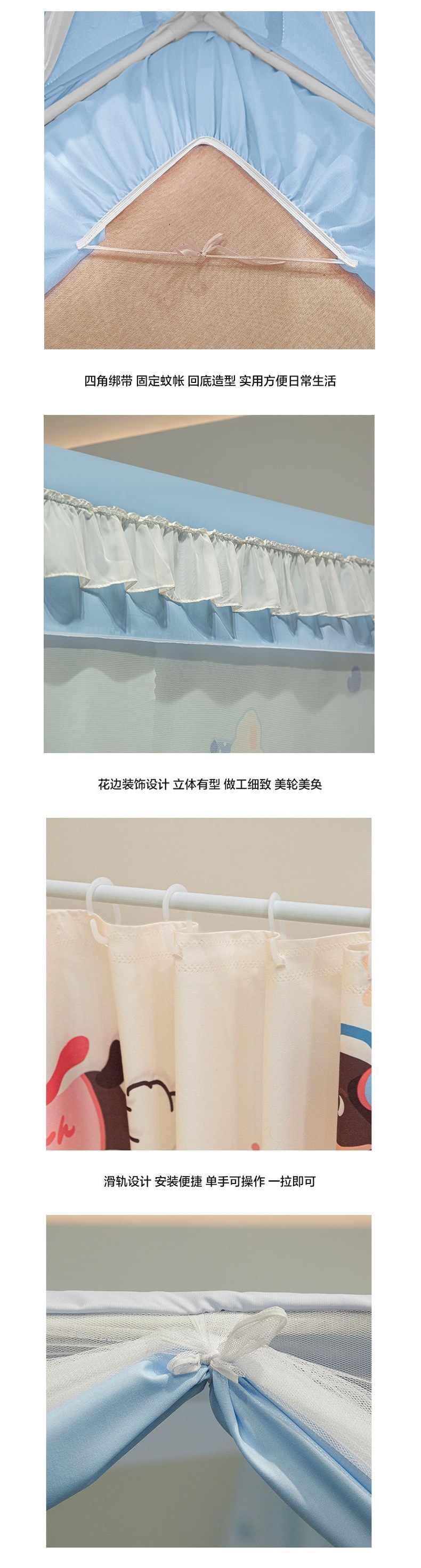 침대커튼, 차광, 방진, 모기장, 일체형 가정용 낙하방지 침대커튼, 하단, 침대, 3도어 지퍼 접이식 모기장
