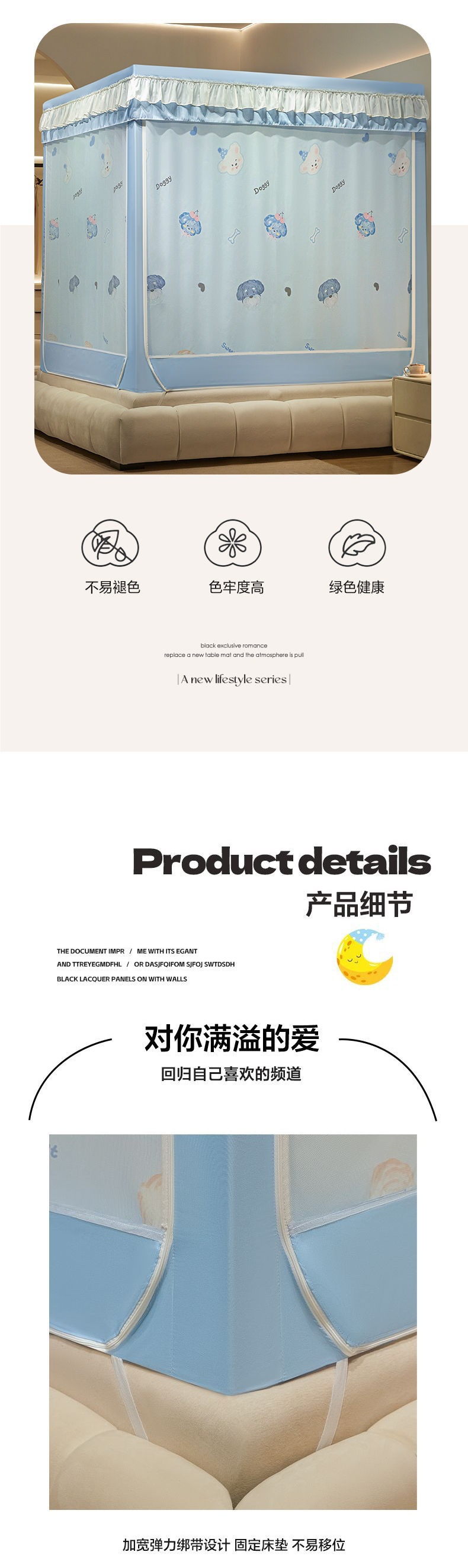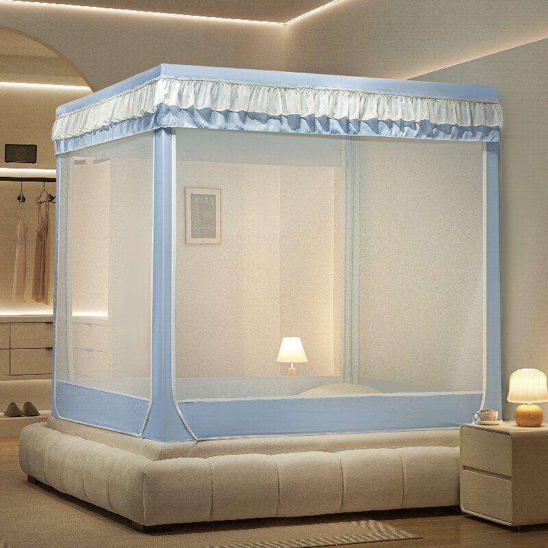 침대커튼, 차광, 방진, 모기장, 일체형 가정용 낙하방지 침대커튼, 하단, 침대, 3도어 지퍼 접이식 모기장스토어 가기