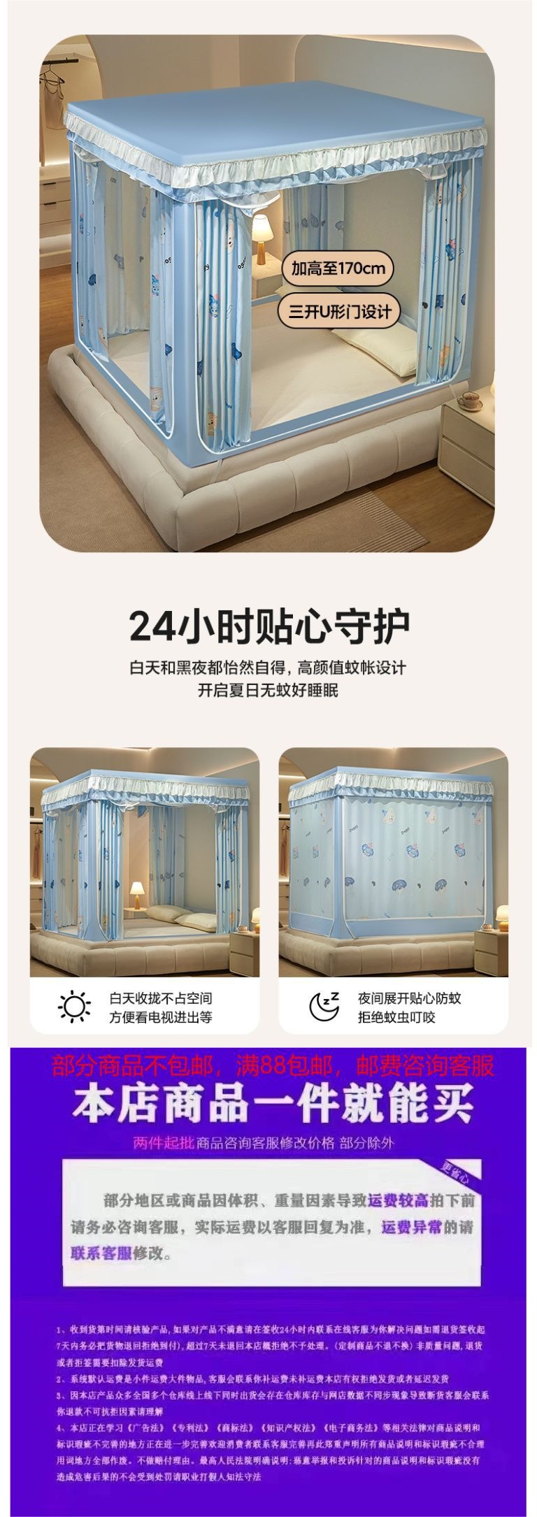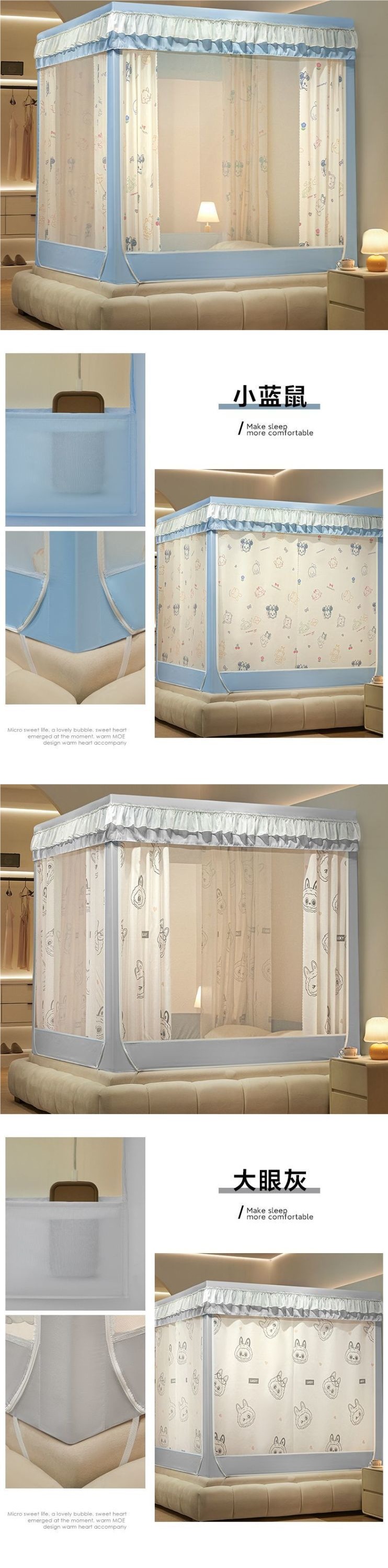 • 작은 파란색 쥐(모기장+브래킷+4면 침대커튼)