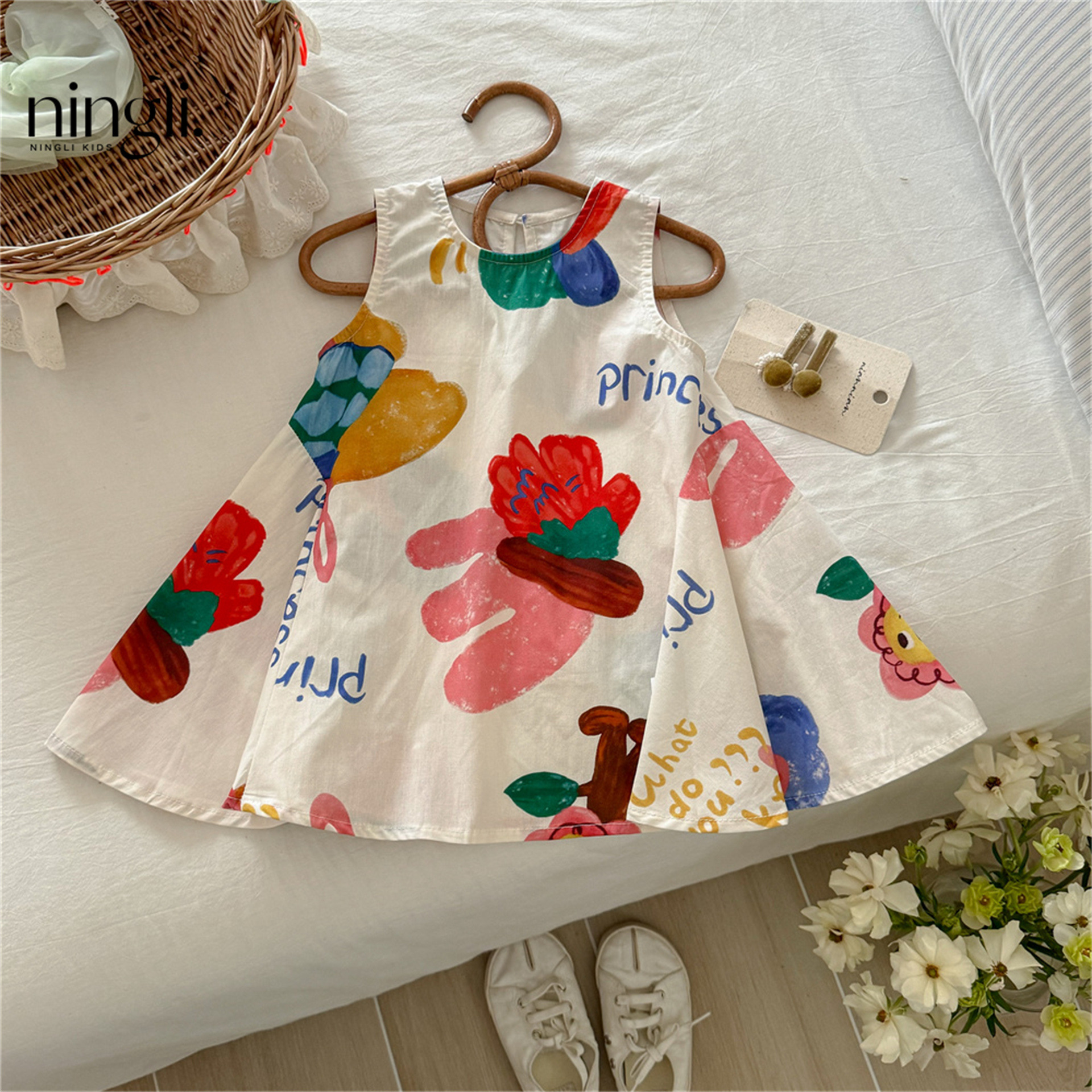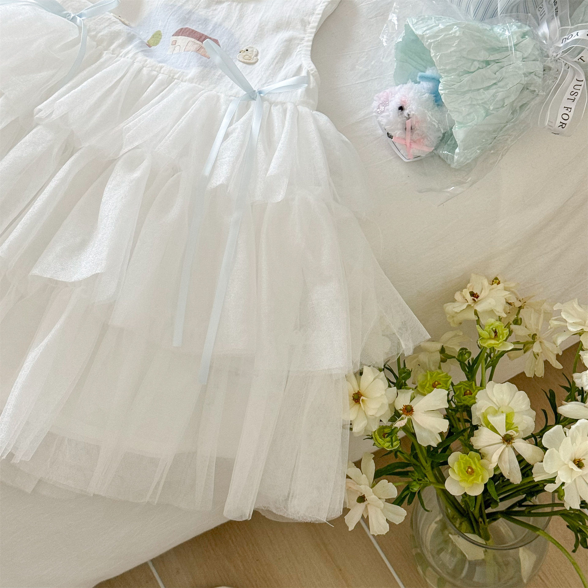 라임 아동복 25 여름 새 소녀 한국 만화 민소매 메쉬 스티칭 원피스 공주 원사 스커트
