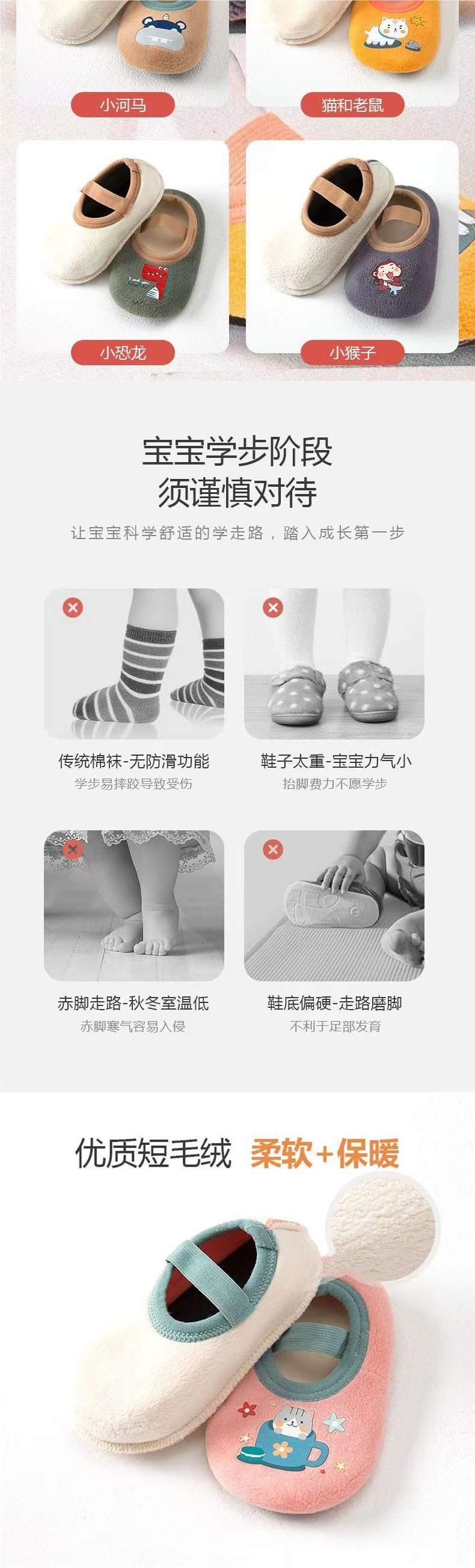 실내 무소음 슬리퍼, 무소음 어린이 아기 신발 및 양말, 겨울 스타일 1~2세 바닥 신발, 6~12개월 아기 미끄럼 방지 3