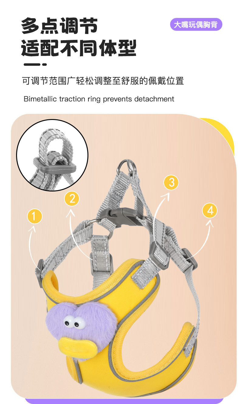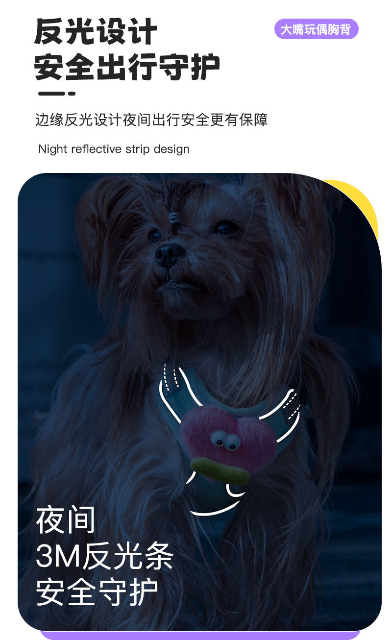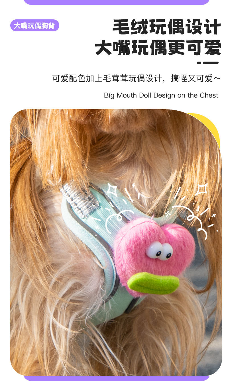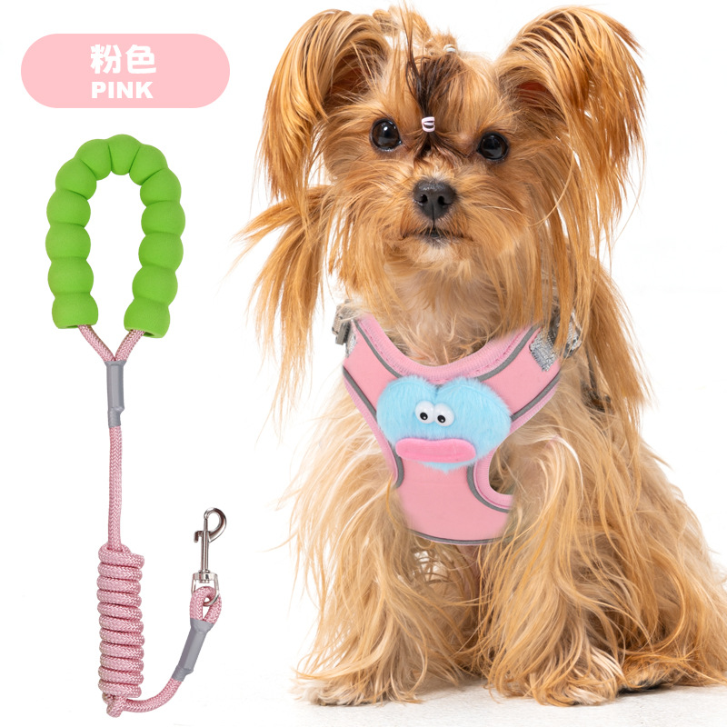 개 가죽끈 조끼 유형 조정 가능한 만화 하네스 작은 개 이탈 방지 개 가죽끈 애완 동물 가죽끈