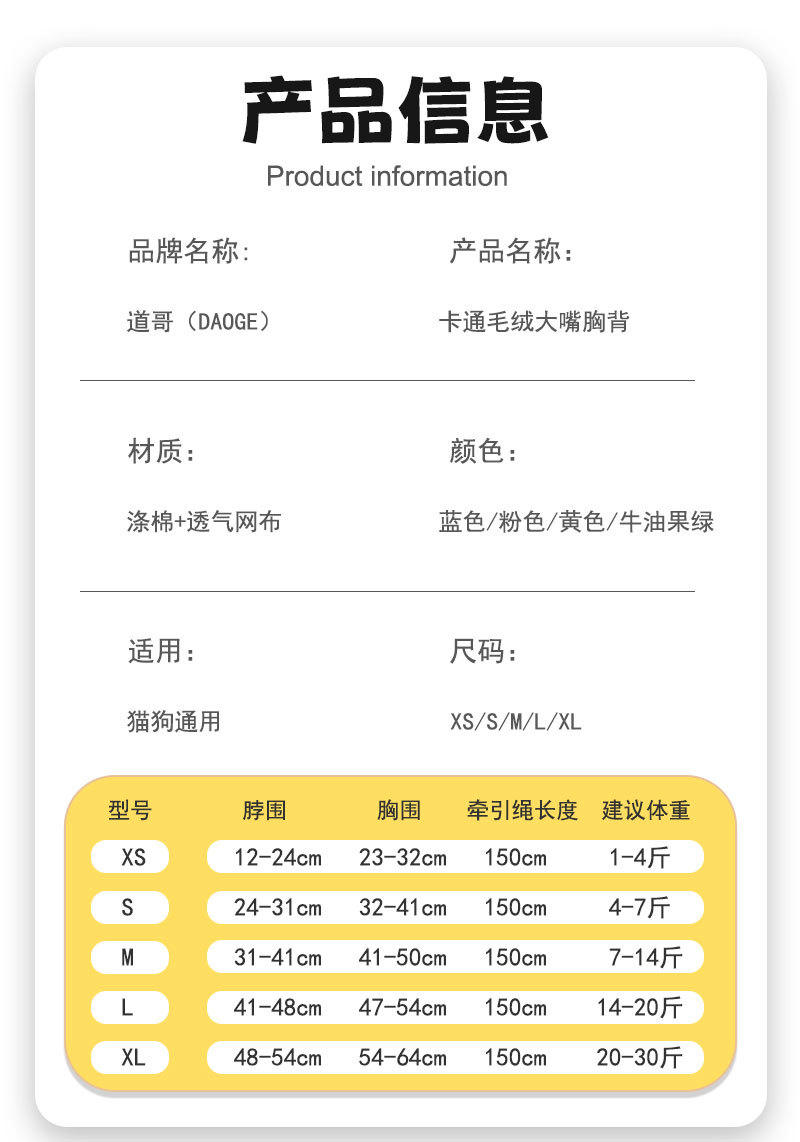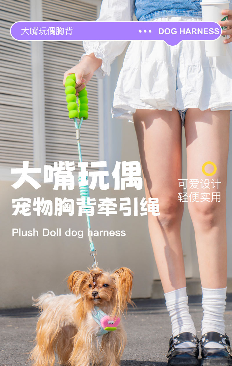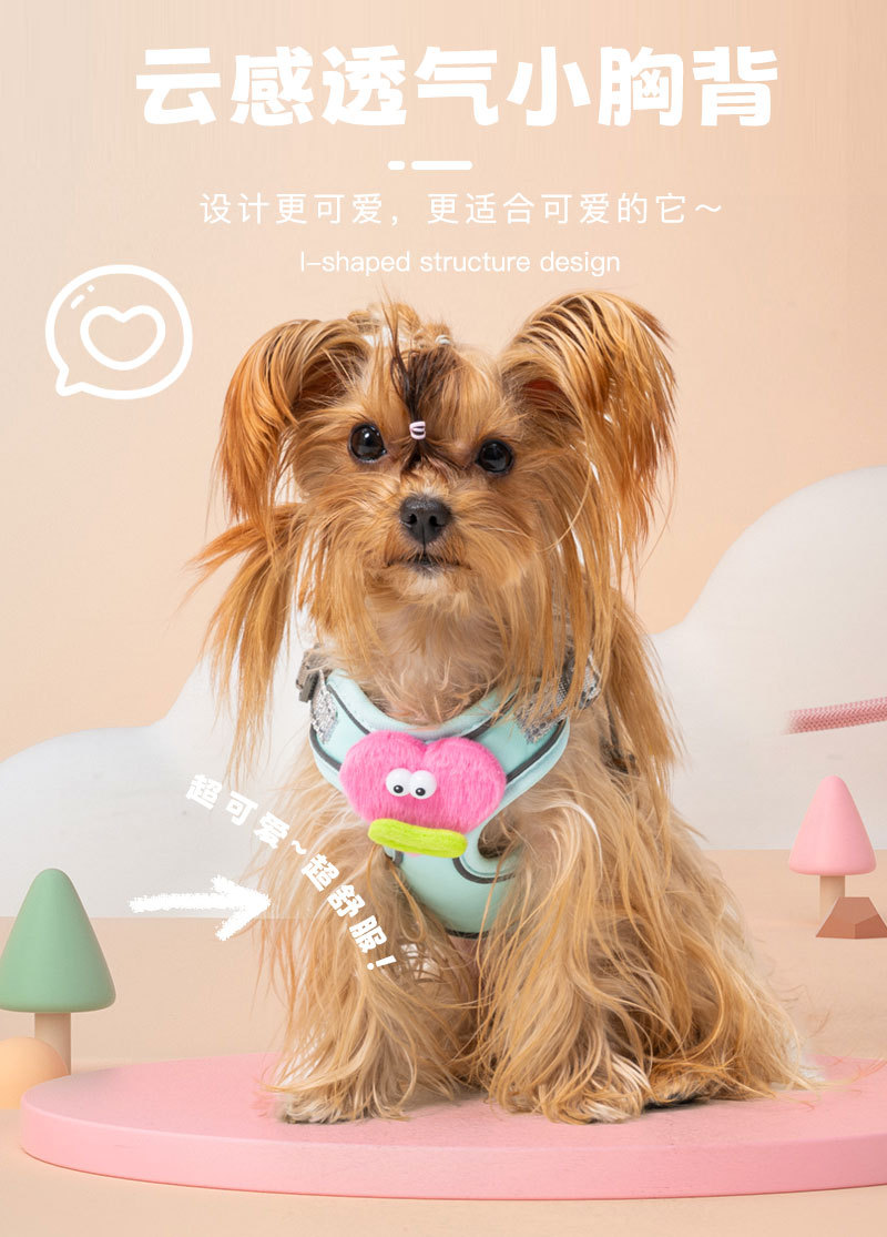개 가죽끈 조끼 유형 조정 가능한 만화 하네스 작은 개 이탈 방지 개 가죽끈 애완 동물 가죽끈스토어 가기