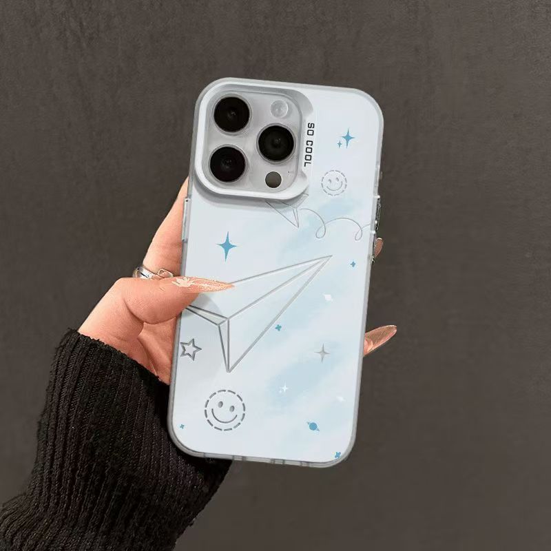 Apple 16/15/14pro 휴대폰 케이스 15promax13/12/11X에 적합한 스마일 종이 비행기 컬러 실버 쉘스토어 가기