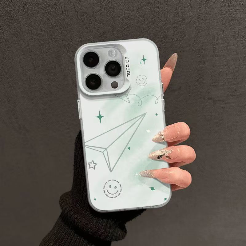 Apple 16/15/14pro 휴대폰 케이스 15promax13/12/11X에 적합한 스마일 종이 비행기 컬러 실버 쉘