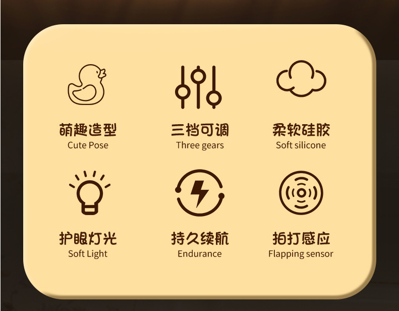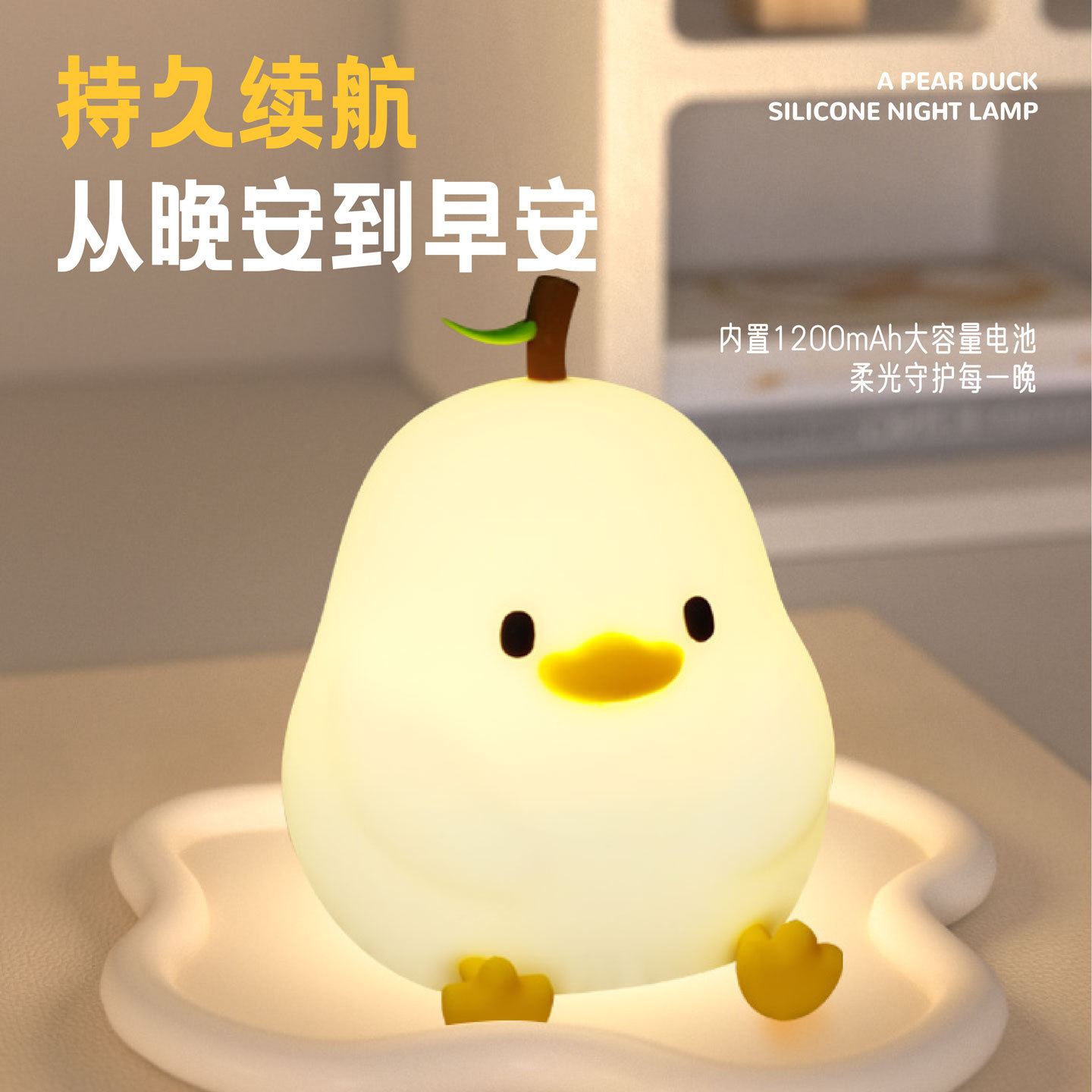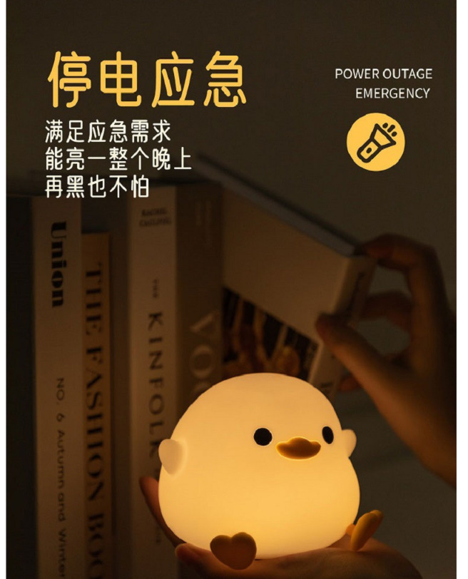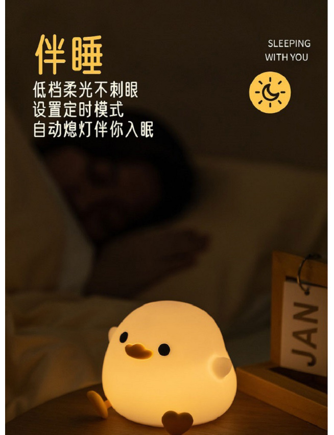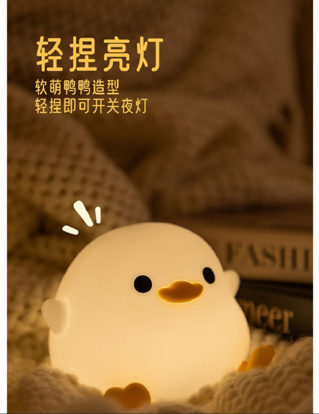 Doudou 오리 창조적 인 새로운 패팅 라이트 만화 실리콘 분위기 USB 충전 무선 독서 터치 야간 조명
