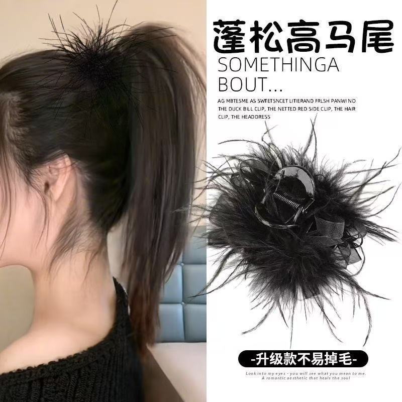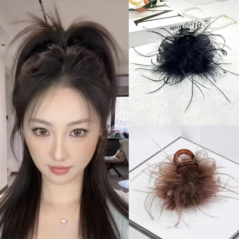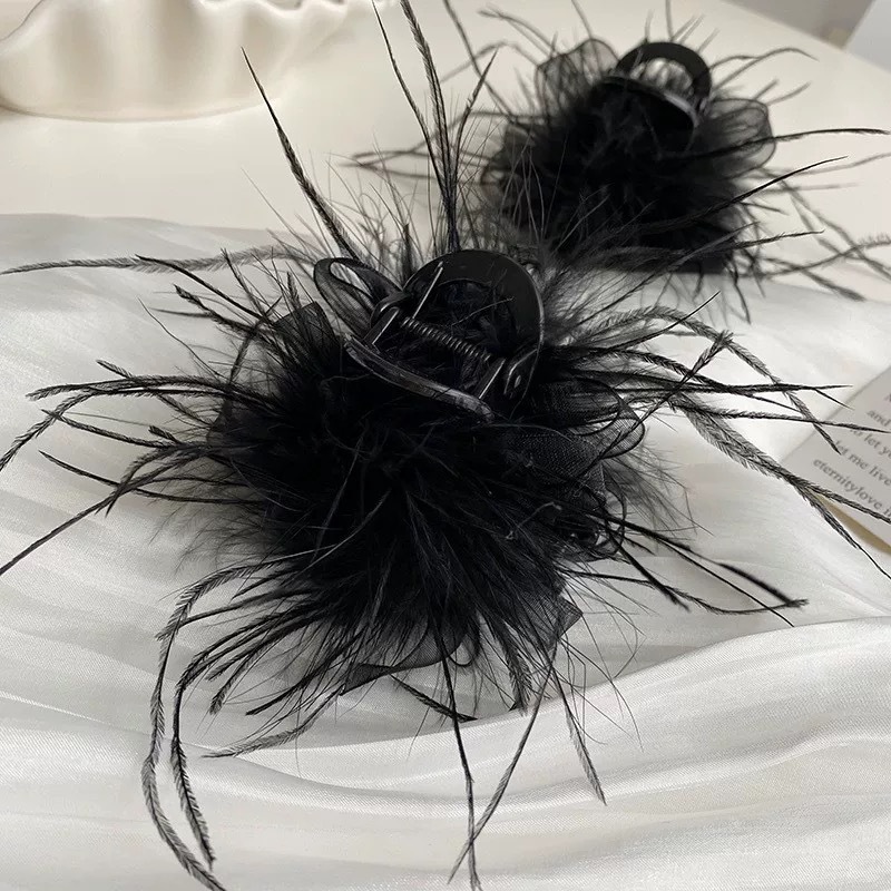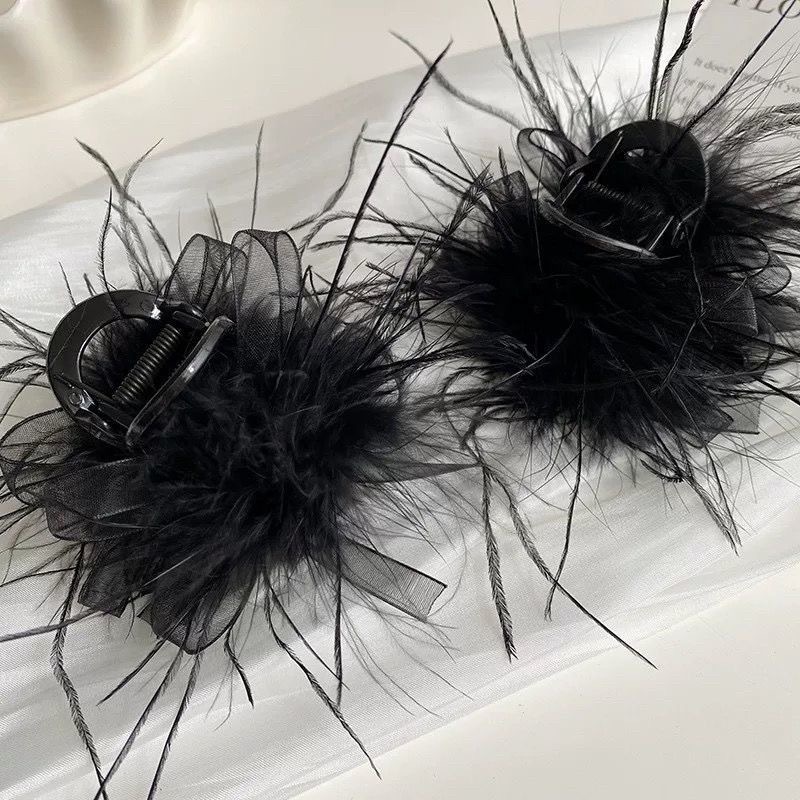 리본 메쉬 깃털 머리핀, 긴 머리 부티크 클립, 다용도 인터넷 연예인 헤어 액세서리, 여성용 인기 블랙 클립스토어 가기