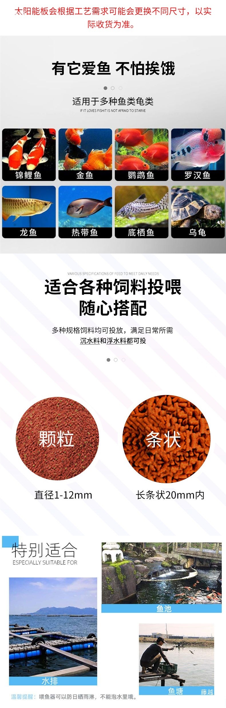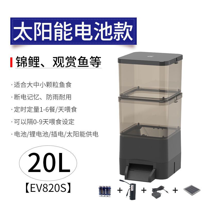 태양열 전자동 물고기 공급기, 타이머 공급, 대용량 잉어 야외 물고기 연못 거북이 공급기