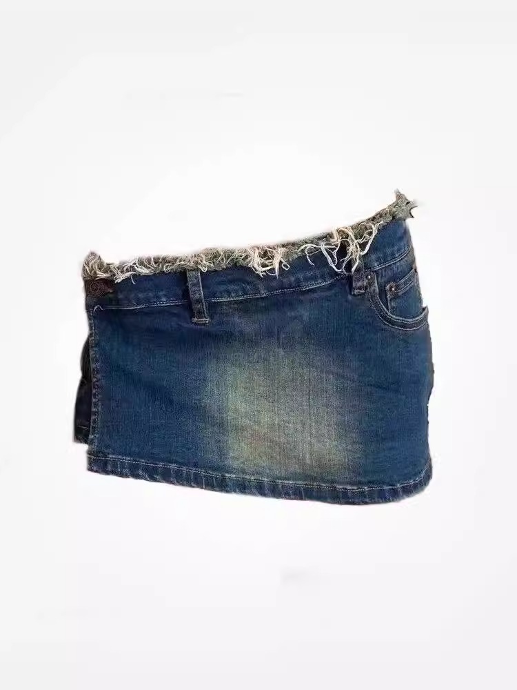 핫한 여성을 위한 미국식 y2k 복고풍 로우 엣지 데님 미니 스커트, 로우 웨이스트, 슬림핏, 힙 커버 팬츠 스커트스토어 가기