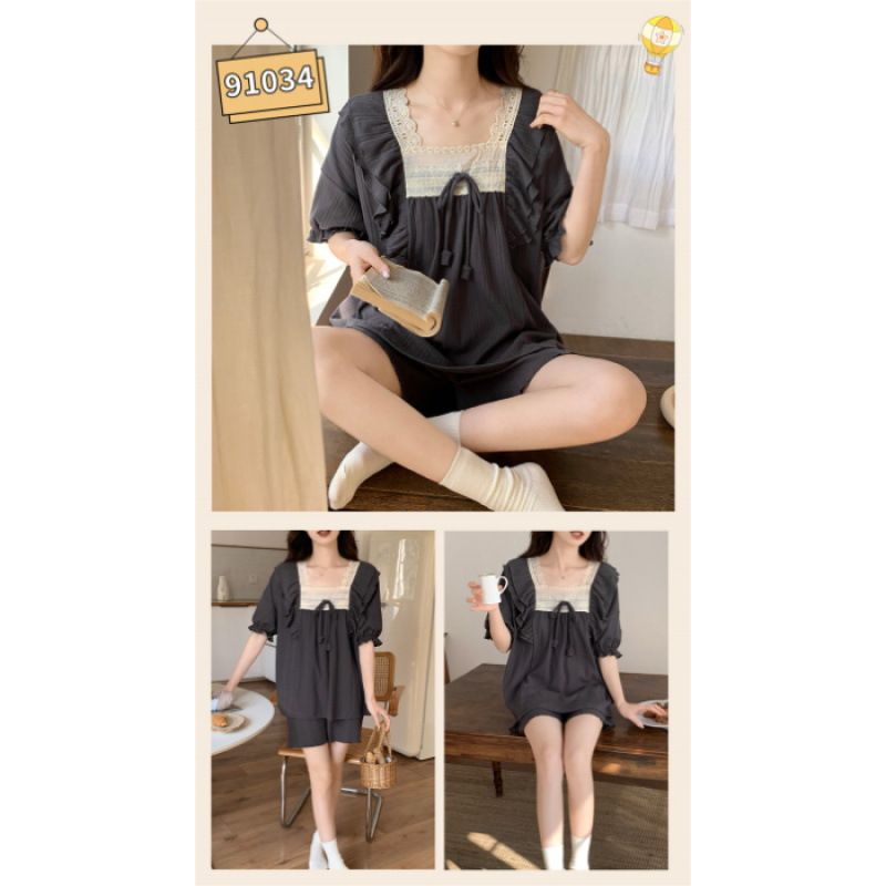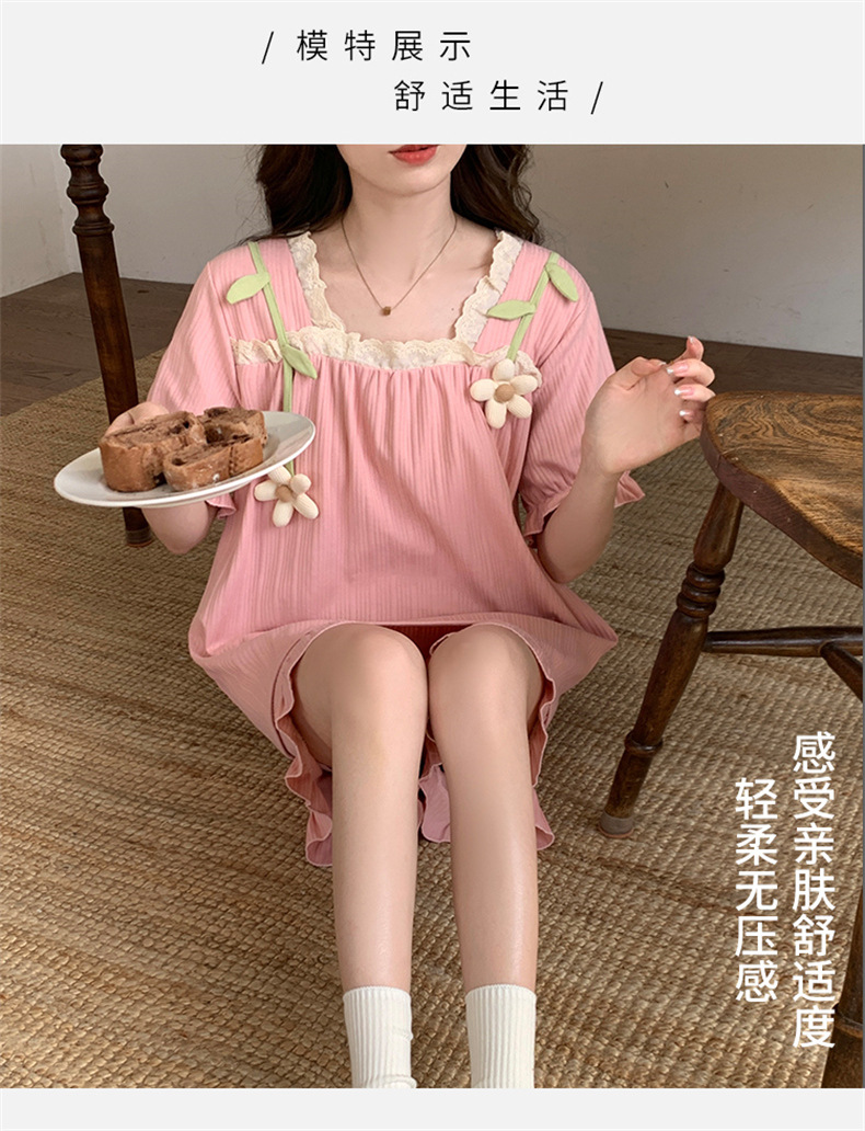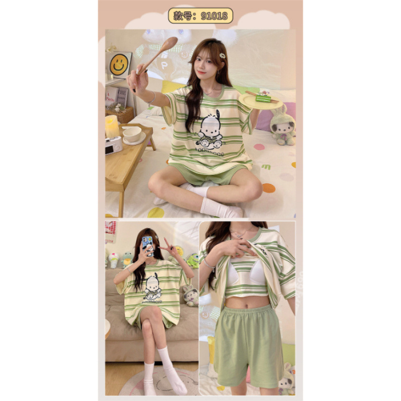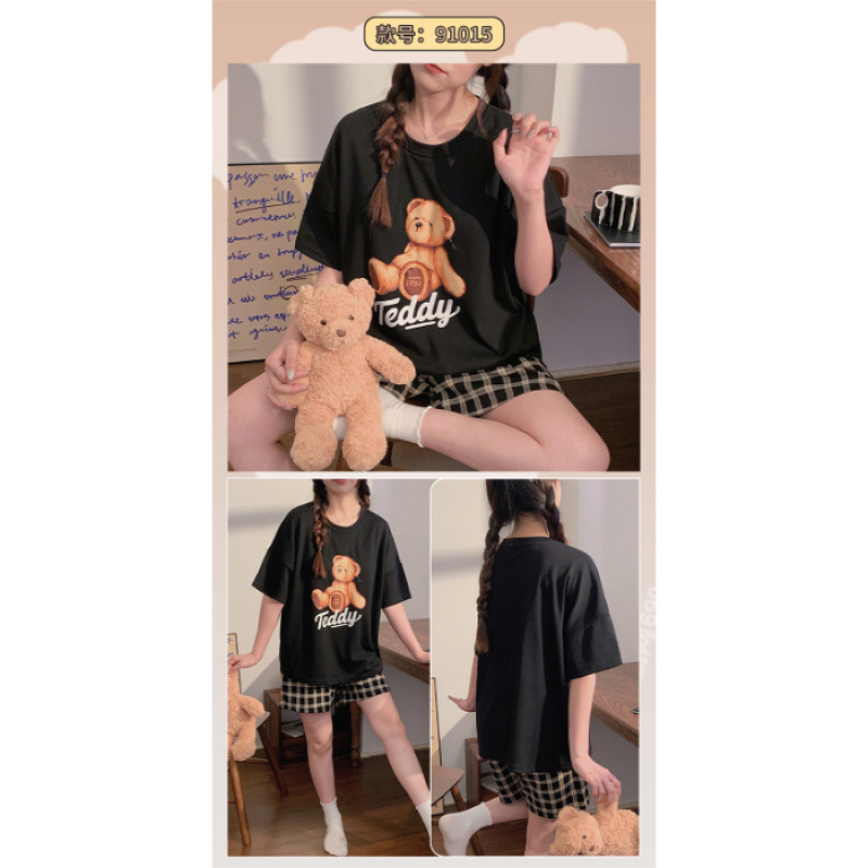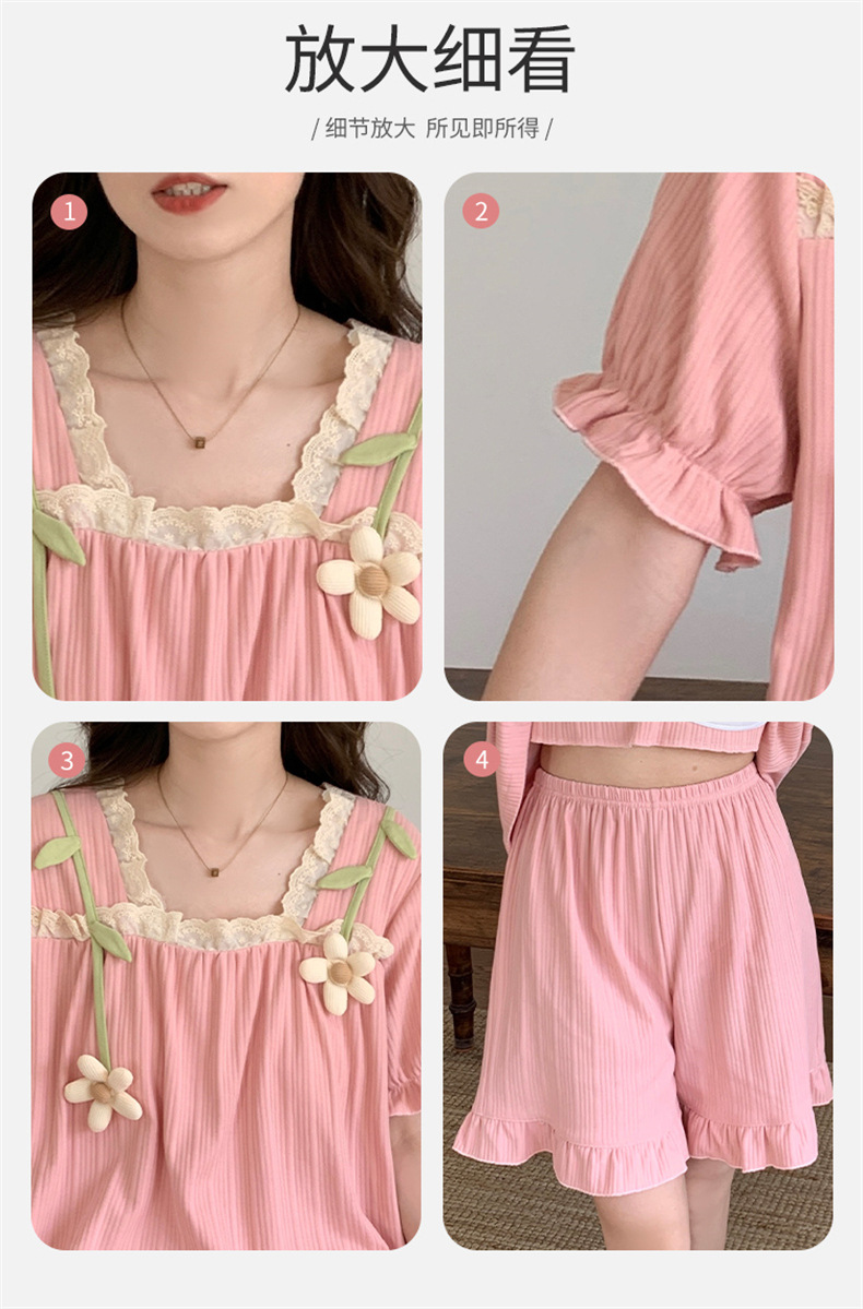 2025년 새로운 귀여운 반팔 여성 잠옷 여름 가슴 패드 일체형 웨어러블 홈웨어 세트스토어 가기