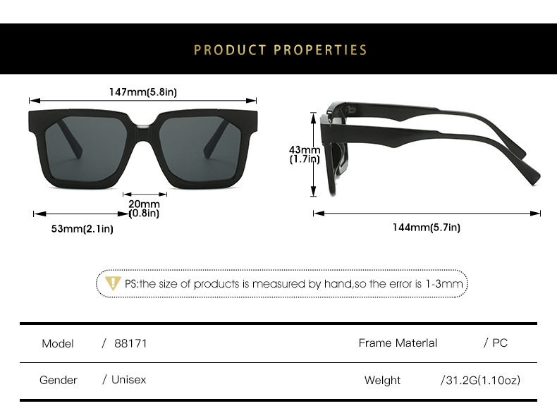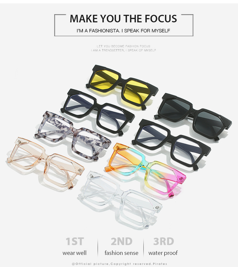 남성과 여성을위한 국경 간 새로운 상자 간단한 선글라스 PC 컬러 트렌디 인 유럽과 미국의 복고풍 선글라스 쇼