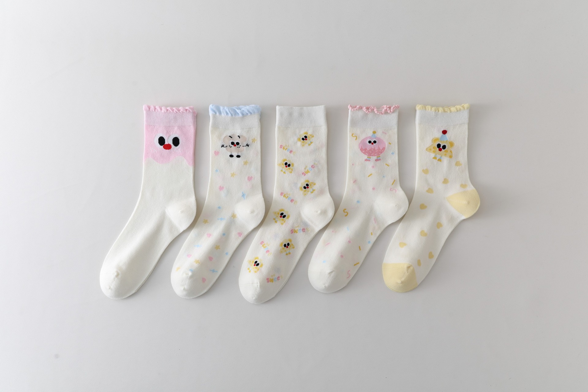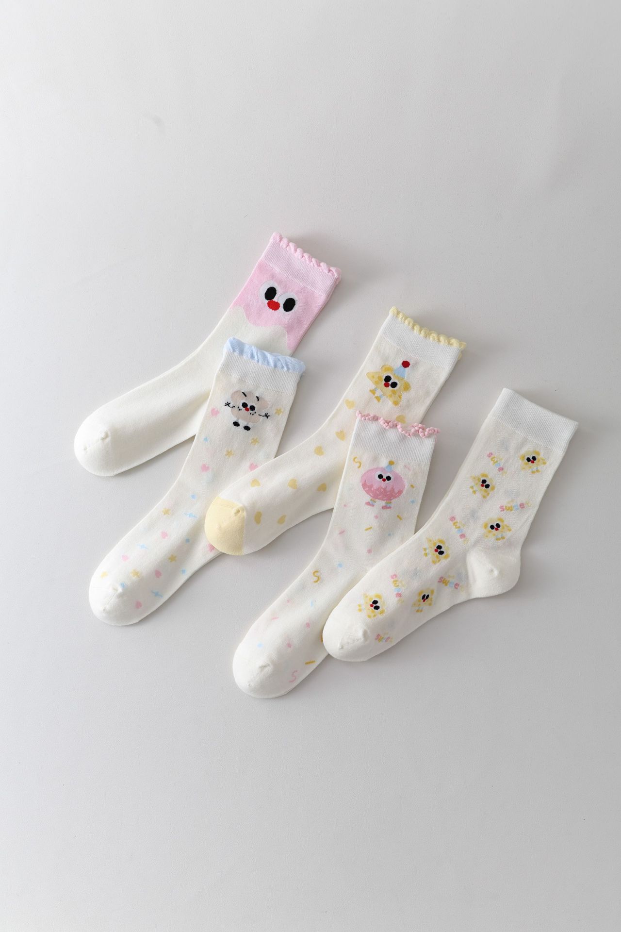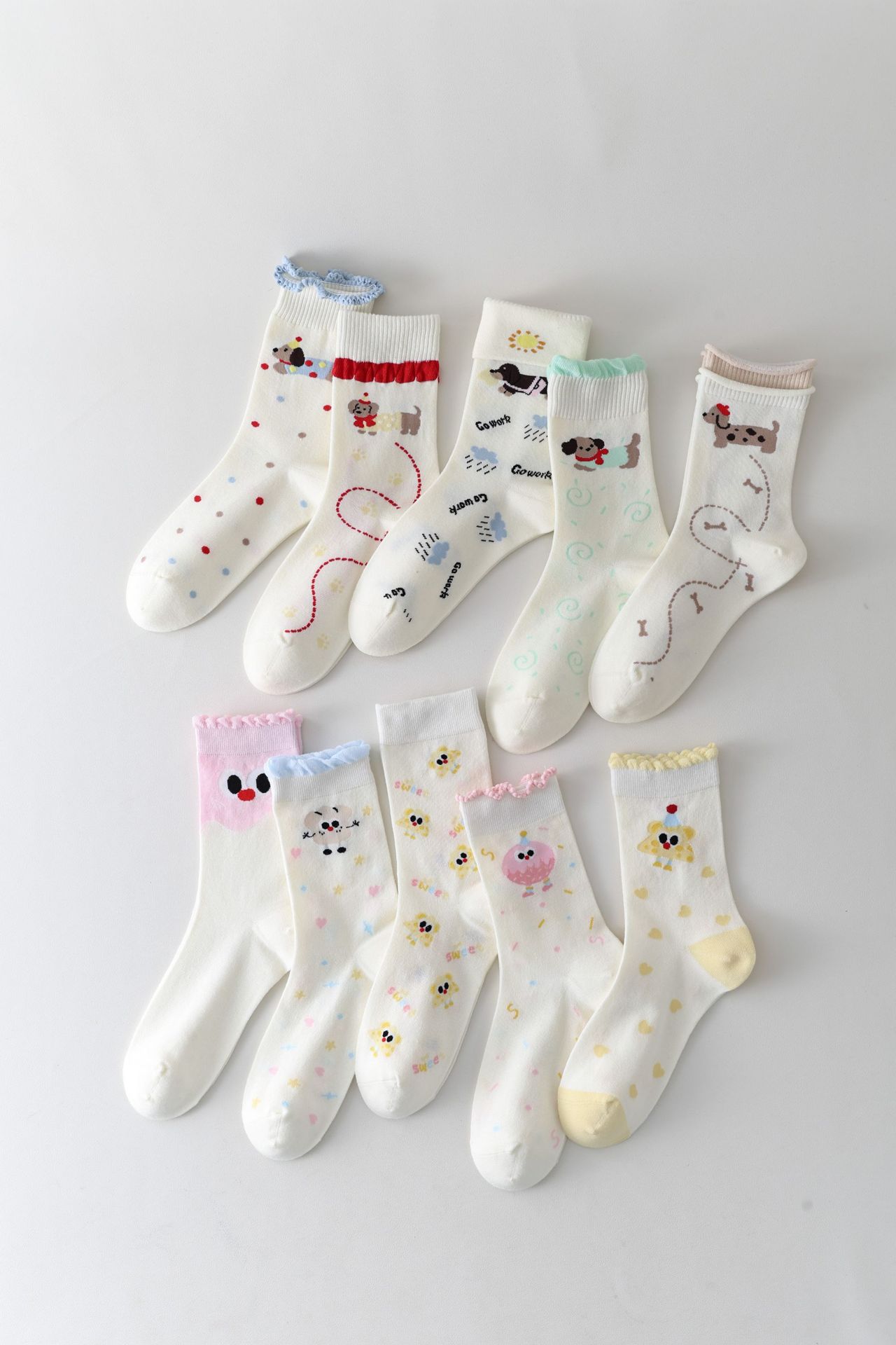 DUDUSNOW 봄 여름 신상 쿠키 만화 귀여운 심플 강아지 큰 눈 패턴 중목 여성용 면 양말 신상품스토어 가기