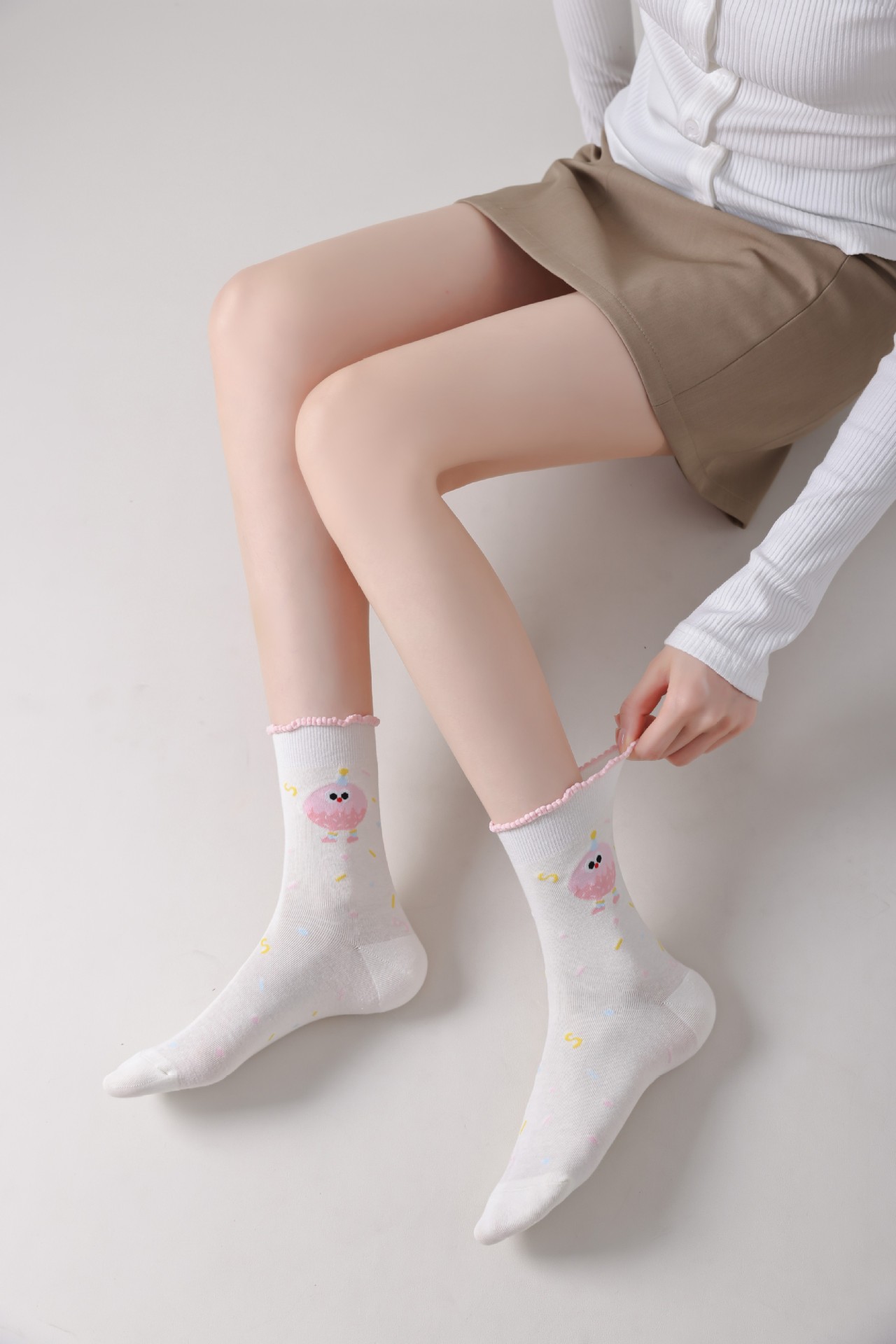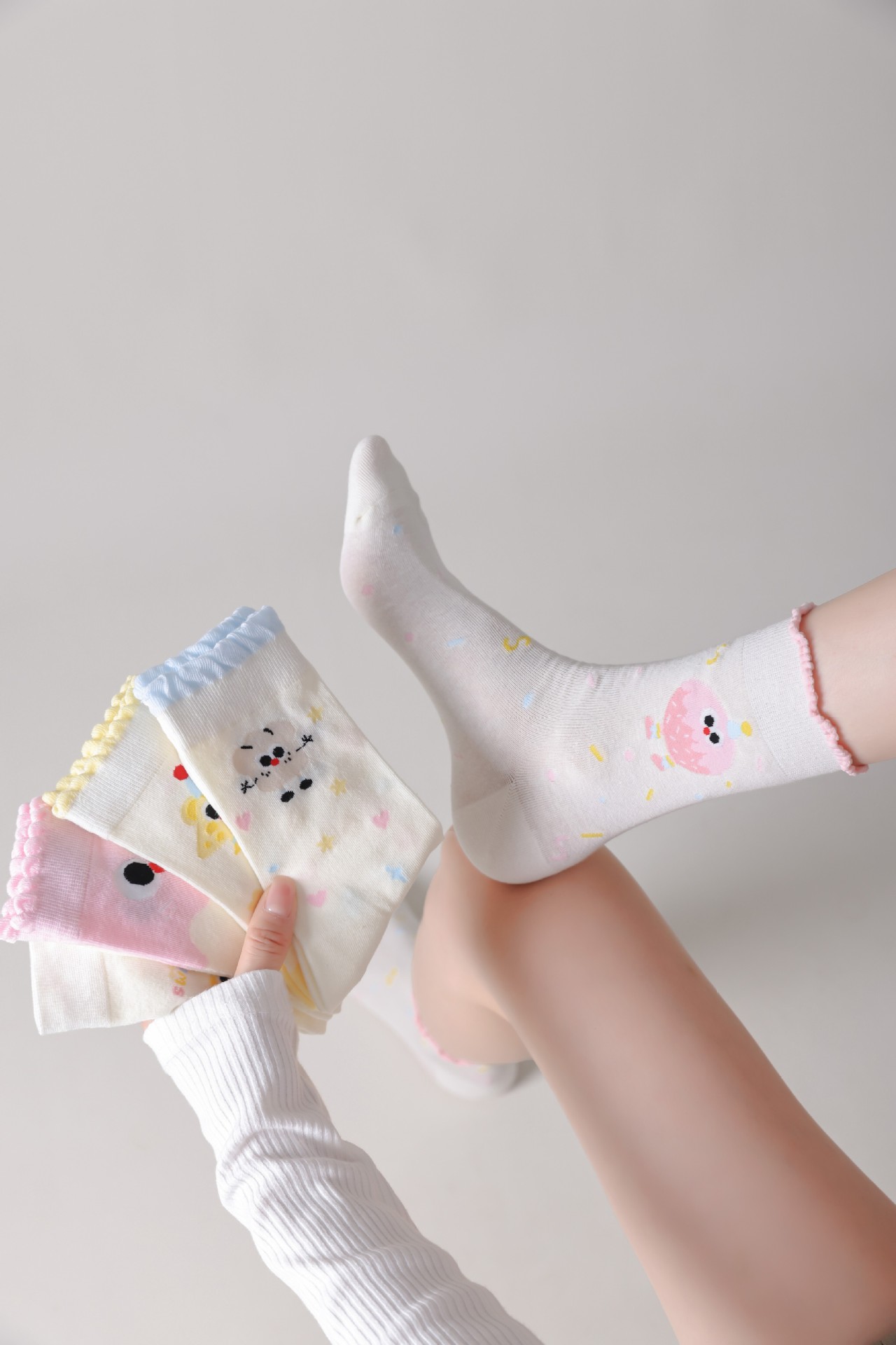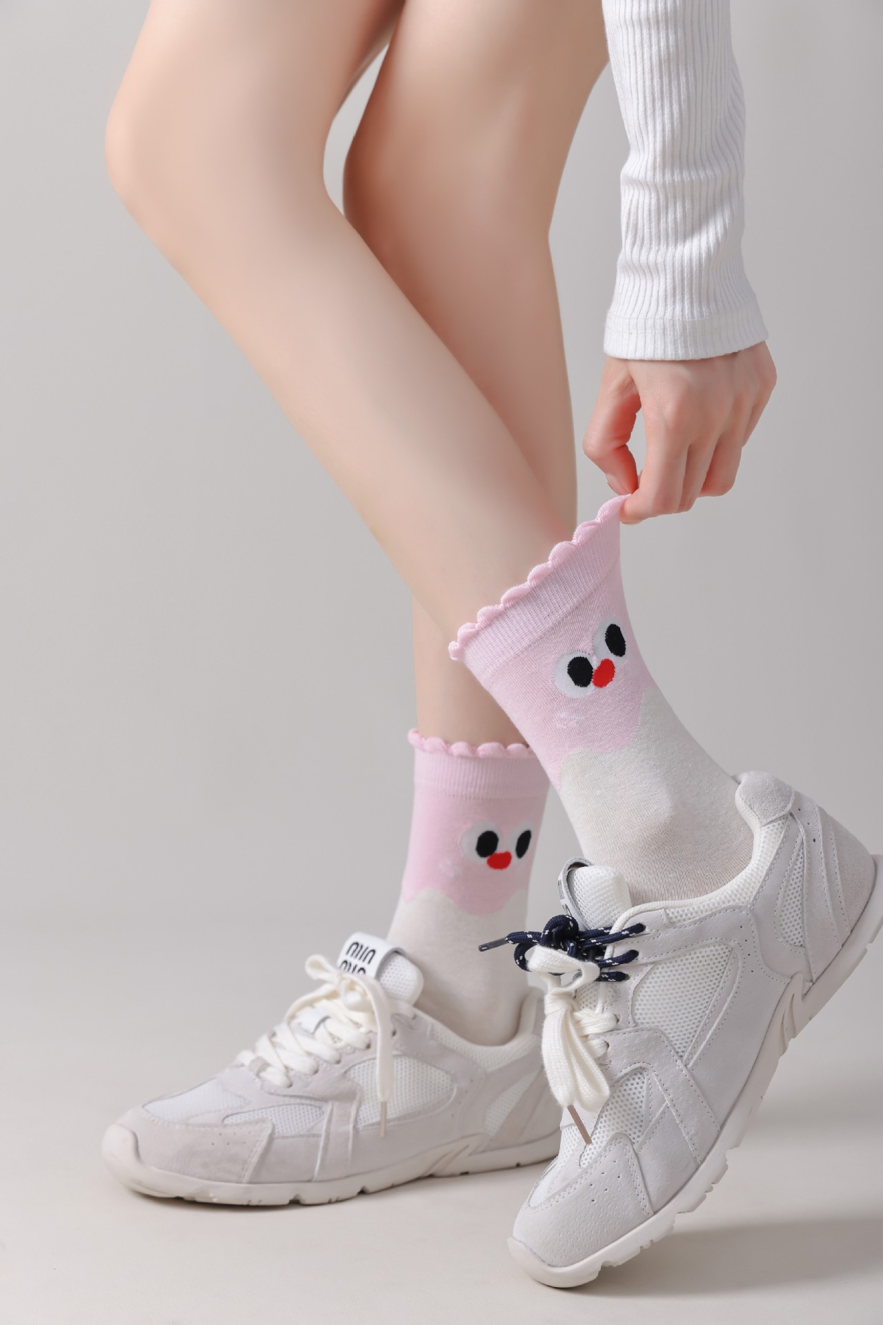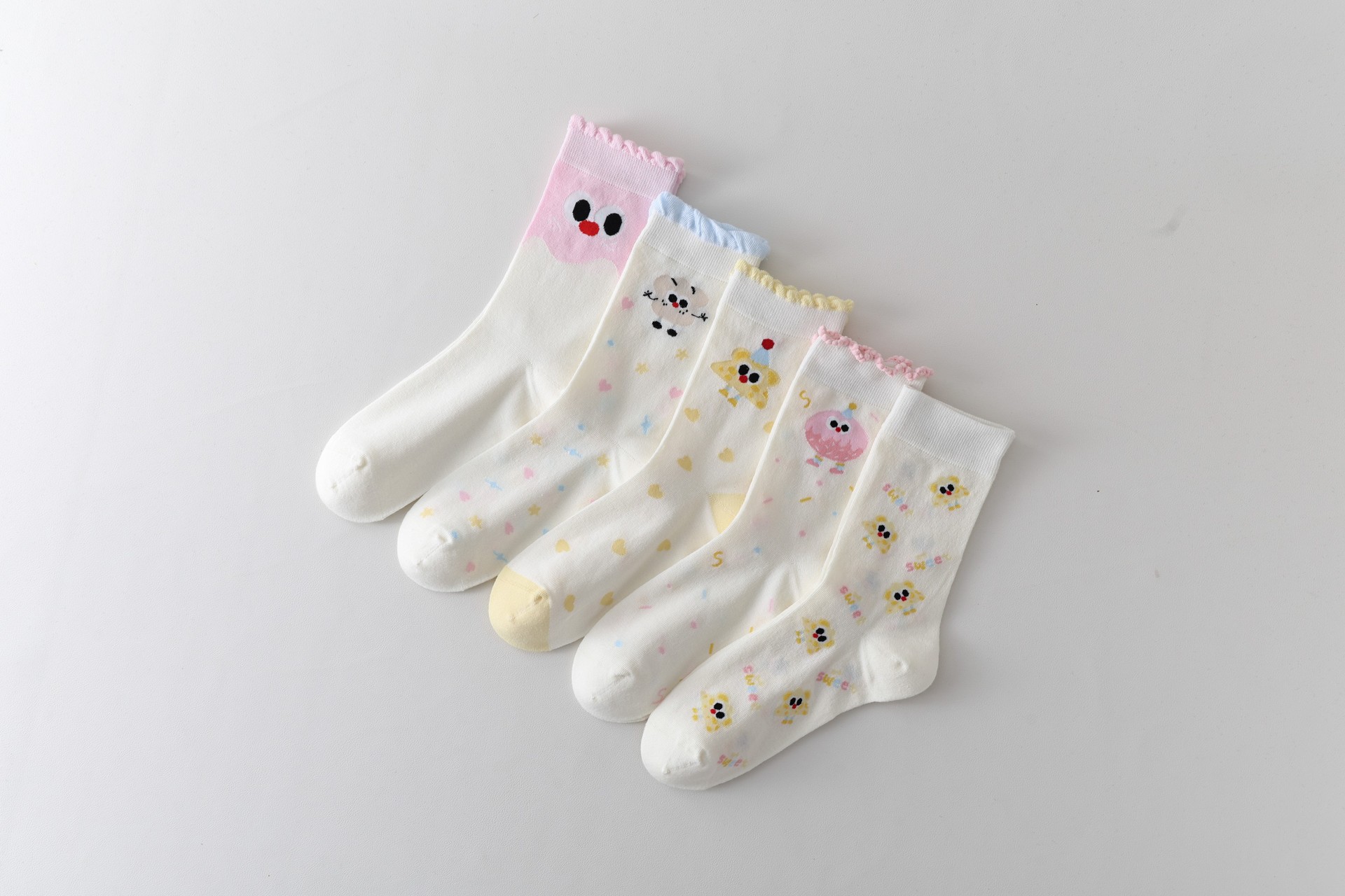 DUDUSNOW 봄 여름 신상 쿠키 만화 귀여운 심플 강아지 큰 눈 패턴 중목 여성용 면 양말 신상품스토어 가기
