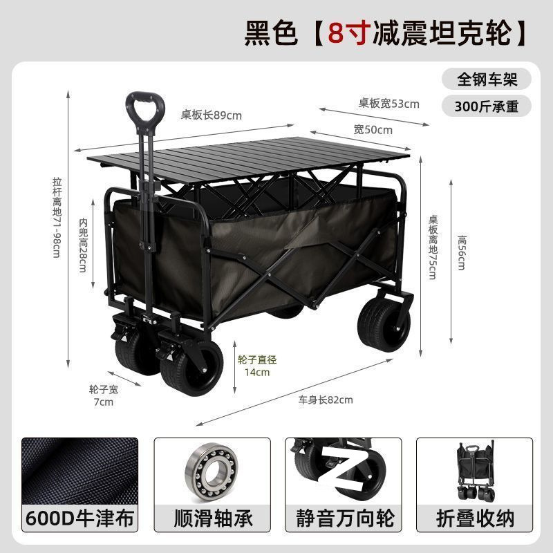 • 블랙 [수출소재 이중 두꺼운 옥스포드 천] - 업그레이드 / 8inch 클래식 오프로드 휠 / 더블 브레이크 + 블랙 테이블