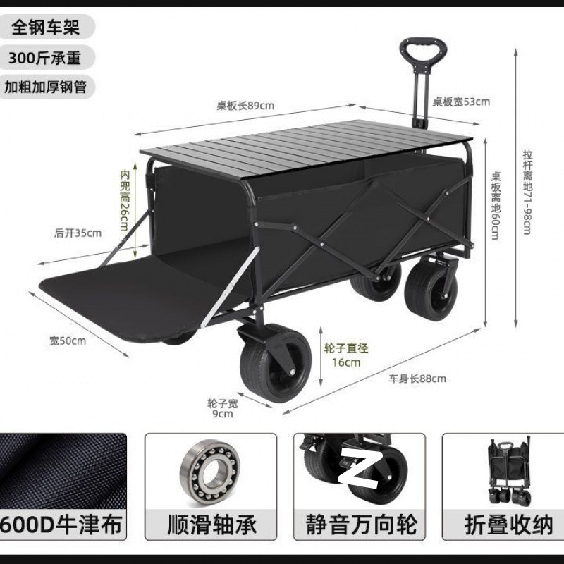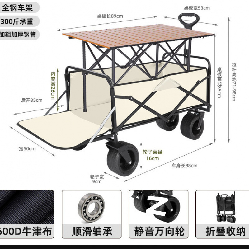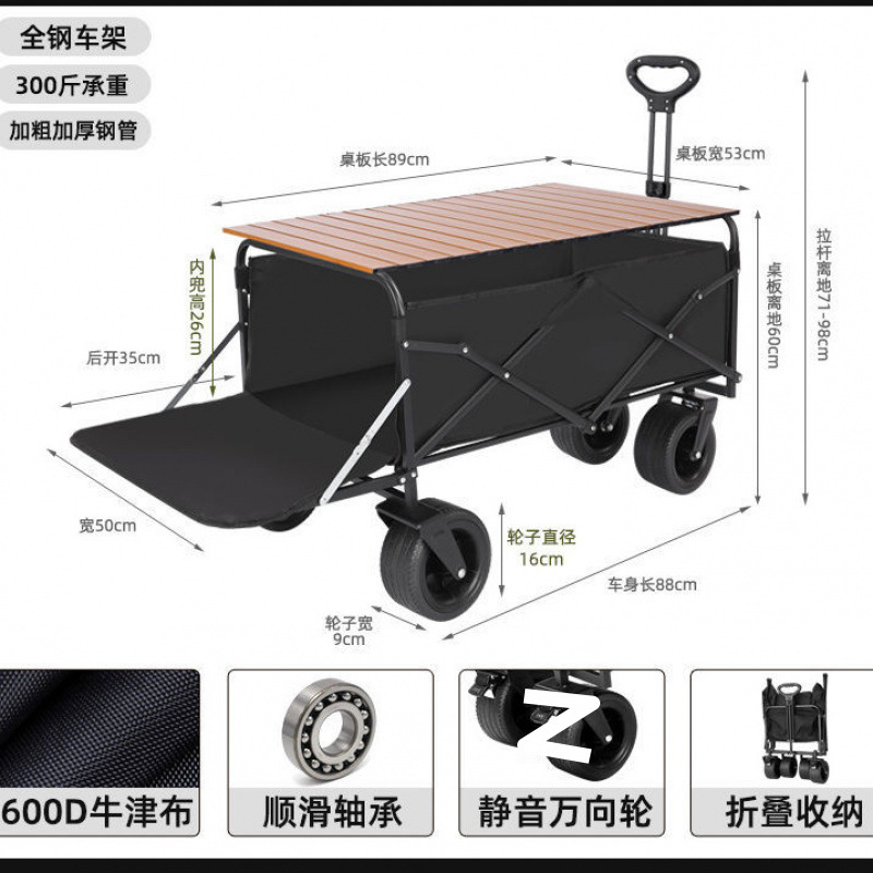 캠핑 카트 접이식 야외 핸드 푸시 피크닉 자동차 휴대용 캠프 트레일러 풀 로드 다기능 캠핑 스톨 카
