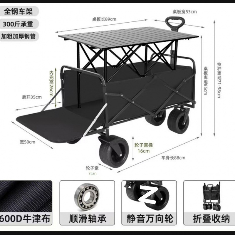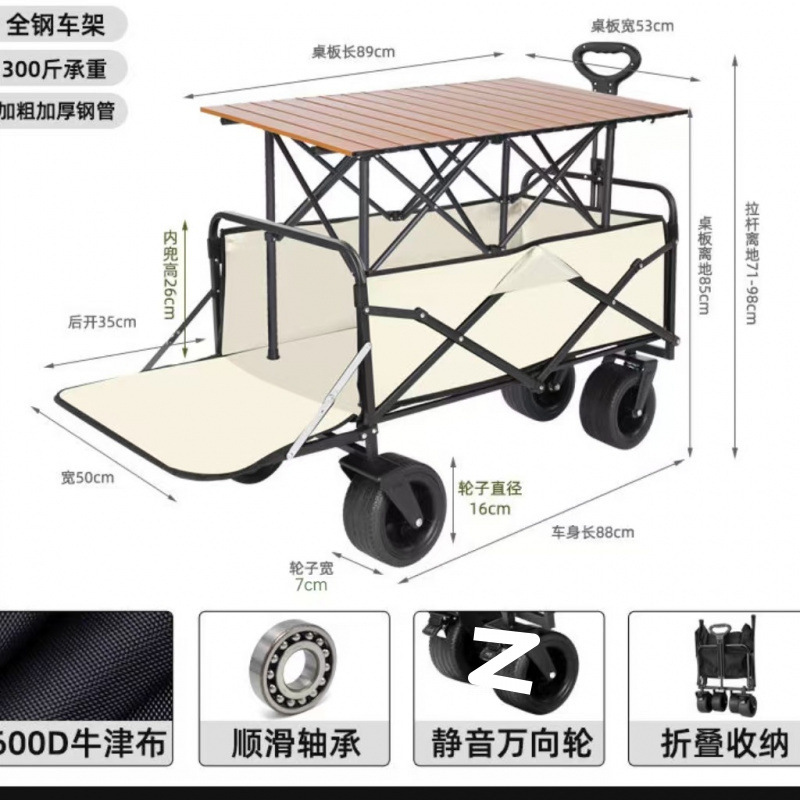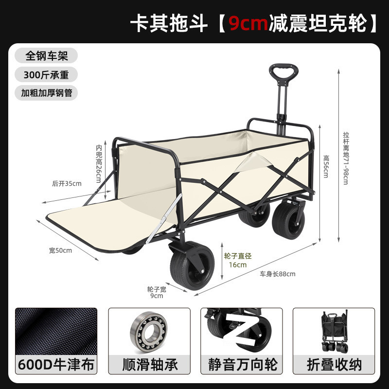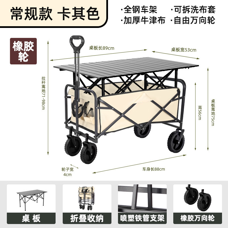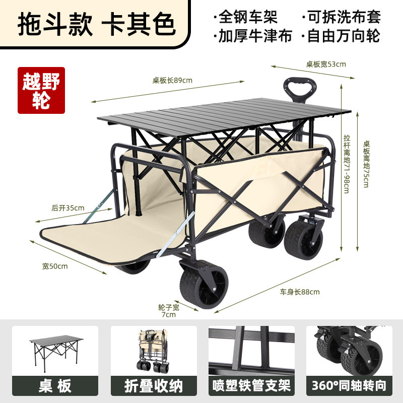 • 카키 [수출소재 이중 두꺼운 옥스포드 천] - 업그레이드 / 8inch 오프로드 휠 / 더블 브레이크 + 강화된 나뭇결 테이블