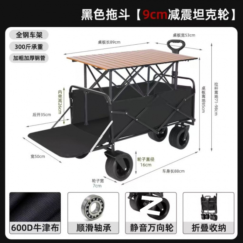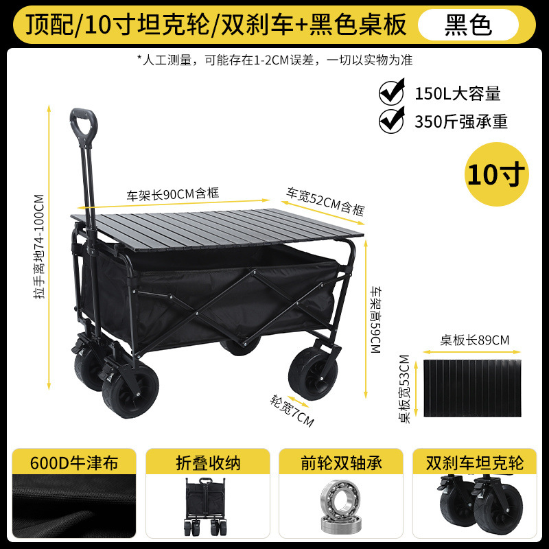 • 블랙 [수출소재 이중 두꺼운 옥스포드 천] - 업그레이드 / 8inch 오프로드 휠 / 더블 브레이크 + 강화된 나뭇결 테이블