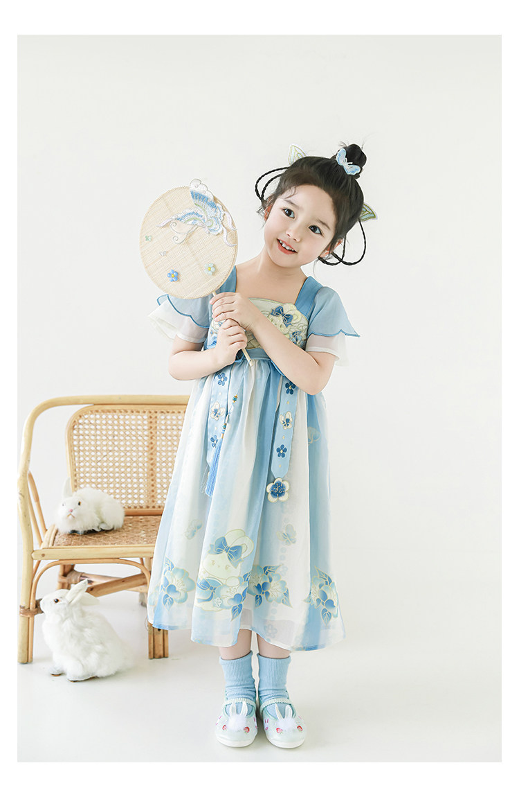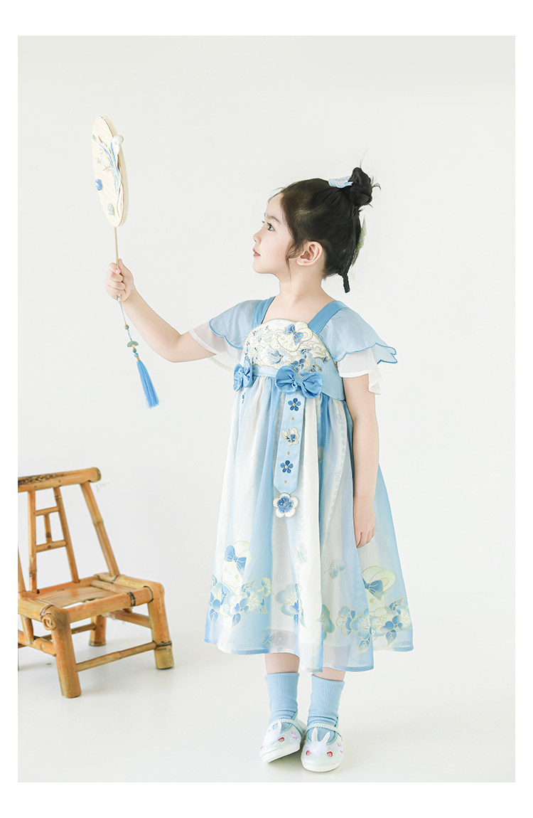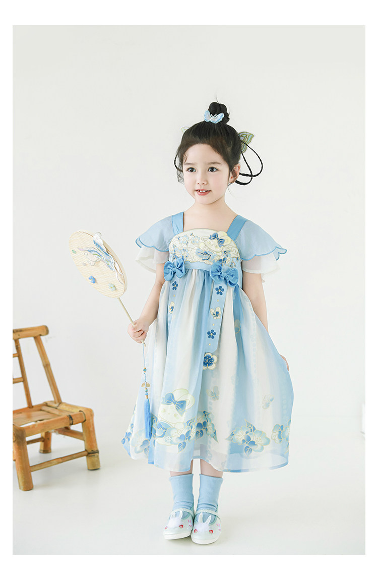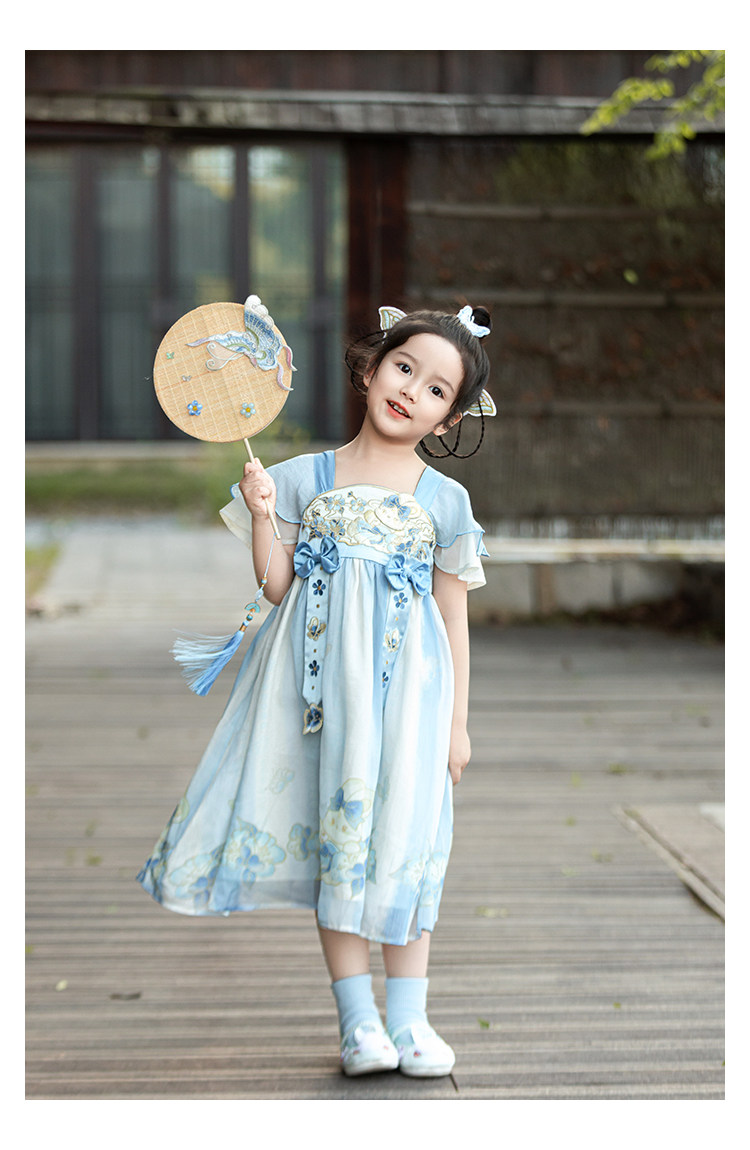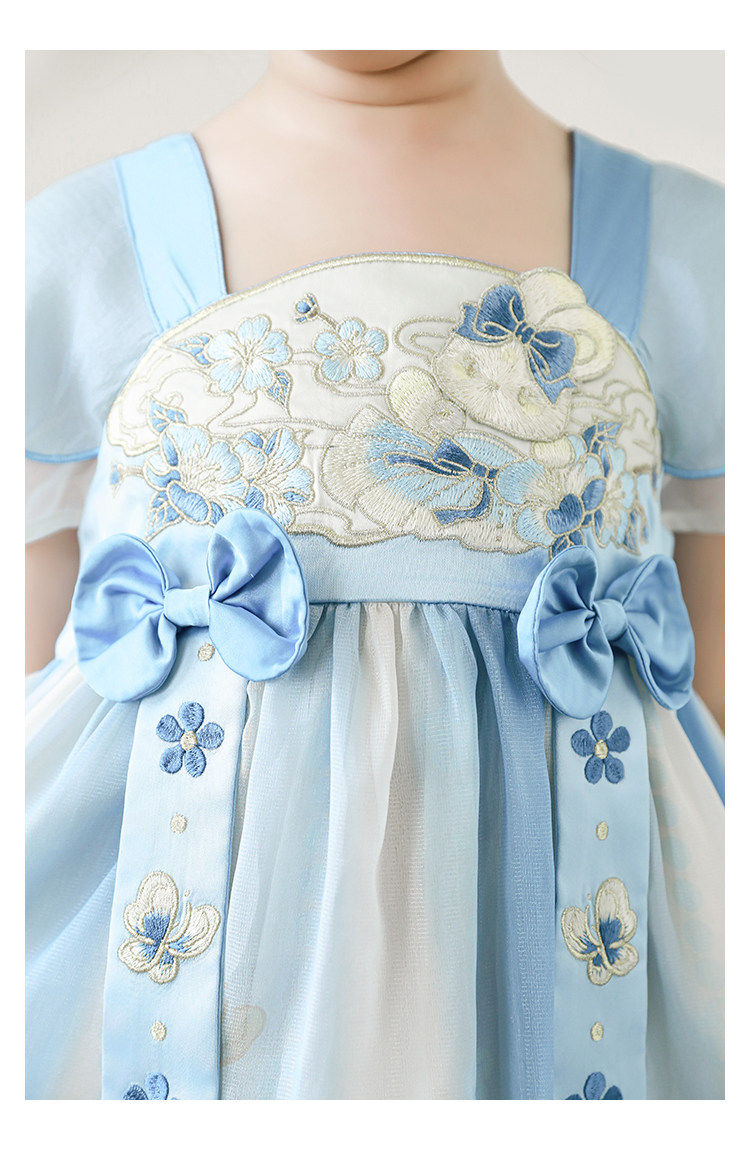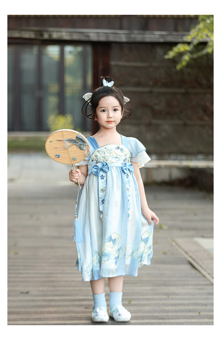 Wulibuyi 소녀 프린트 Hanfu 드레스 여름 가볍고 통기성이 뛰어난 중공업 자수 꽃잎 반팔 중국 스타일 드레스스토어 가기