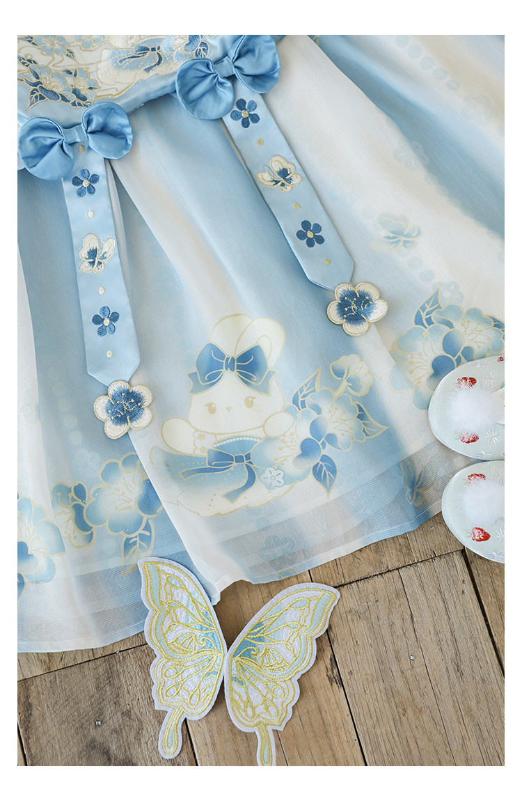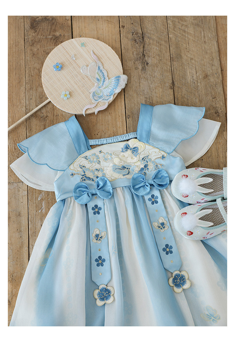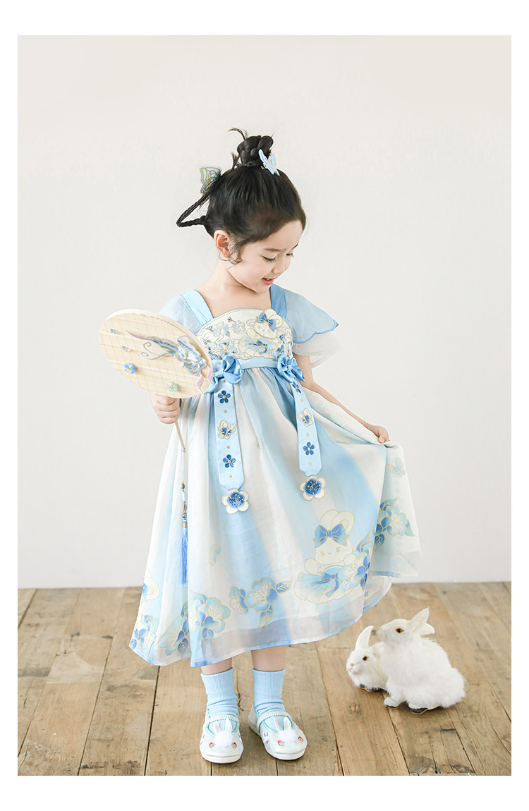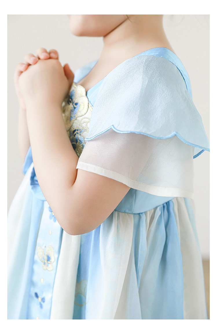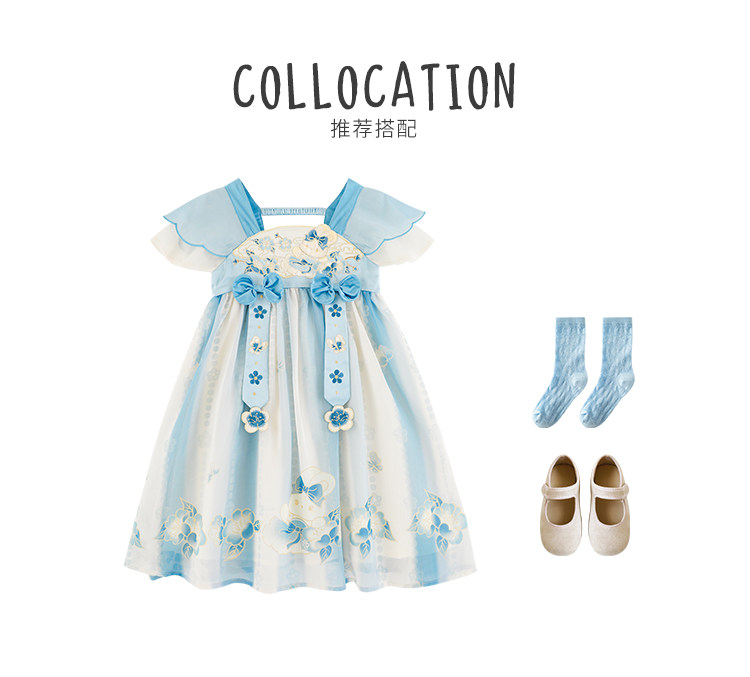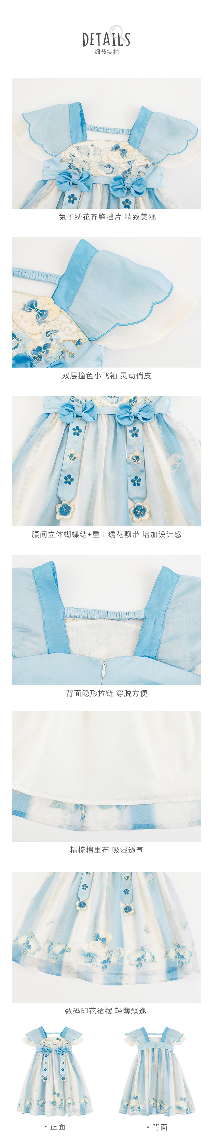 Wulibuyi 소녀 프린트 Hanfu 드레스 여름 가볍고 통기성이 뛰어난 중공업 자수 꽃잎 반팔 중국 스타일 드레스스토어 가기