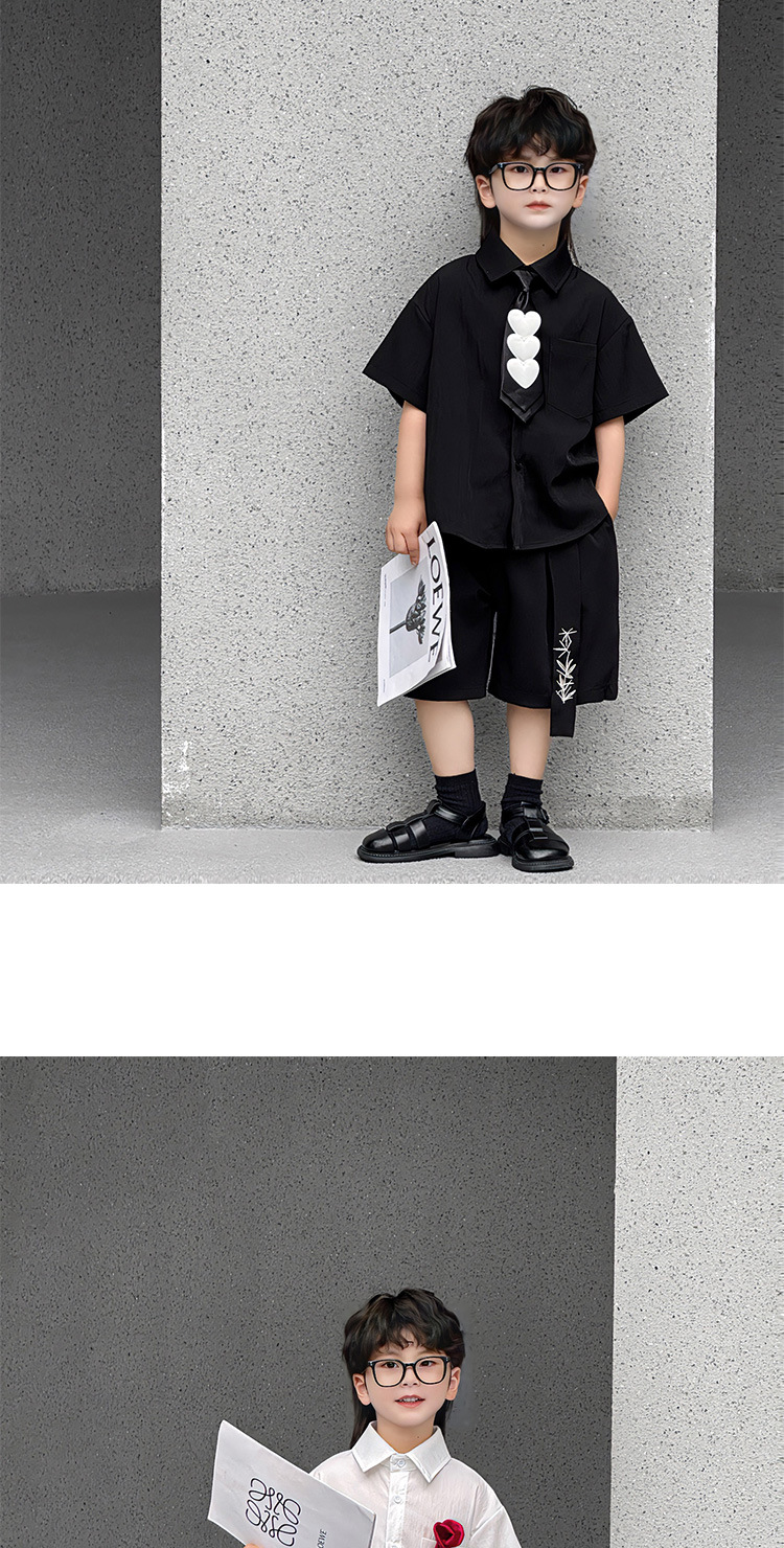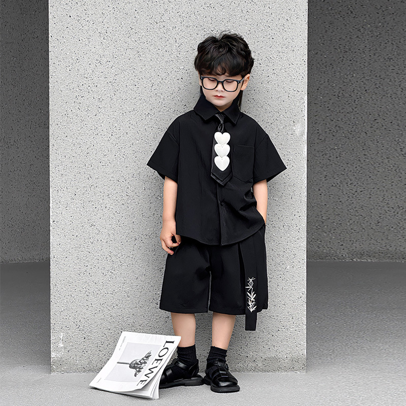 • 블랙 셔츠 + 쓰리 하트 타이 + 블랙 자수 리본 반바지