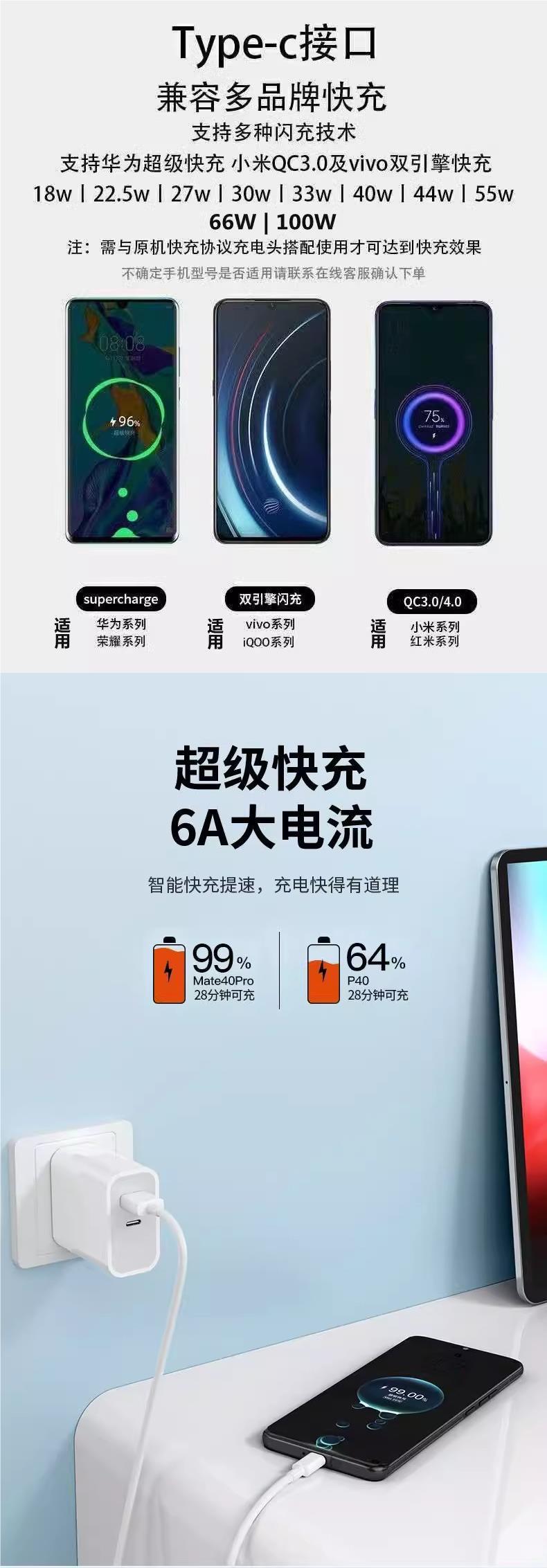 충전 라인 유형-c 데이터 라인 빠른 충전 6A 화웨이 생체 기장 oppo 충전기 라인 안드로이드