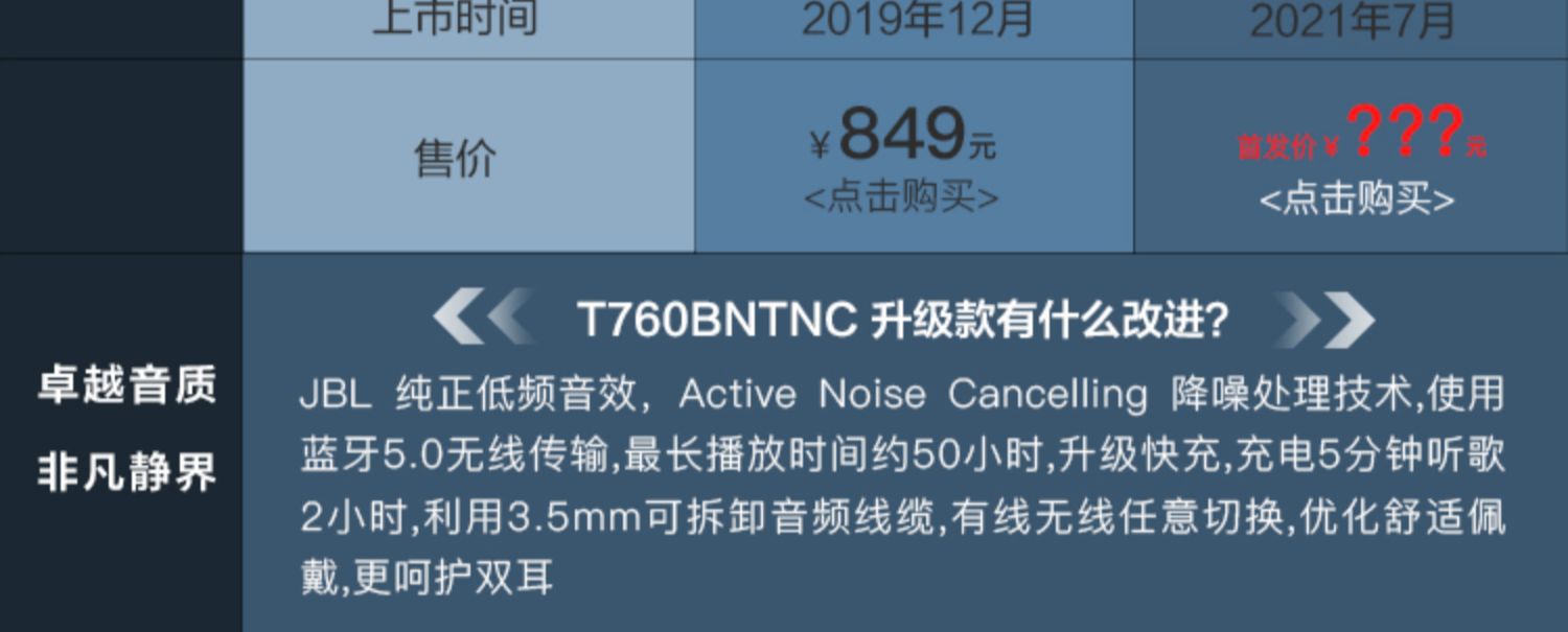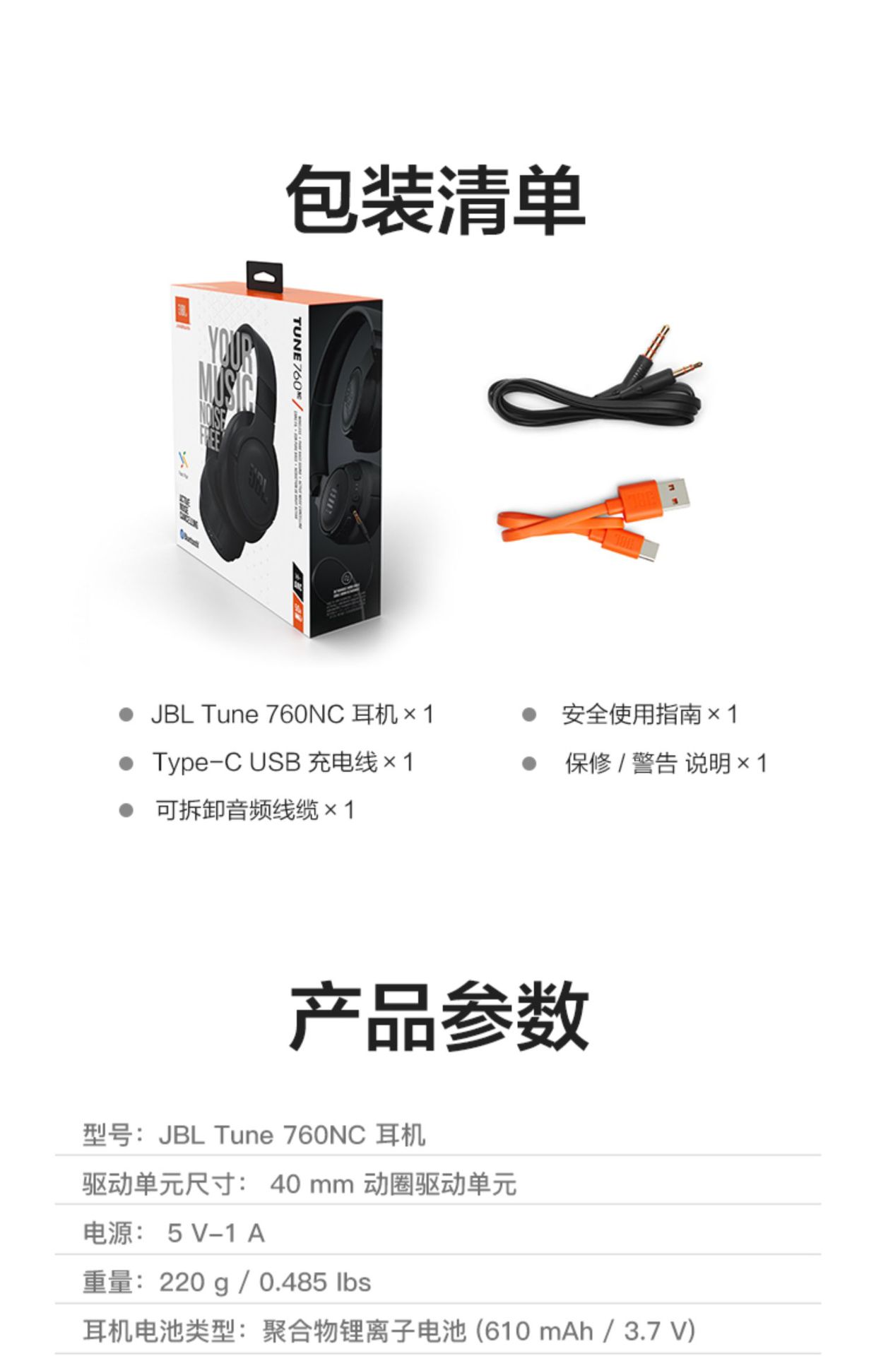 JBL TUNE760NC 블루투스 헤드셋 활성 소음 감소 음악 헤드셋 모니터 모든 포함 귀스토어 가기
