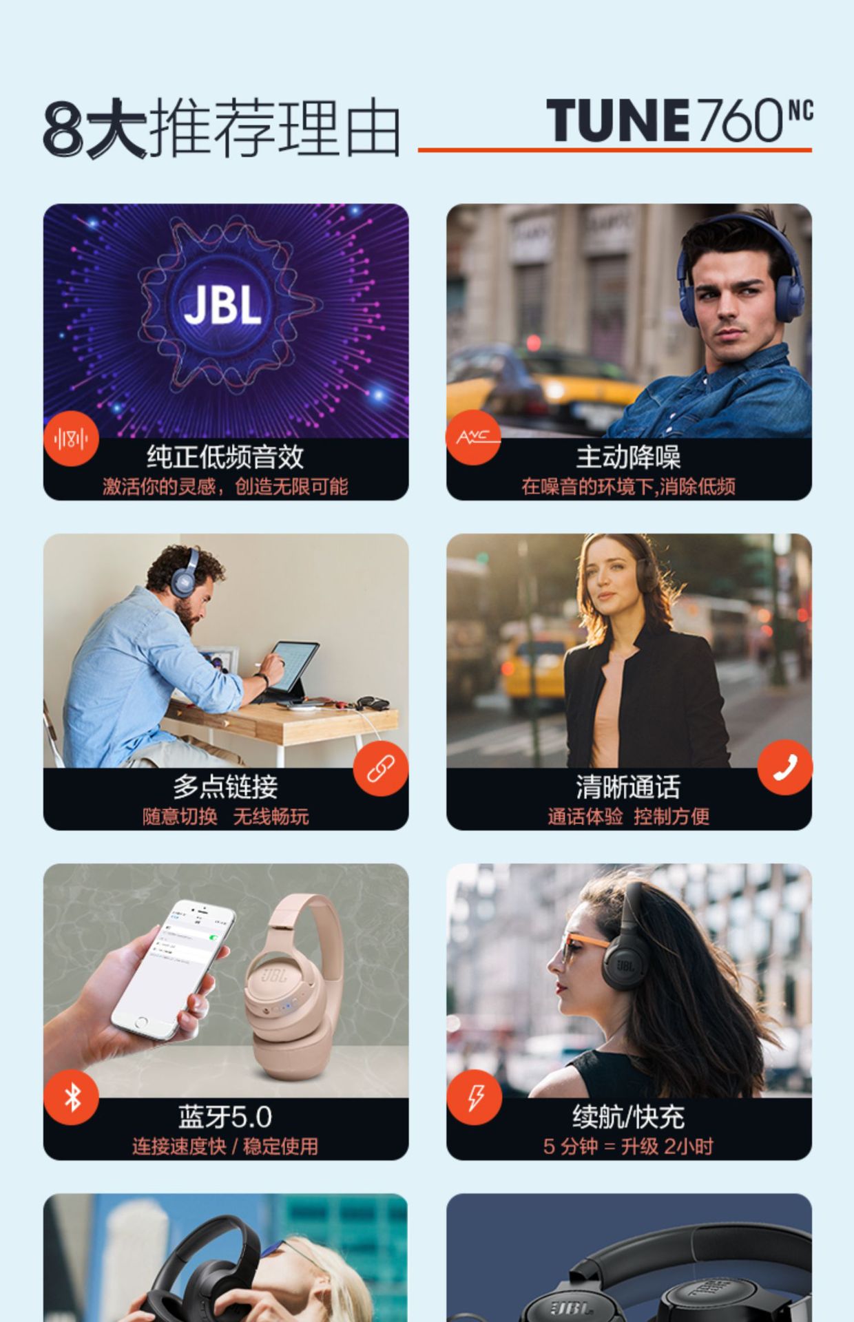 JBL TUNE760NC 블루투스 헤드셋 활성 소음 감소 음악 헤드셋 모니터 모든 포함 귀