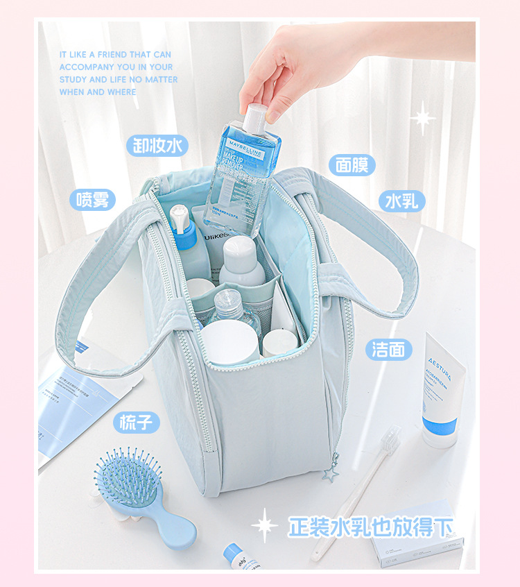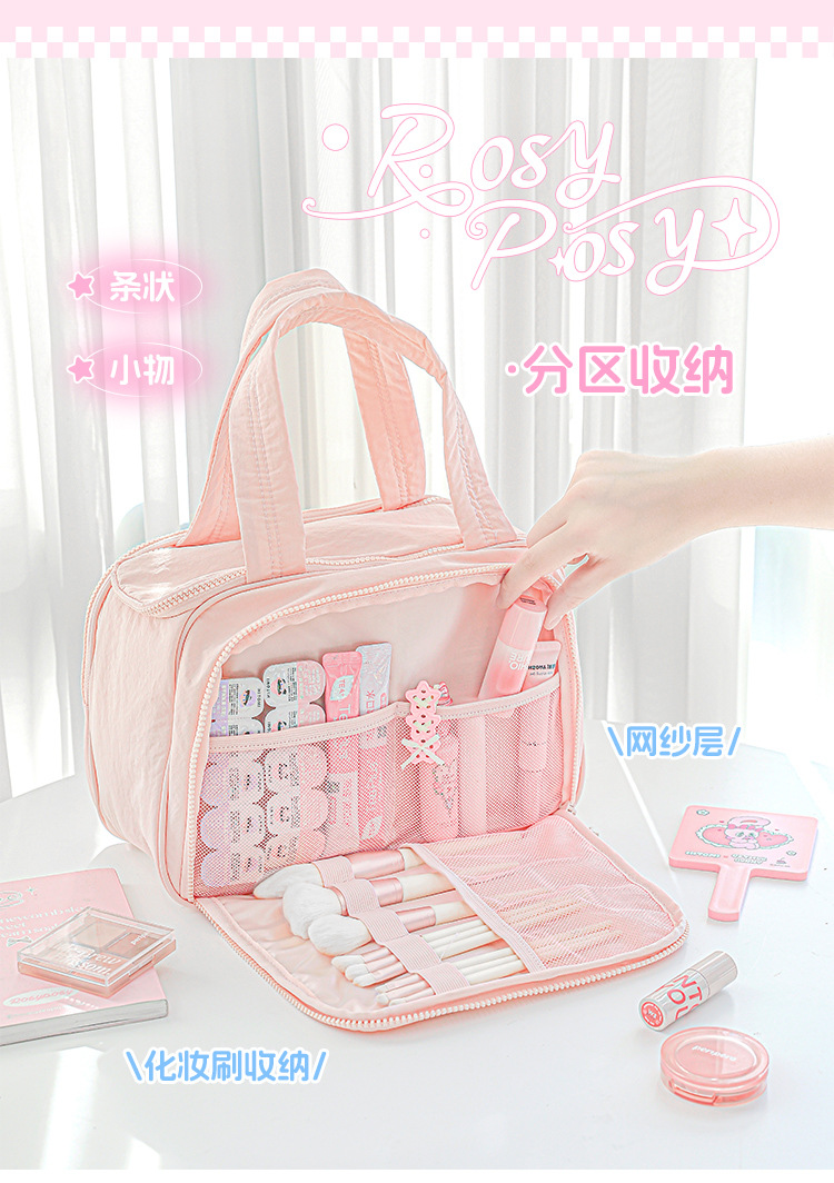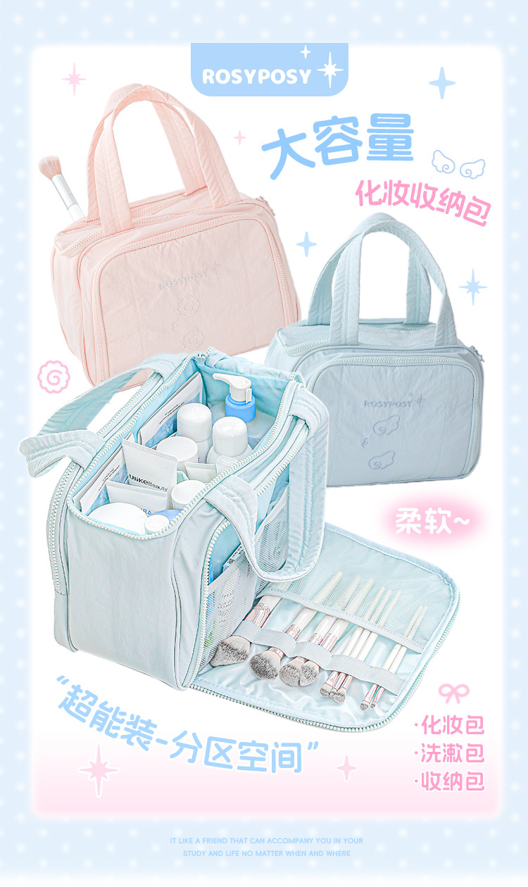 RosyPosy 소프트 세트 매우 부드러운 대용량 화장품 가방 다기능 여행 세면 용품 가방 파티션 보관 가방