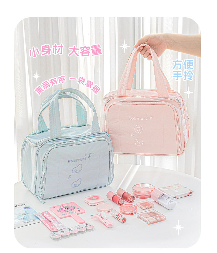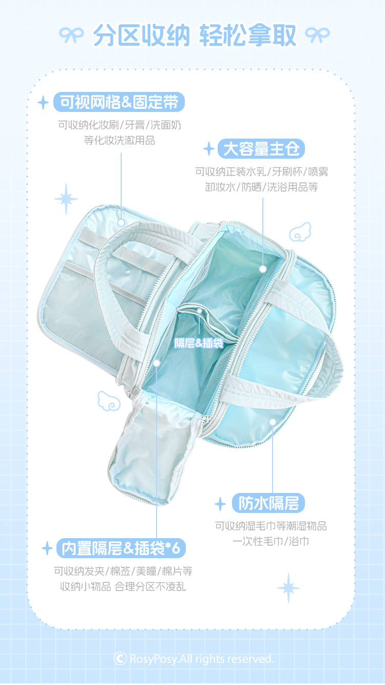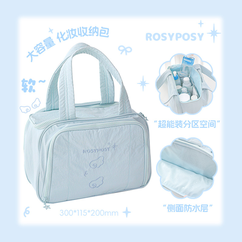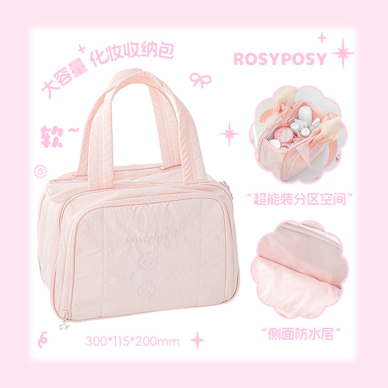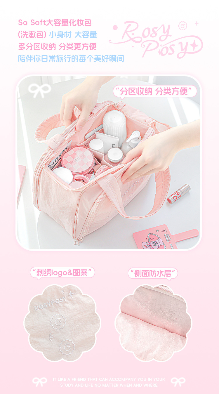 RosyPosy 소프트 세트 매우 부드러운 대용량 화장품 가방 다기능 여행 세면 용품 가방 파티션 보관 가방스토어 가기