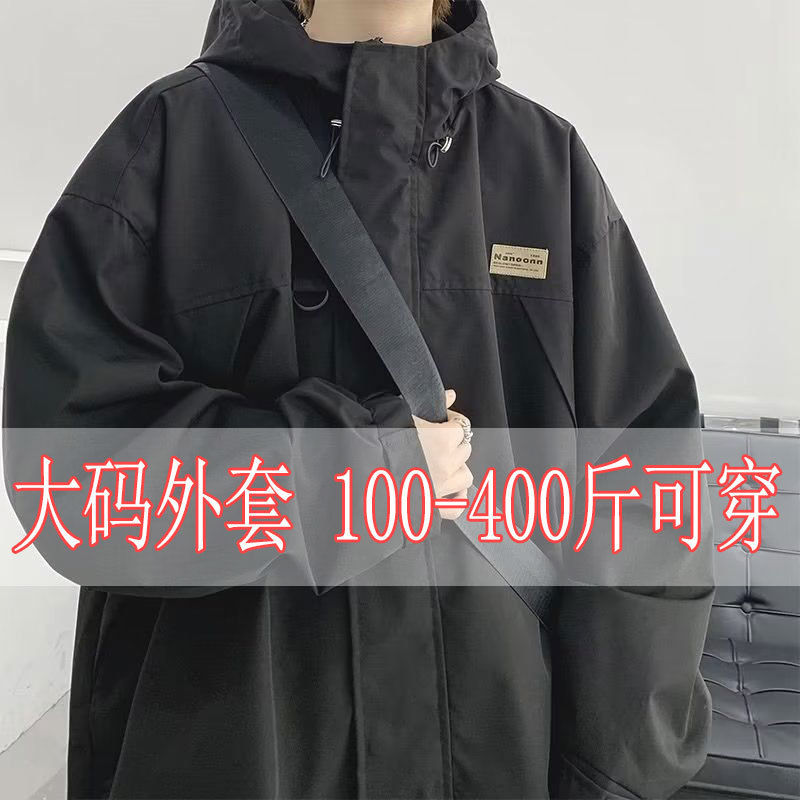 200kg 플러스 사이즈 남성 자켓 후드 플러스 사이즈 뚱뚱한 남자 옷 봄과 가을 느슨한 슬리밍 잘 생긴스토어 가기