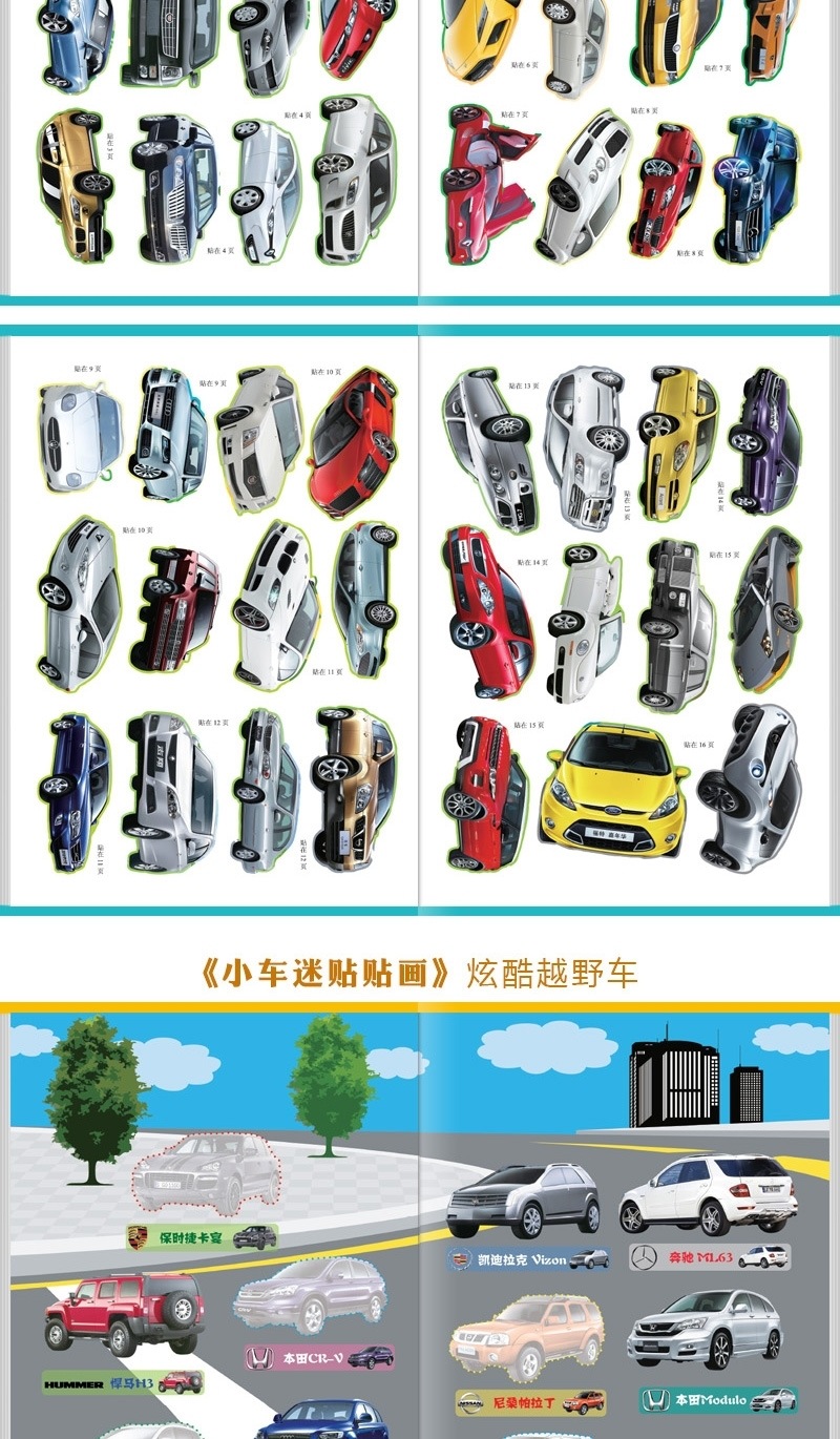 • 작은 자동차 팬을 위한 재미있는 파노라마 스티커, 총 6권