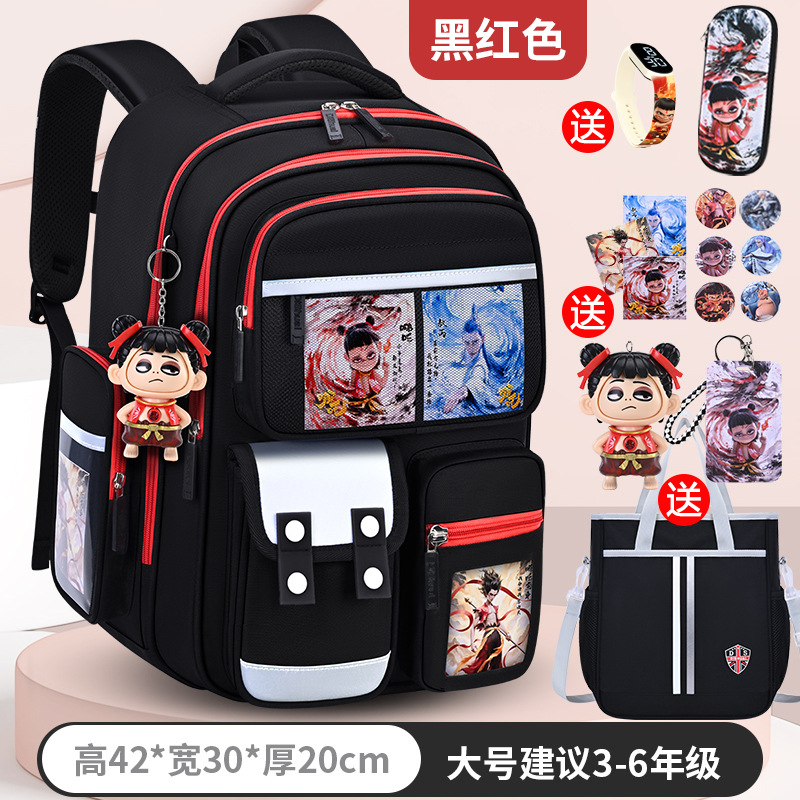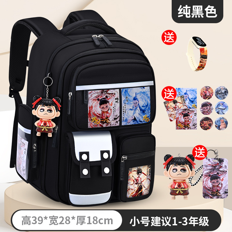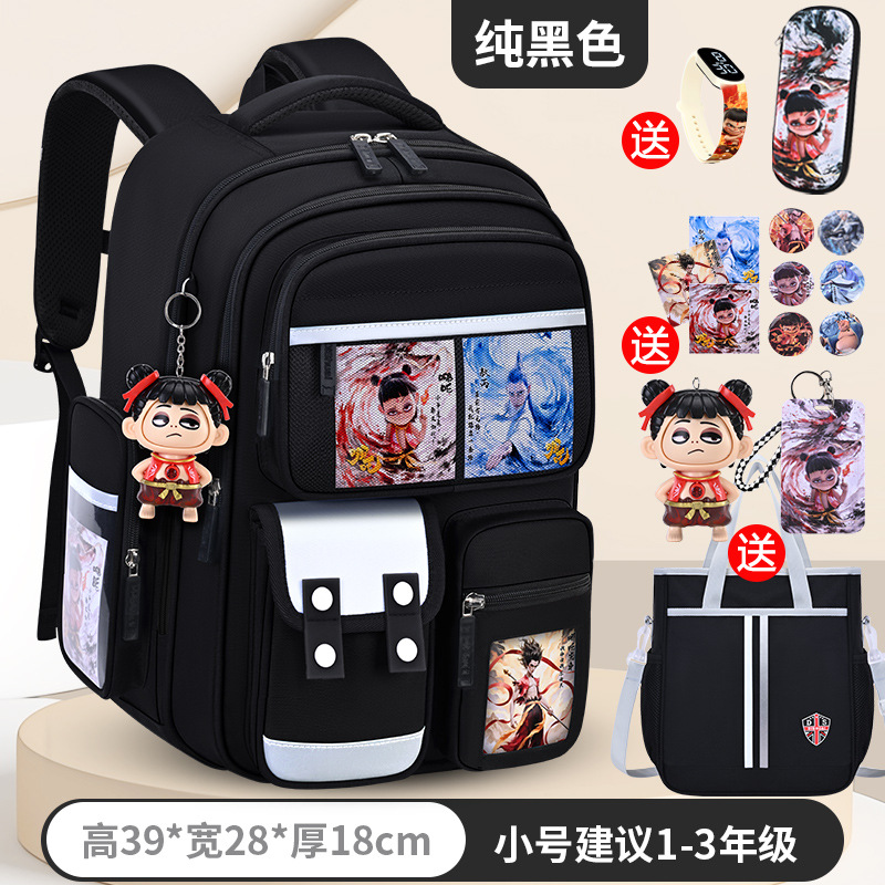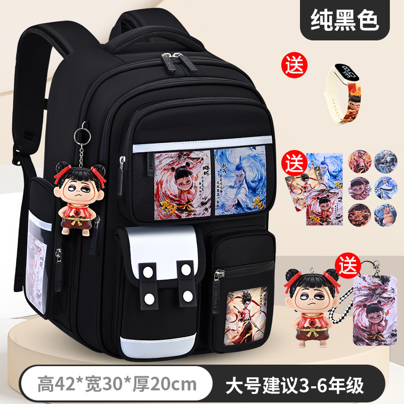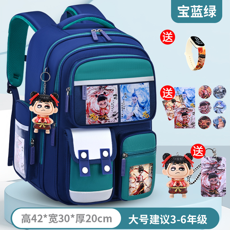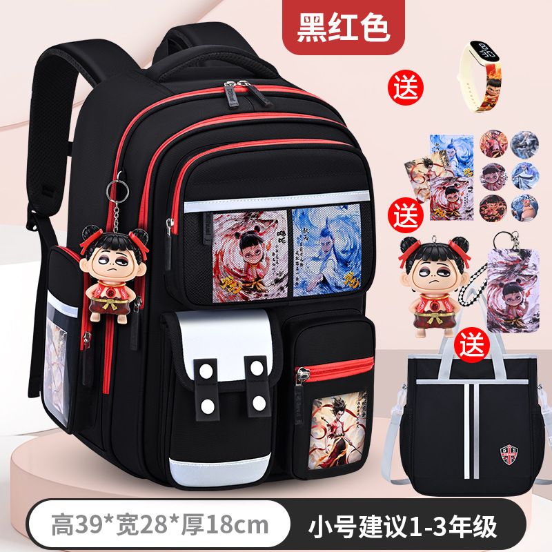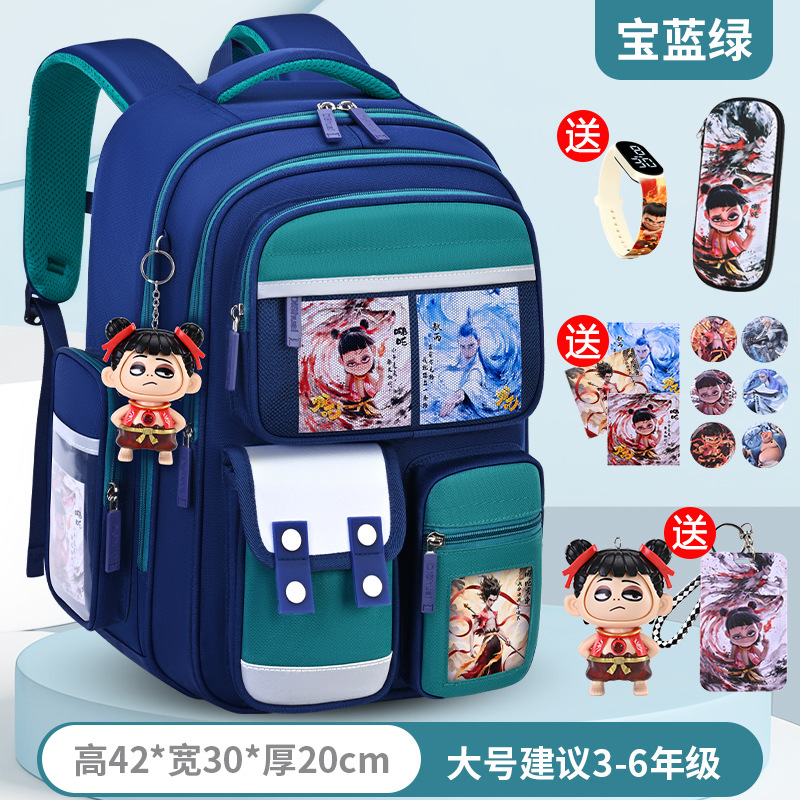 1, 2, 3~6학년 남학생과 여학생을 위한 새로운 Nezha 책가방, 척추 보호 및 부담 감소, 대용량스토어 가기