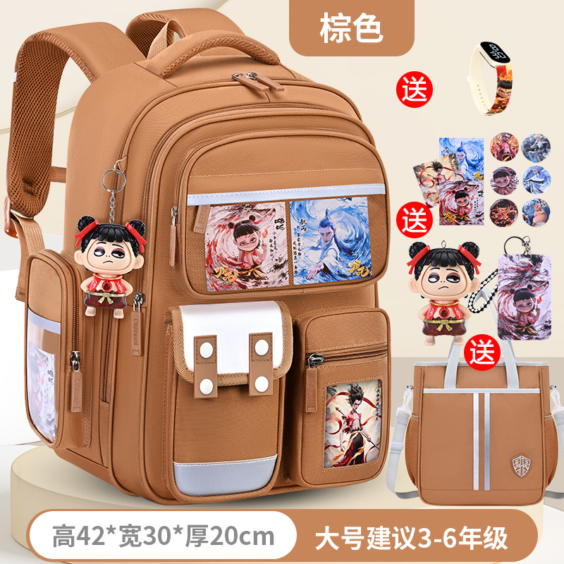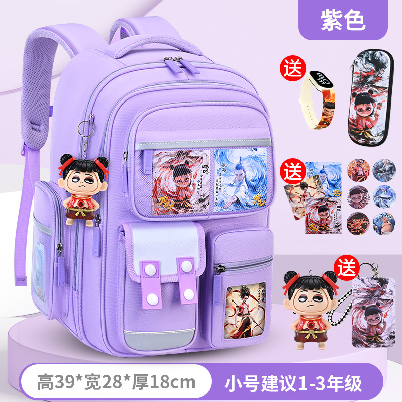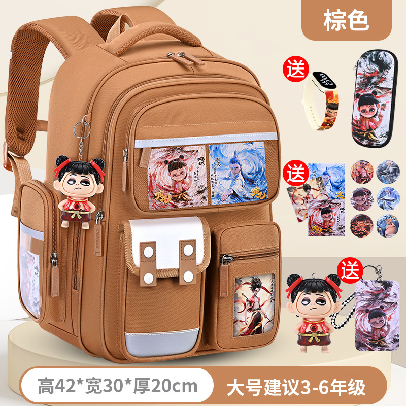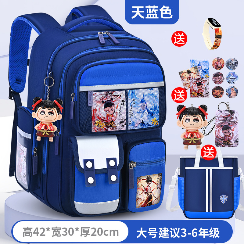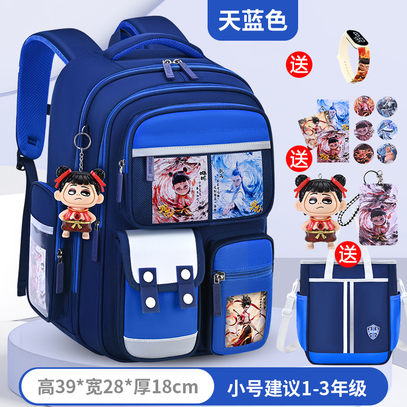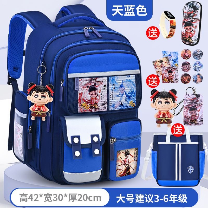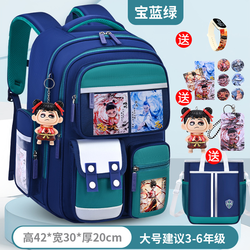 1, 2, 3~6학년 남학생과 여학생을 위한 새로운 Nezha 책가방, 척추 보호 및 부담 감소, 대용량스토어 가기