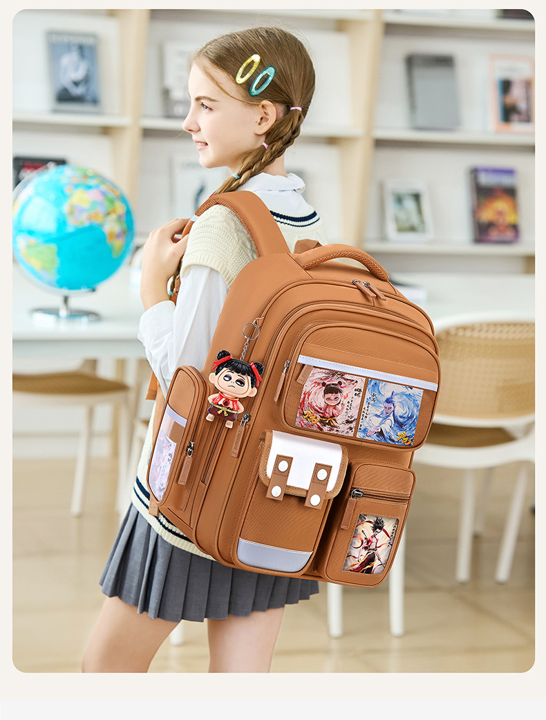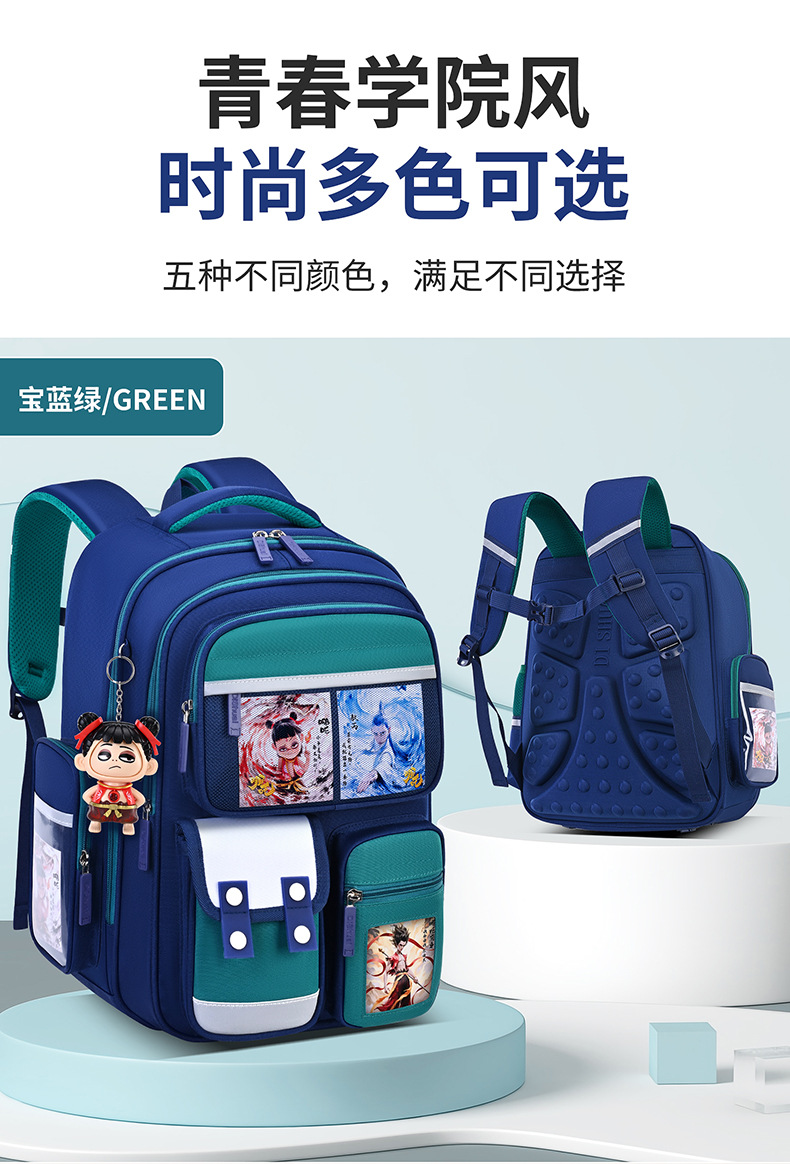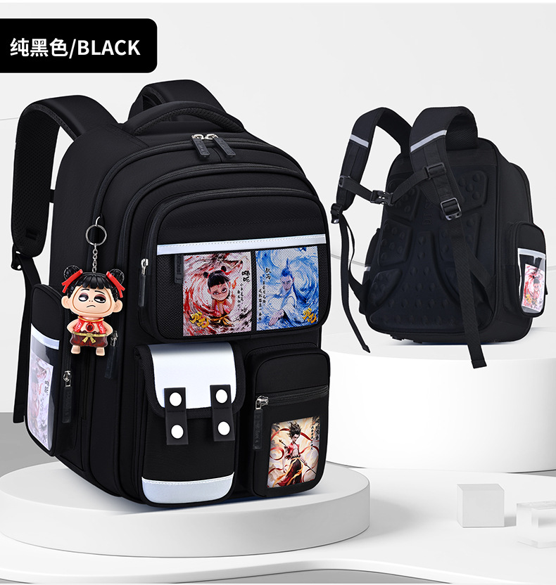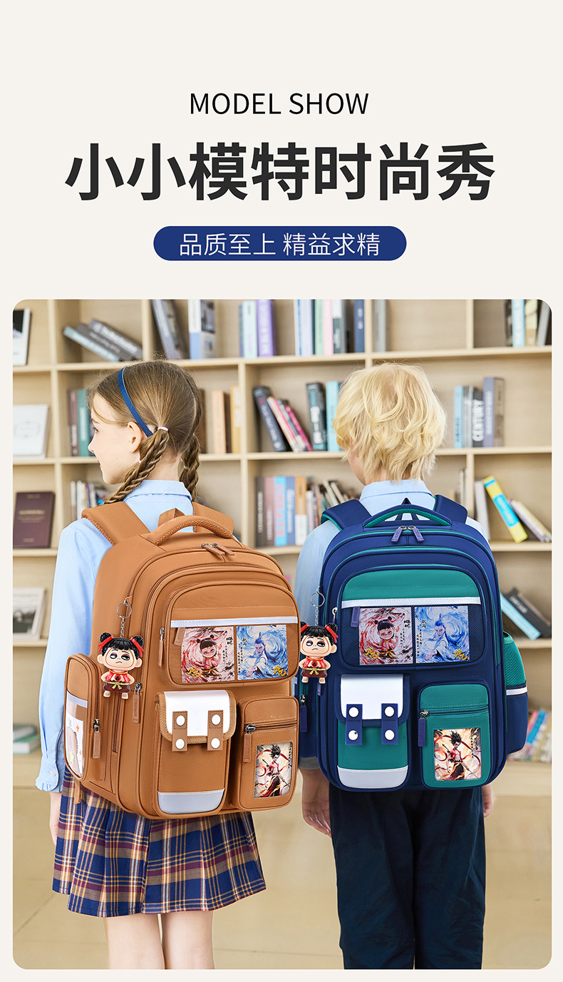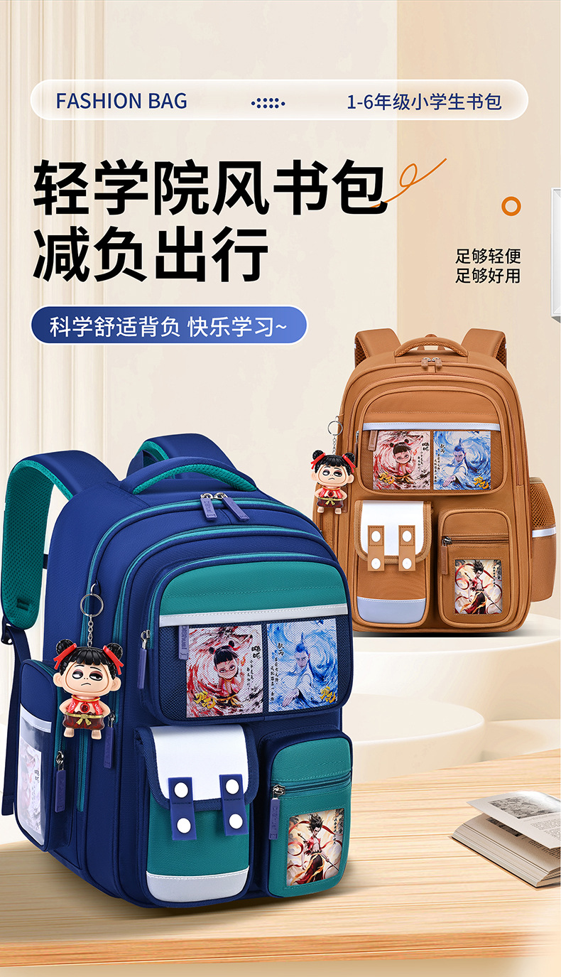 1, 2, 3~6학년 남학생과 여학생을 위한 새로운 Nezha 책가방, 척추 보호 및 부담 감소, 대용량스토어 가기