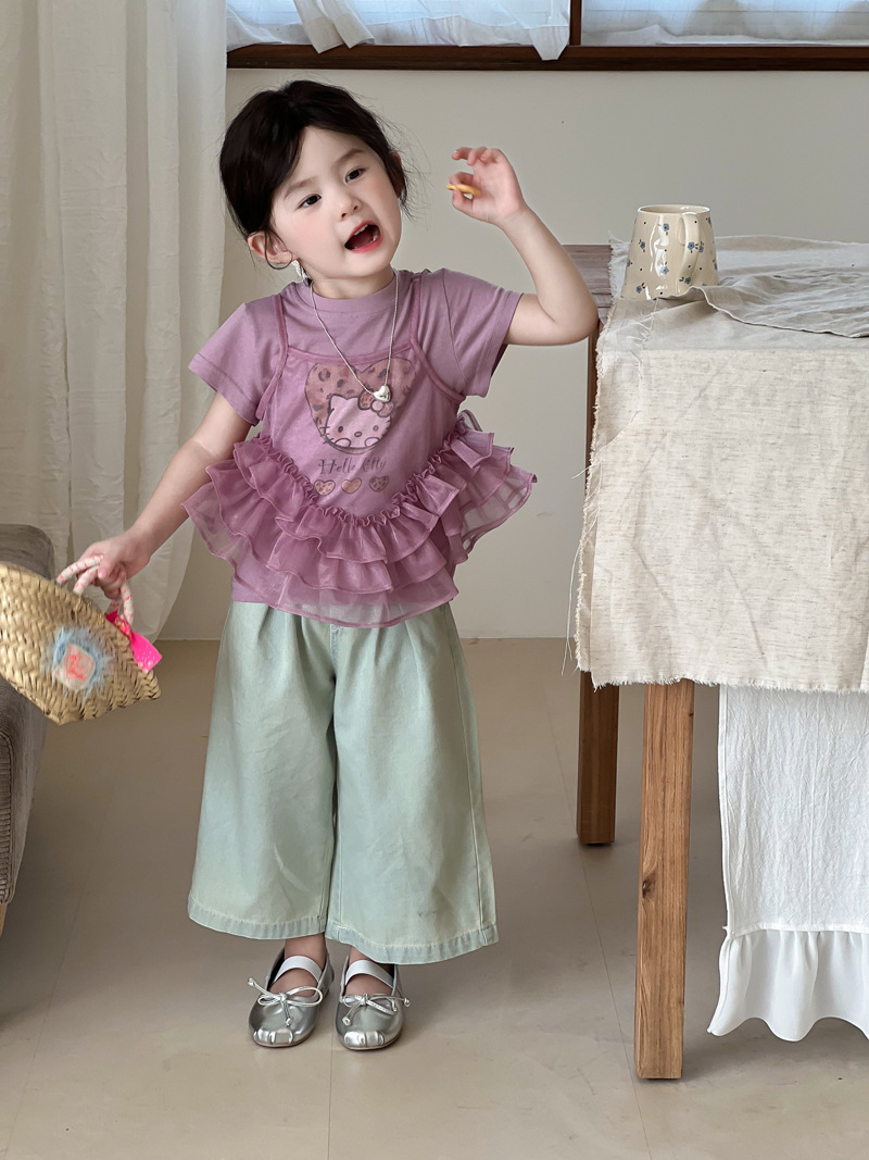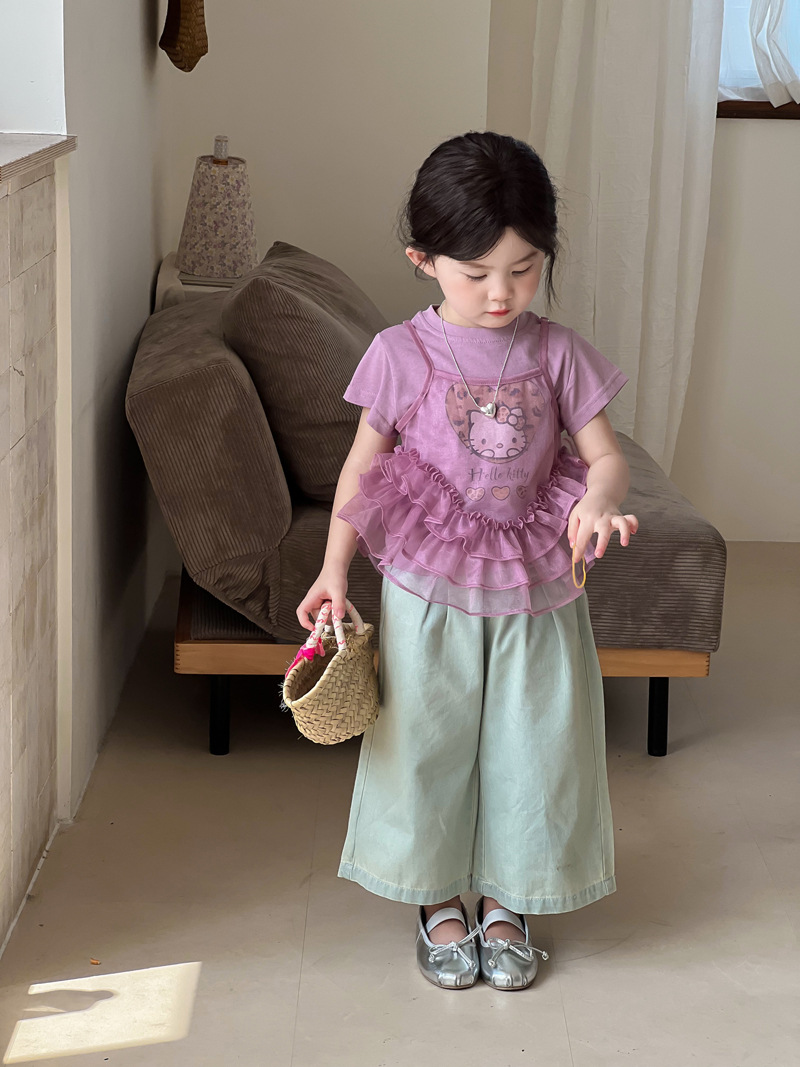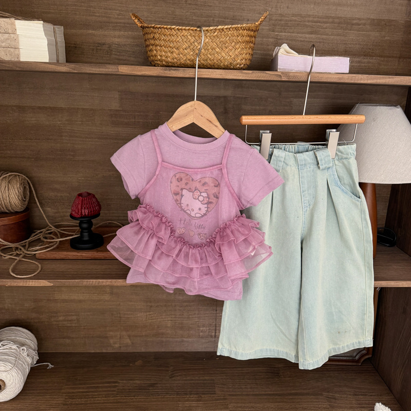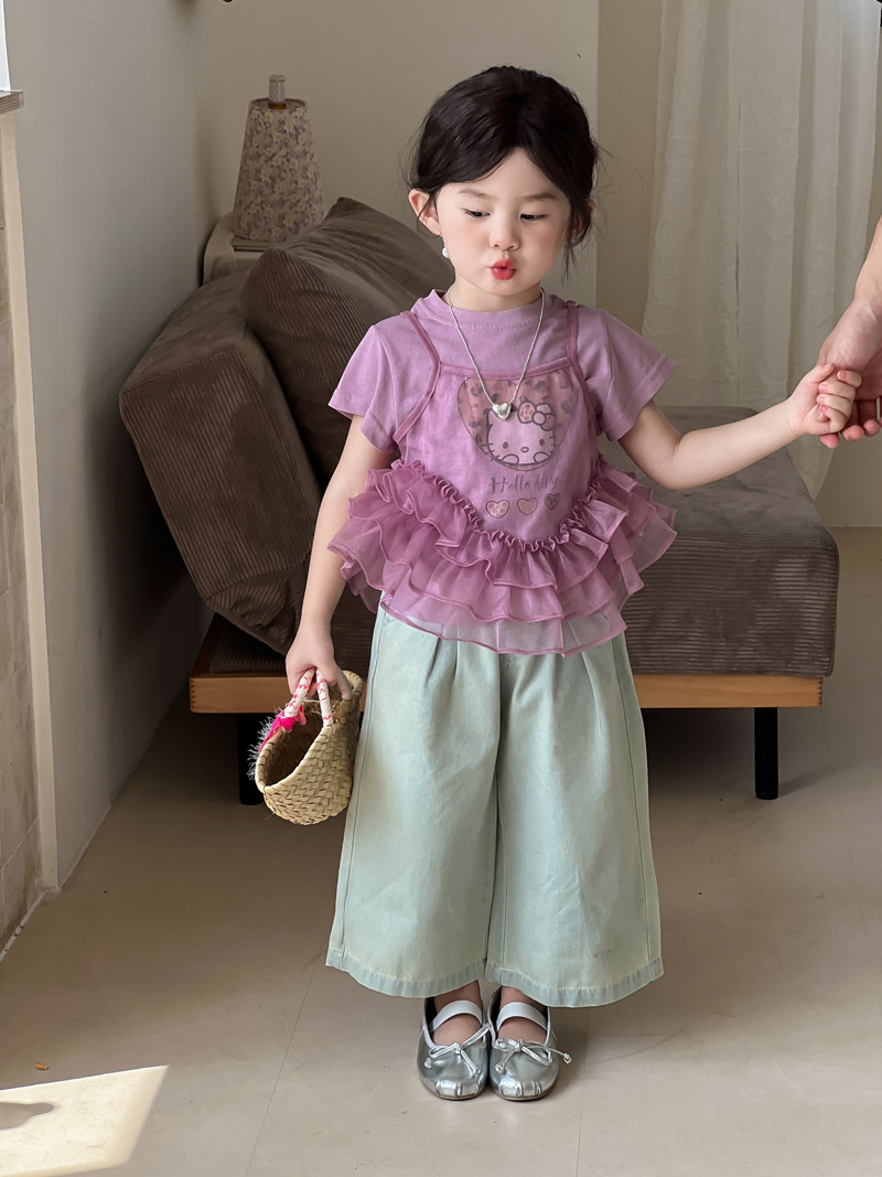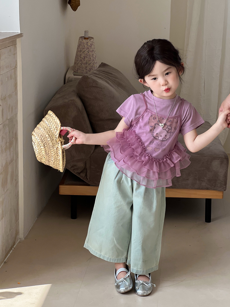 한국 여자 티셔츠 세트 2025 여름 신인상 KT 반팔 T 어린이 메쉬 슬링 탑 베이비 T