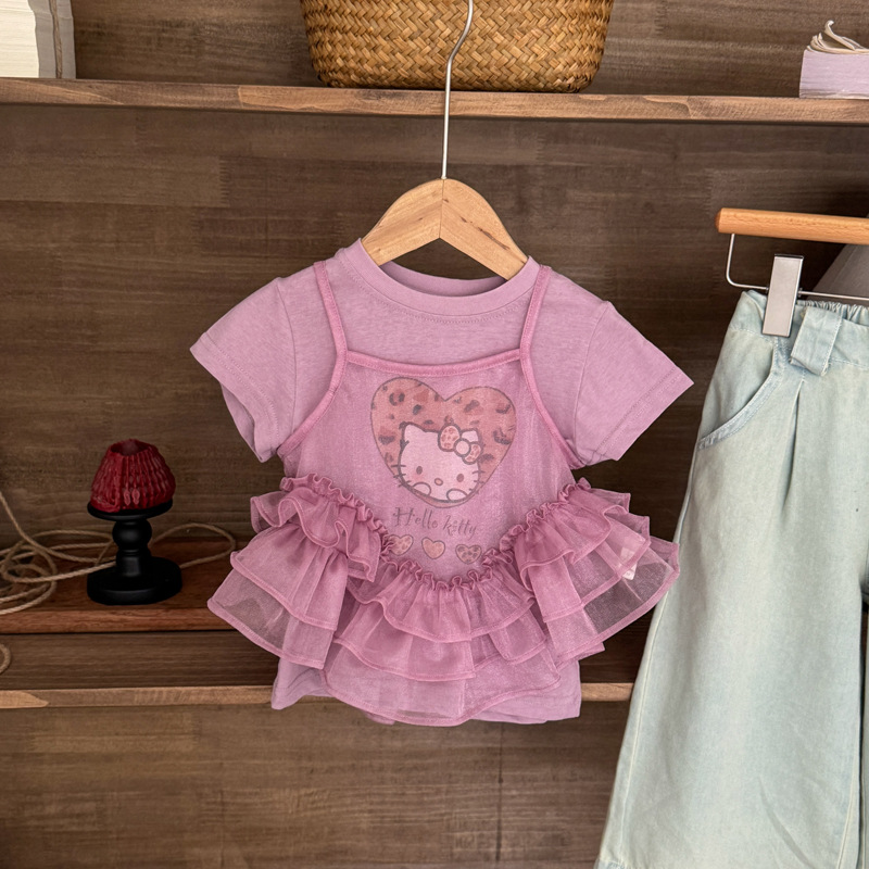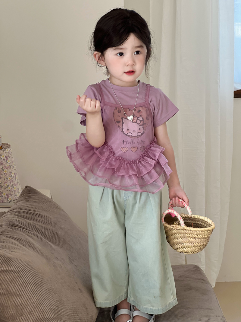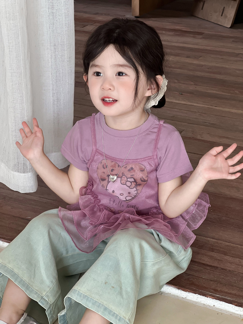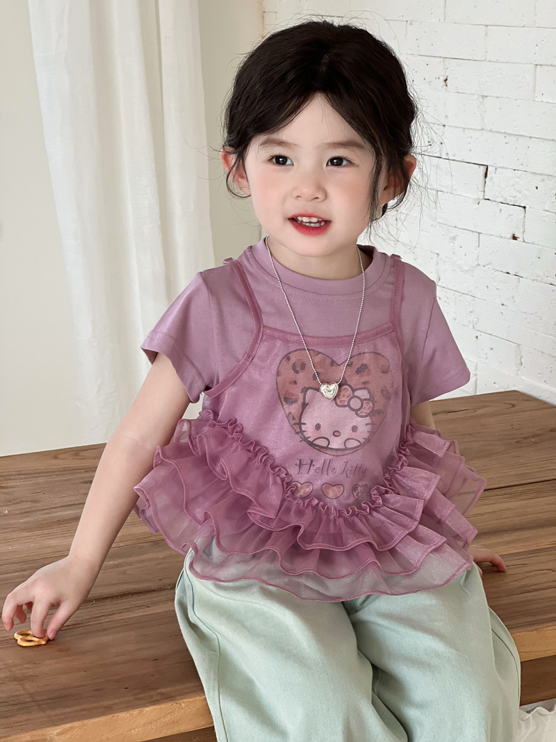 한국 여자 티셔츠 세트 2025 여름 신인상 KT 반팔 T 어린이 메쉬 슬링 탑 베이비 T스토어 가기