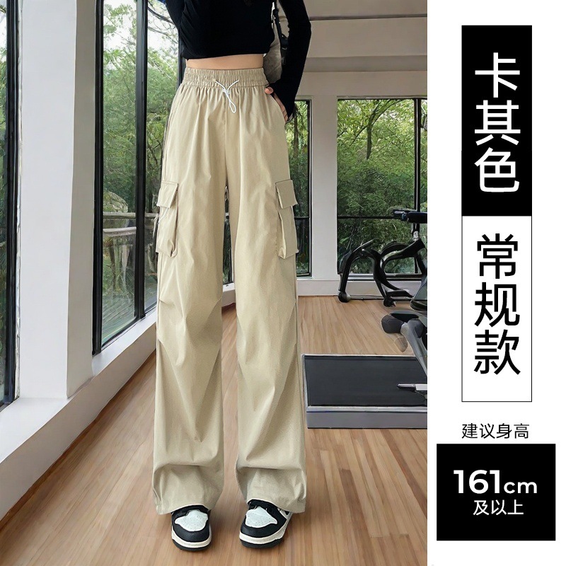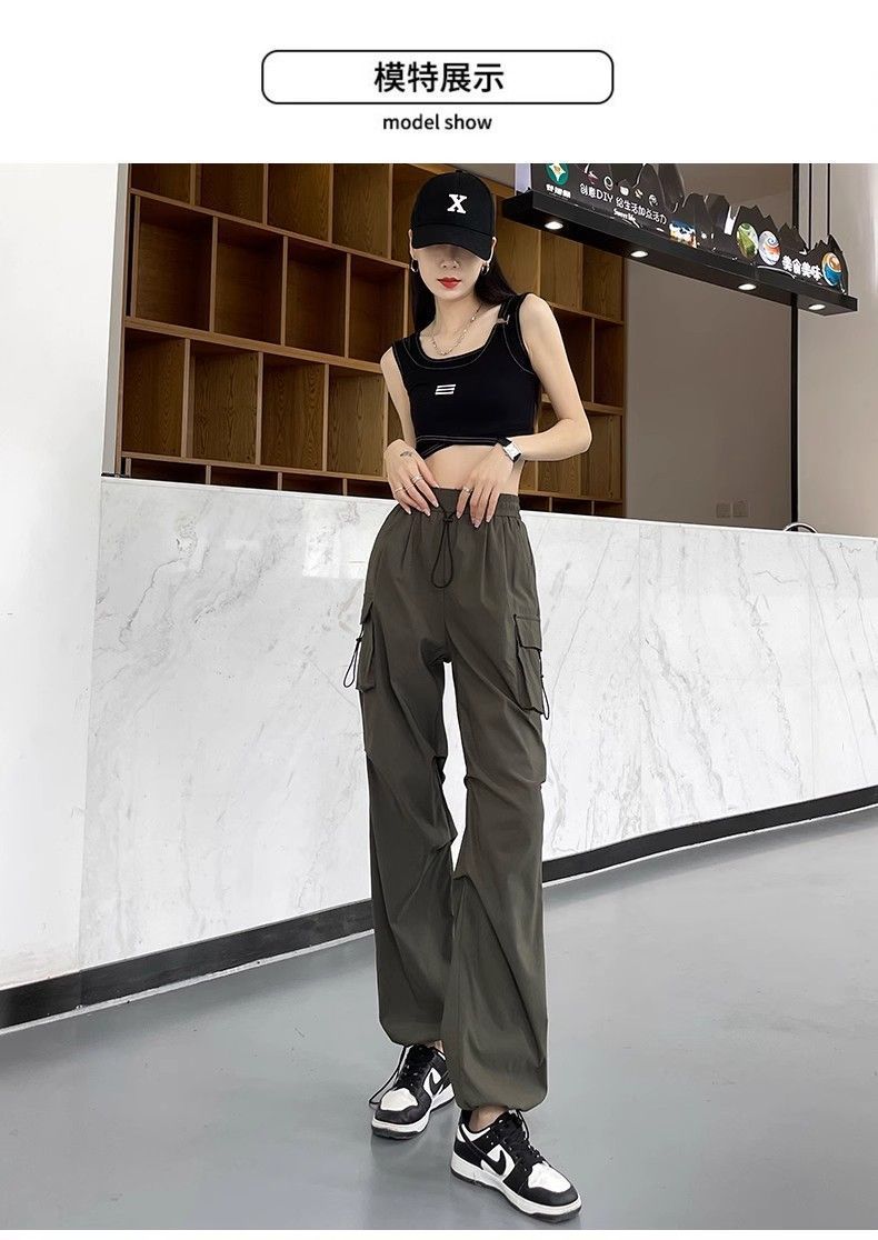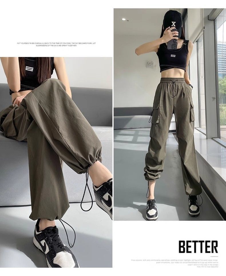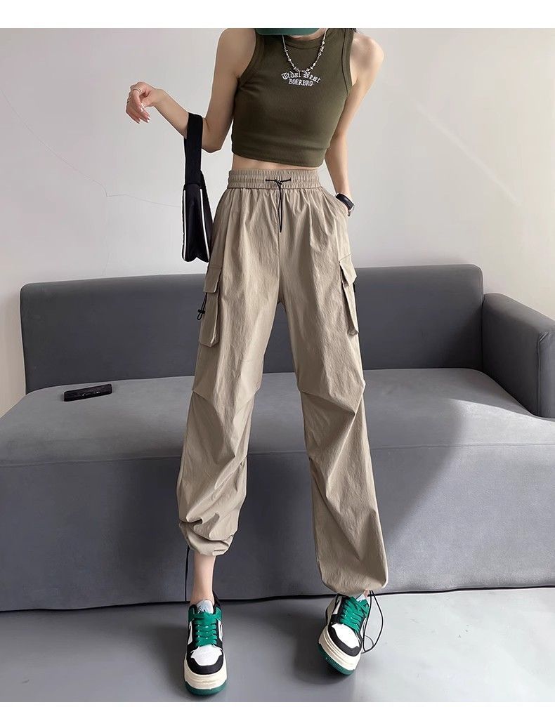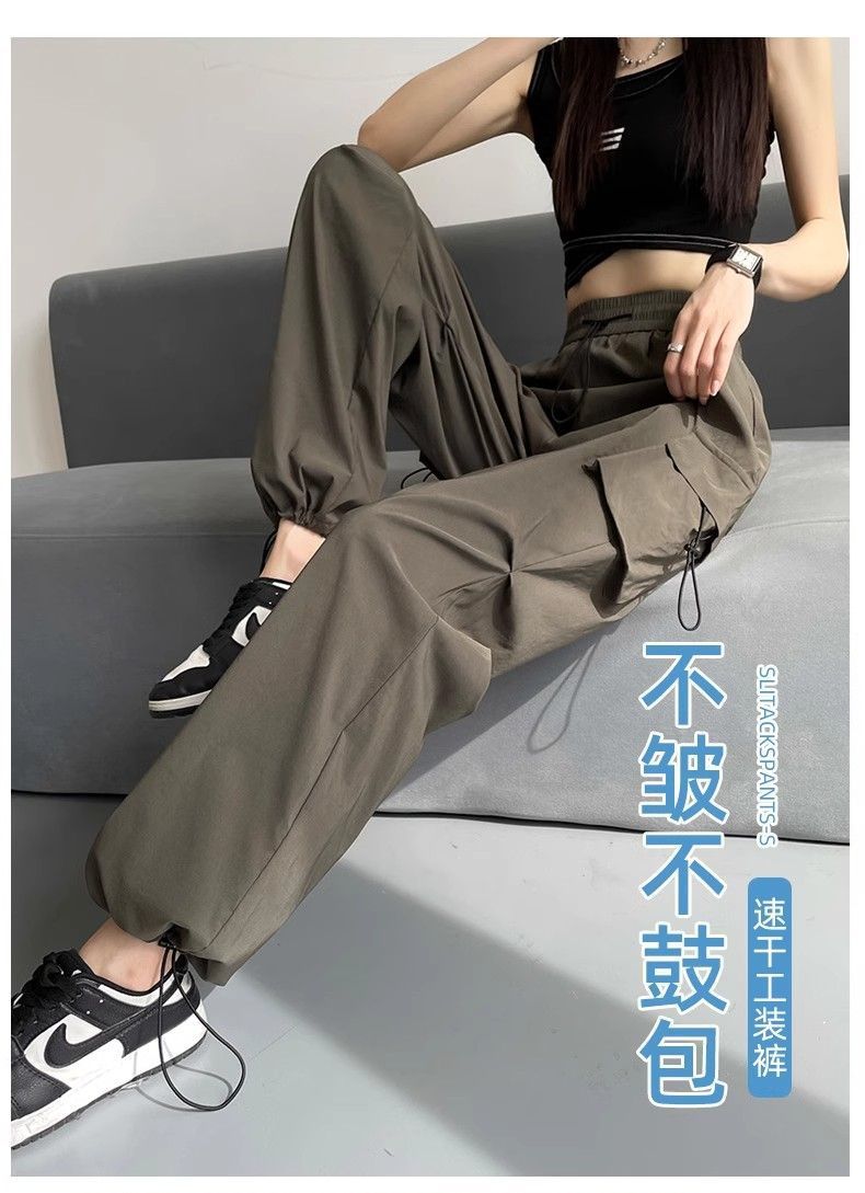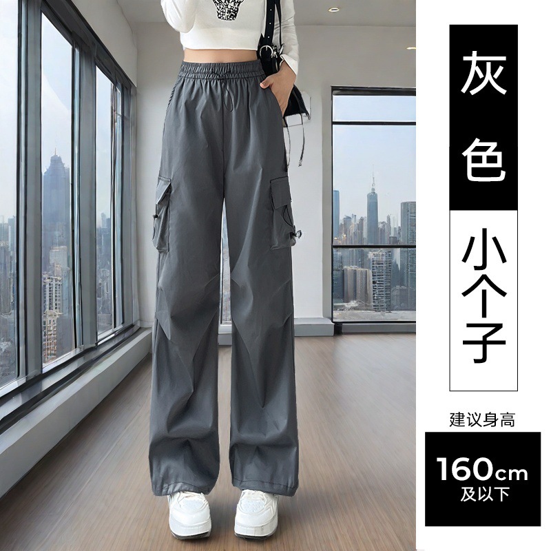 여성용 미국 가을 인기 작업복, 그레이 하이웨이스트 캐주얼 충전 바지, 작은 사이즈의 속건성 패션 스포츠 바지스토어 가기