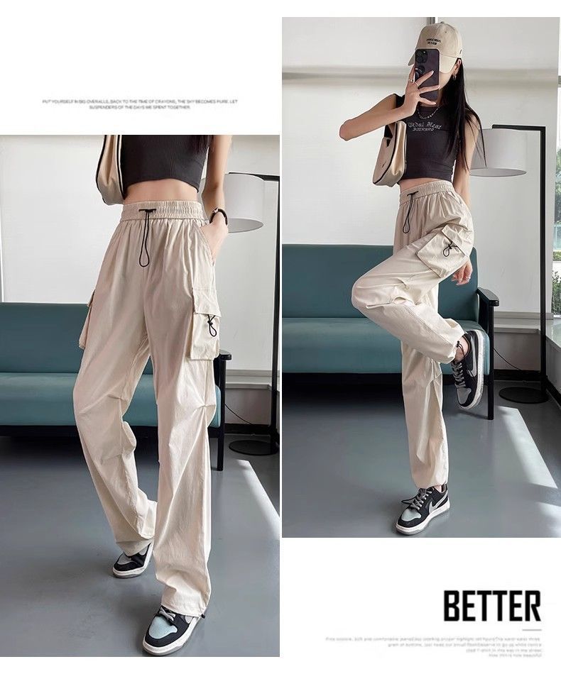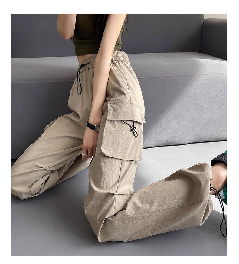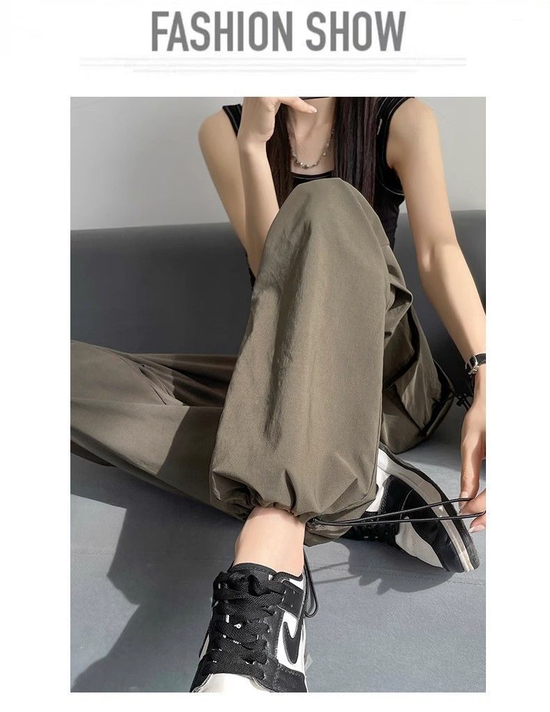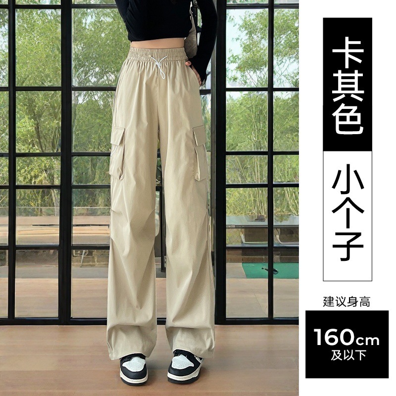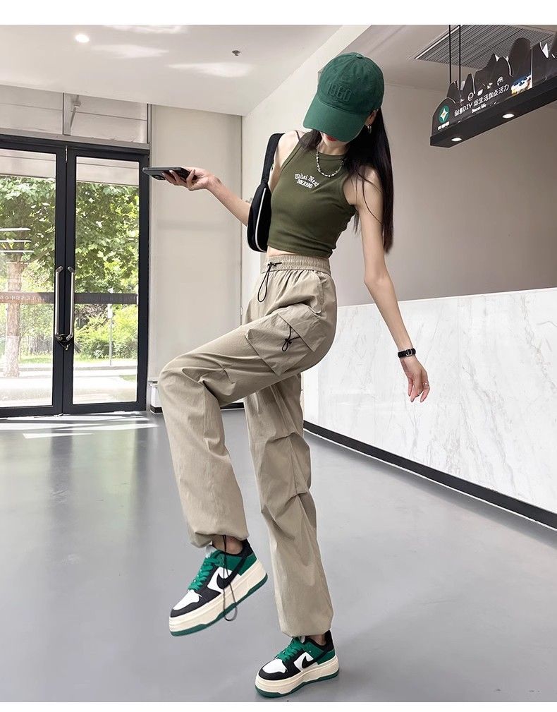 여성용 미국 가을 인기 작업복, 그레이 하이웨이스트 캐주얼 충전 바지, 작은 사이즈의 속건성 패션 스포츠 바지스토어 가기
